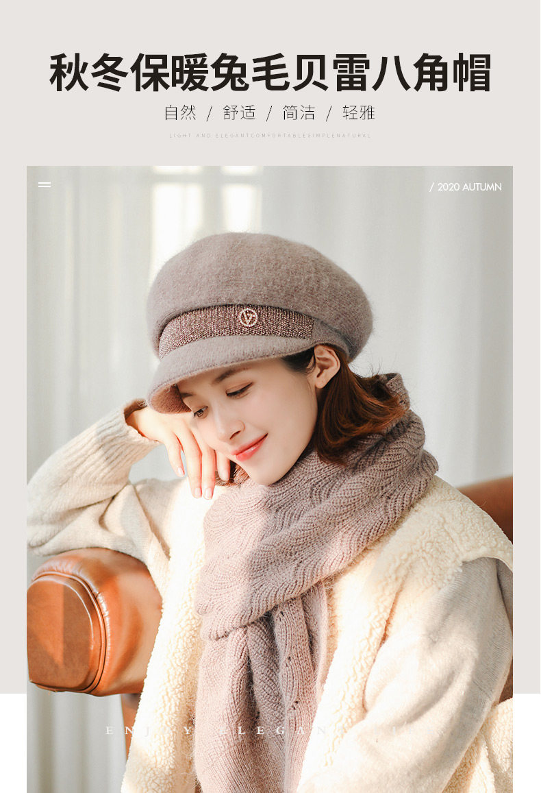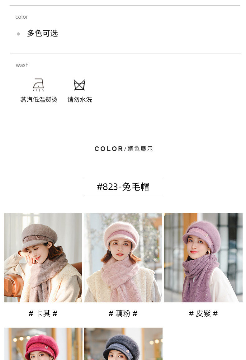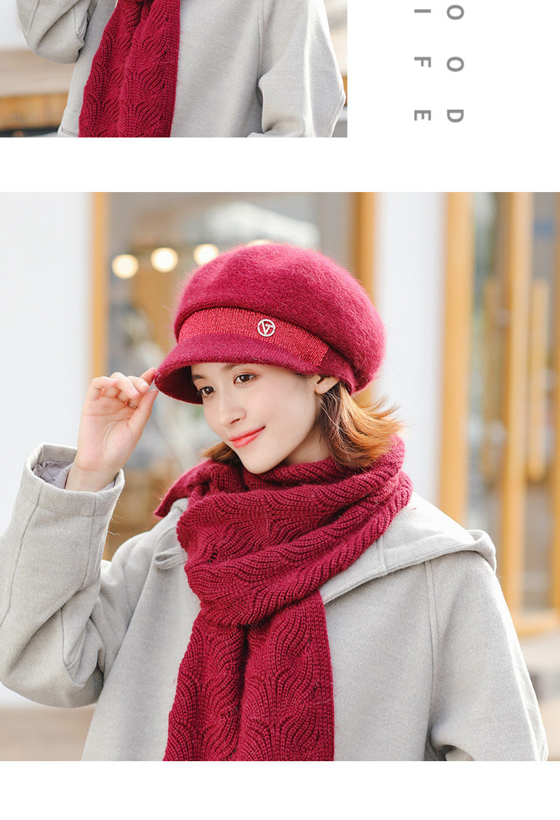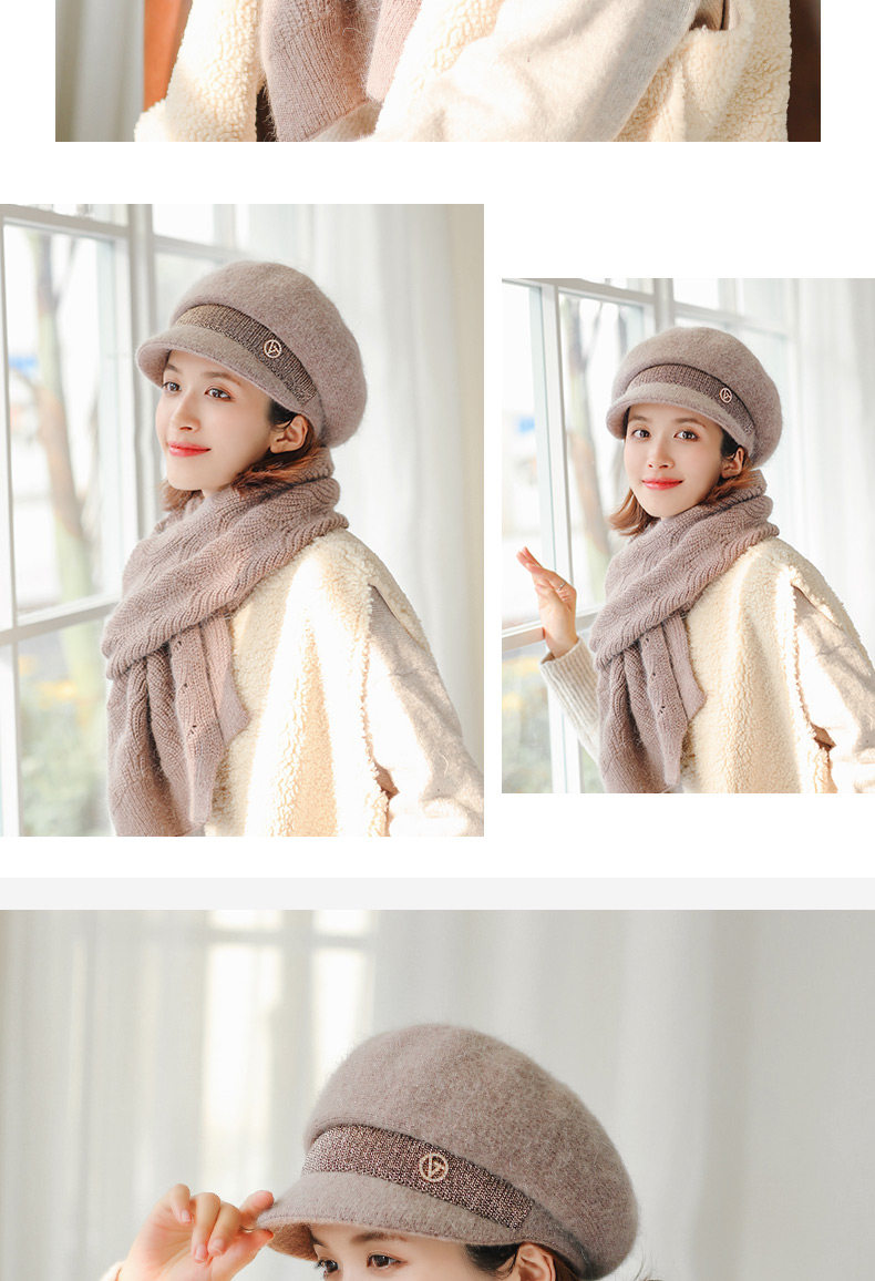 Trendy brand furry scarf hat set for women winter new versatile warm woolen plus velvet knitted hat for middle-aged and elderly people