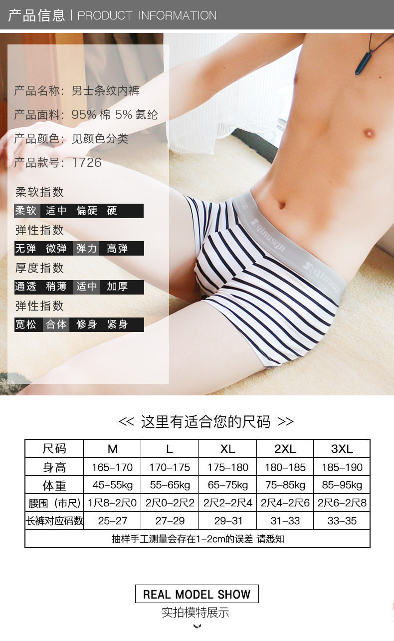 Modal striped underwear men's cotton boxer briefs sexy breathable 2025 new boys cute boxer briefs trendy