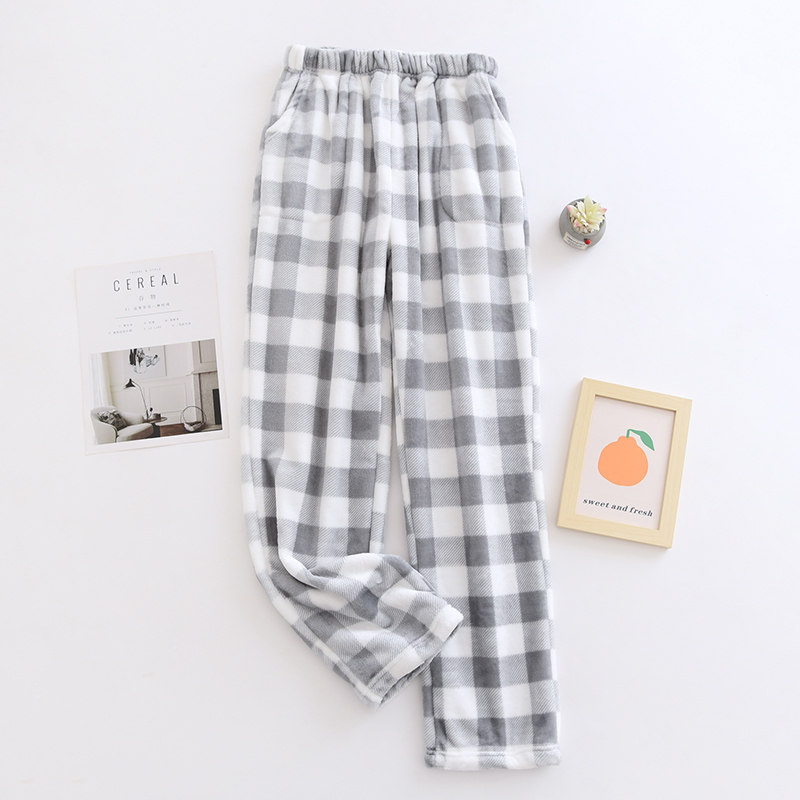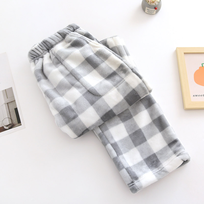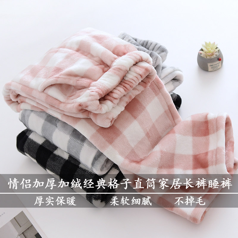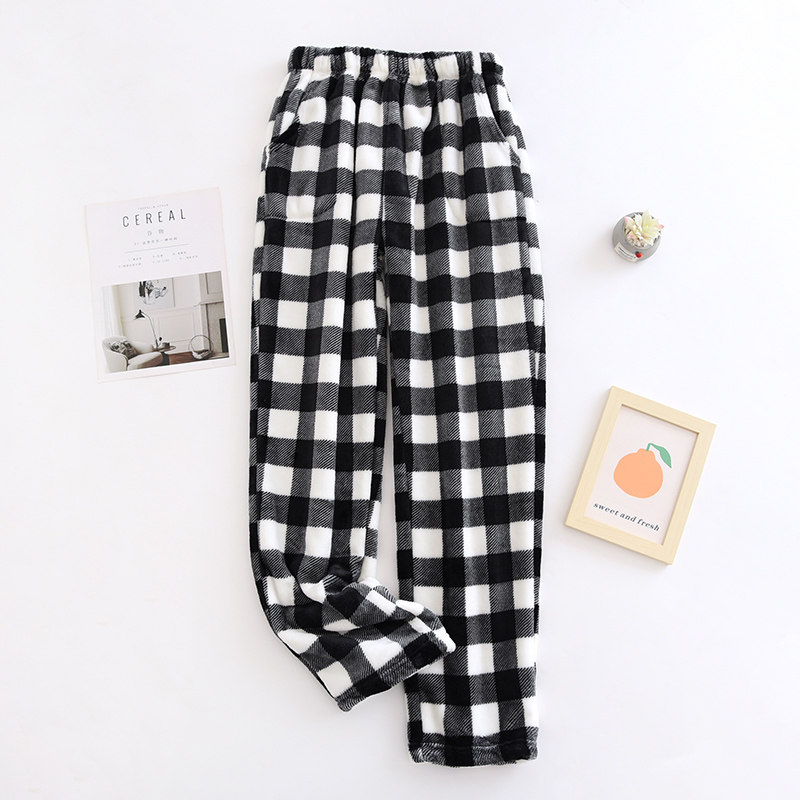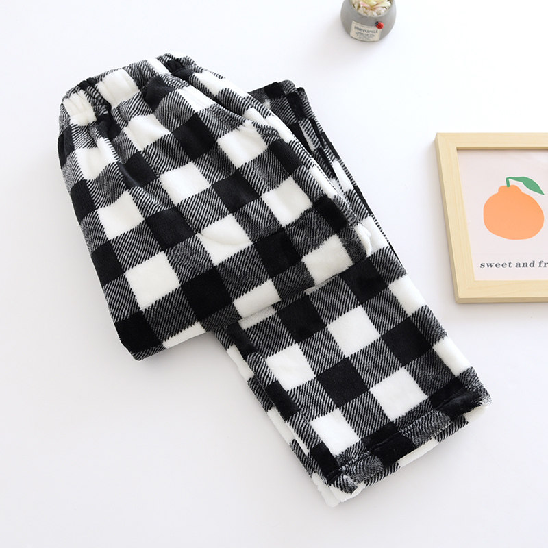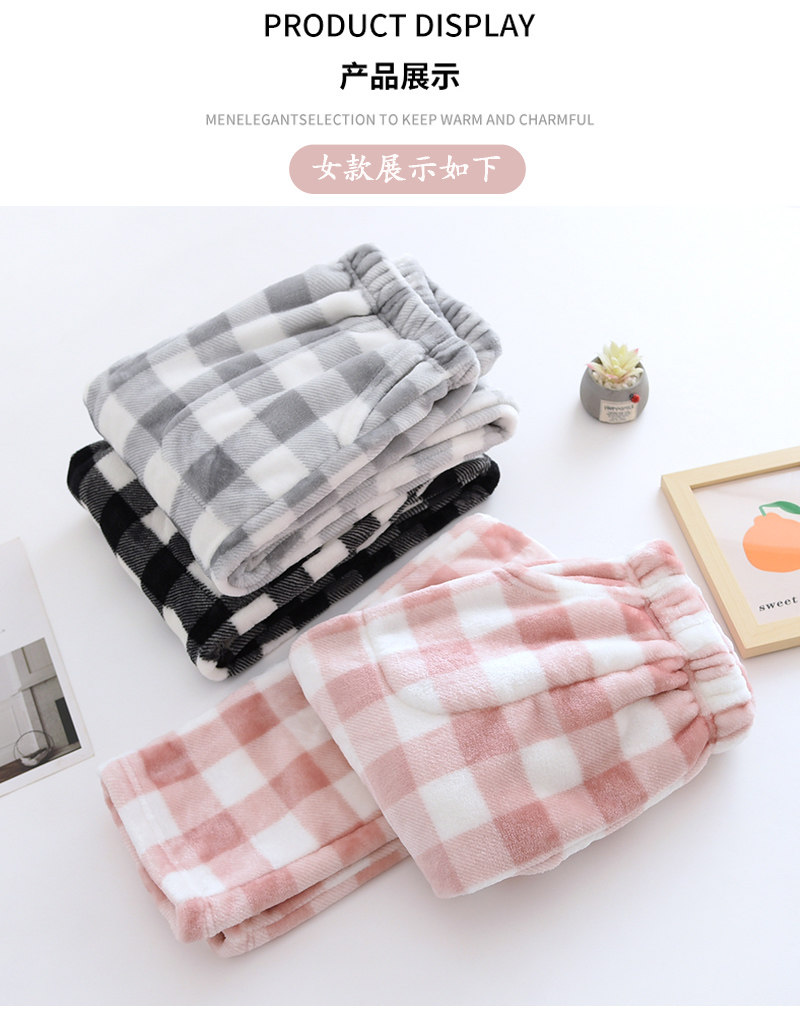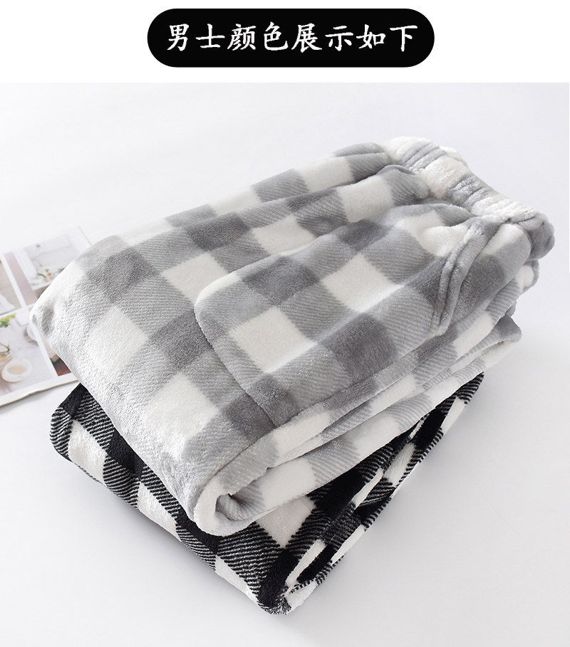 Couple flannel pajamas, coral velvet trousers, women's home pants, men's velvet thickened winter plaid warm pants