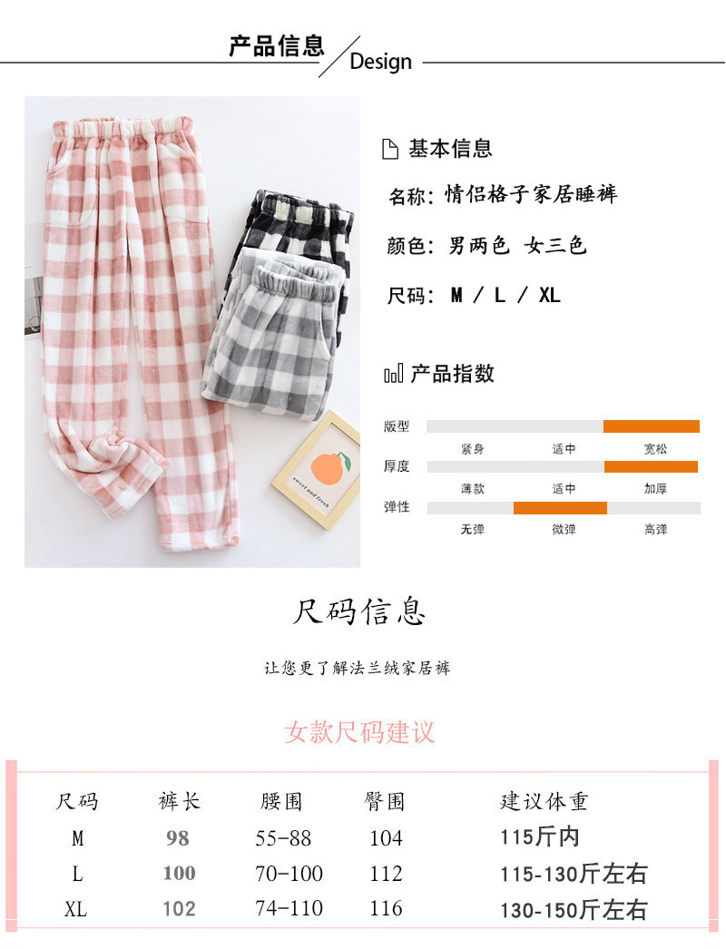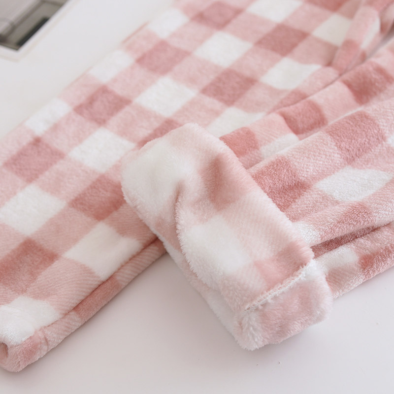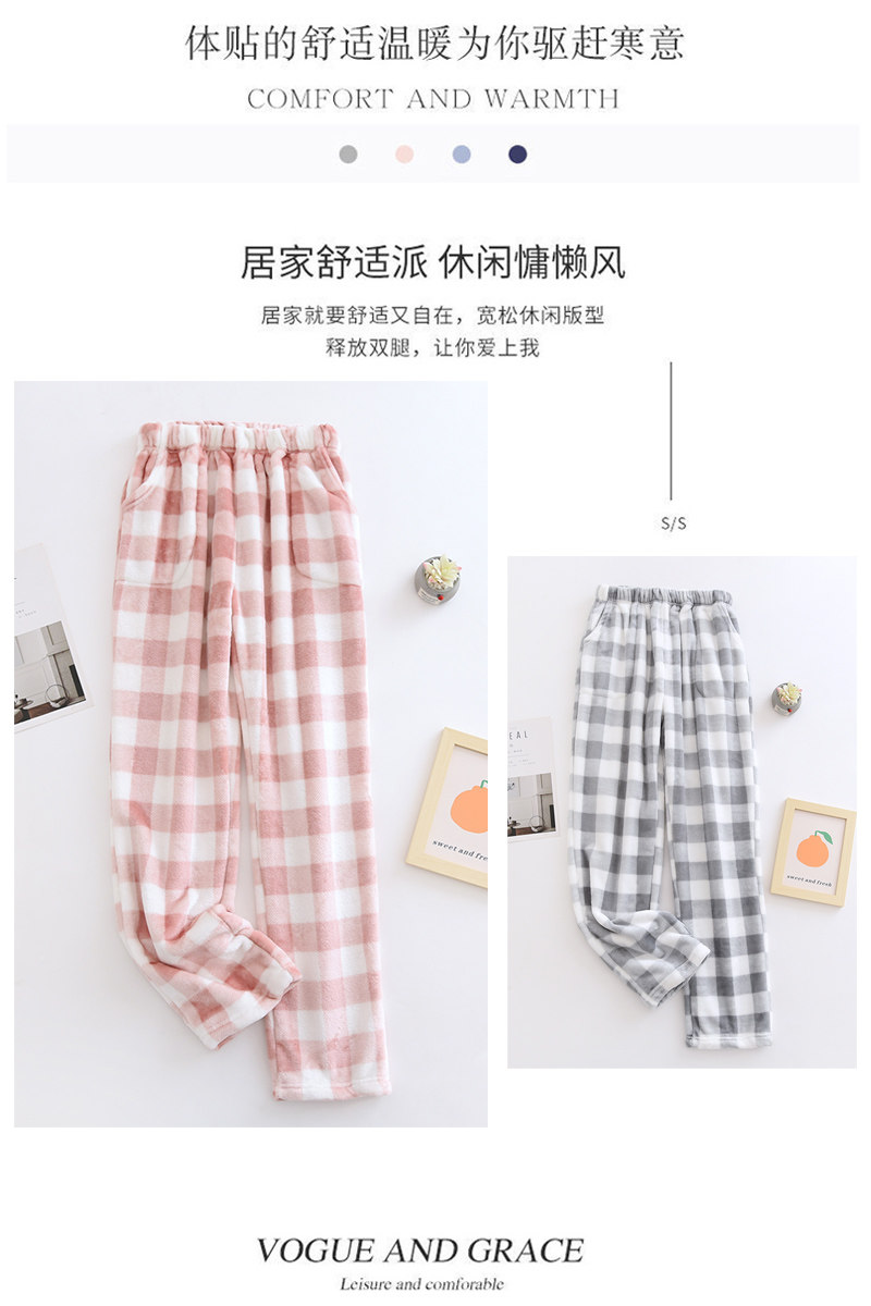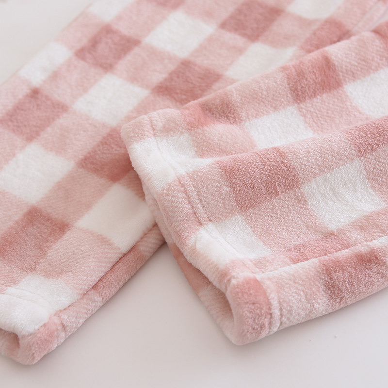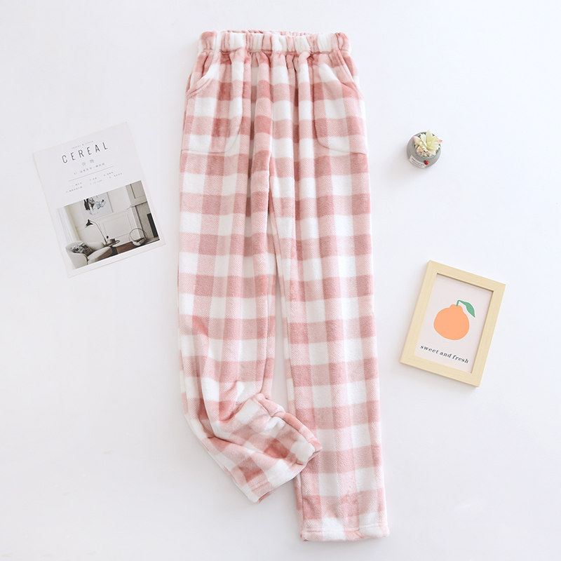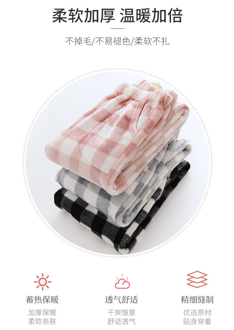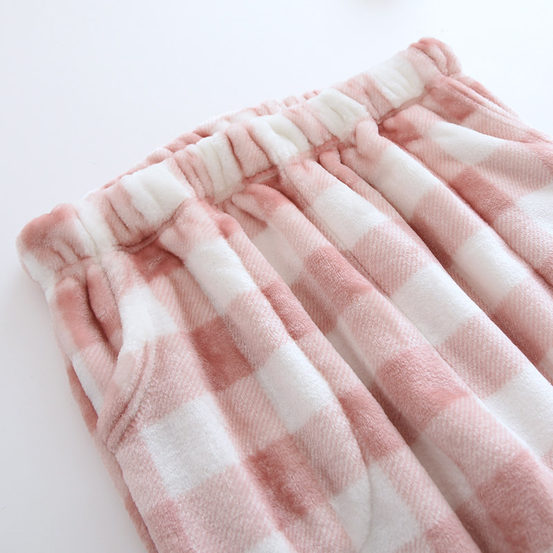 Couple flannel pajamas, coral velvet trousers, women's home pants, men's velvet thickened winter plaid warm pants