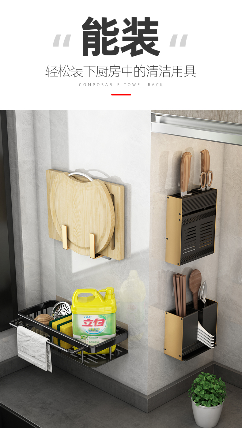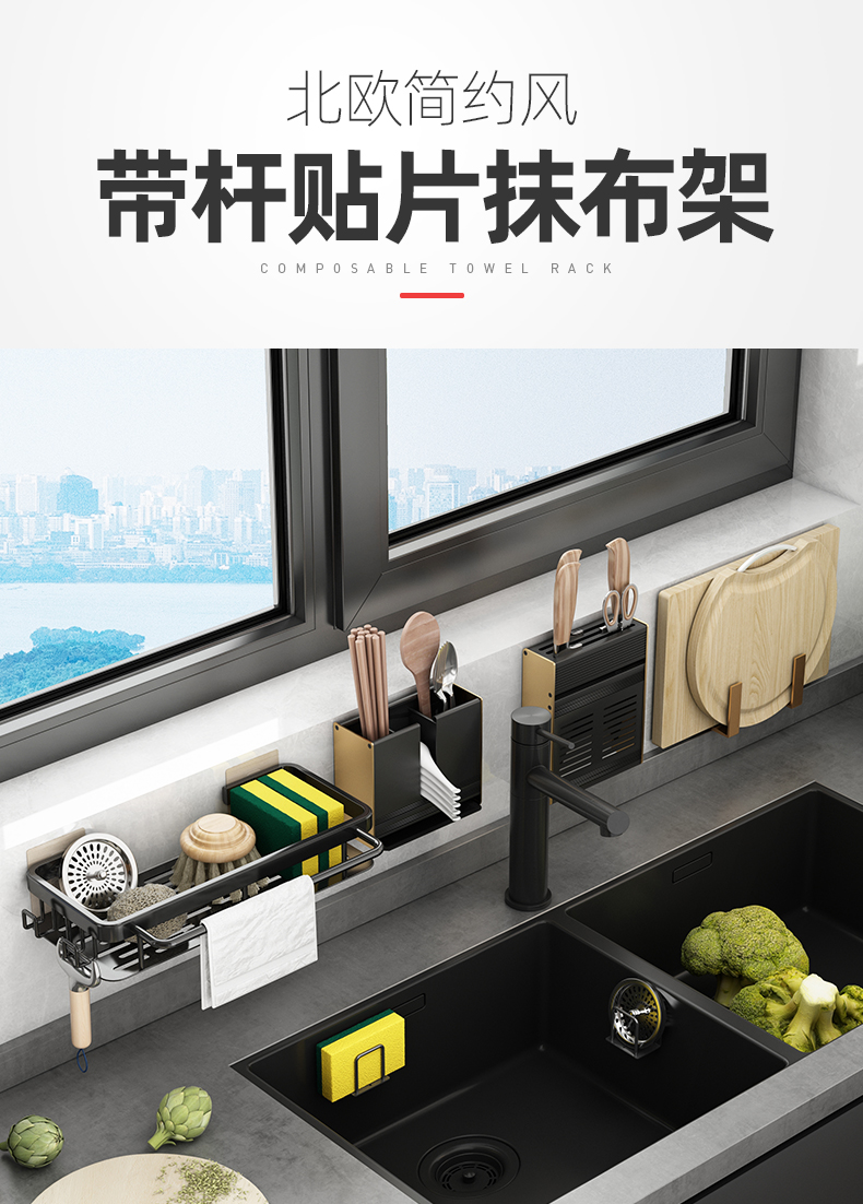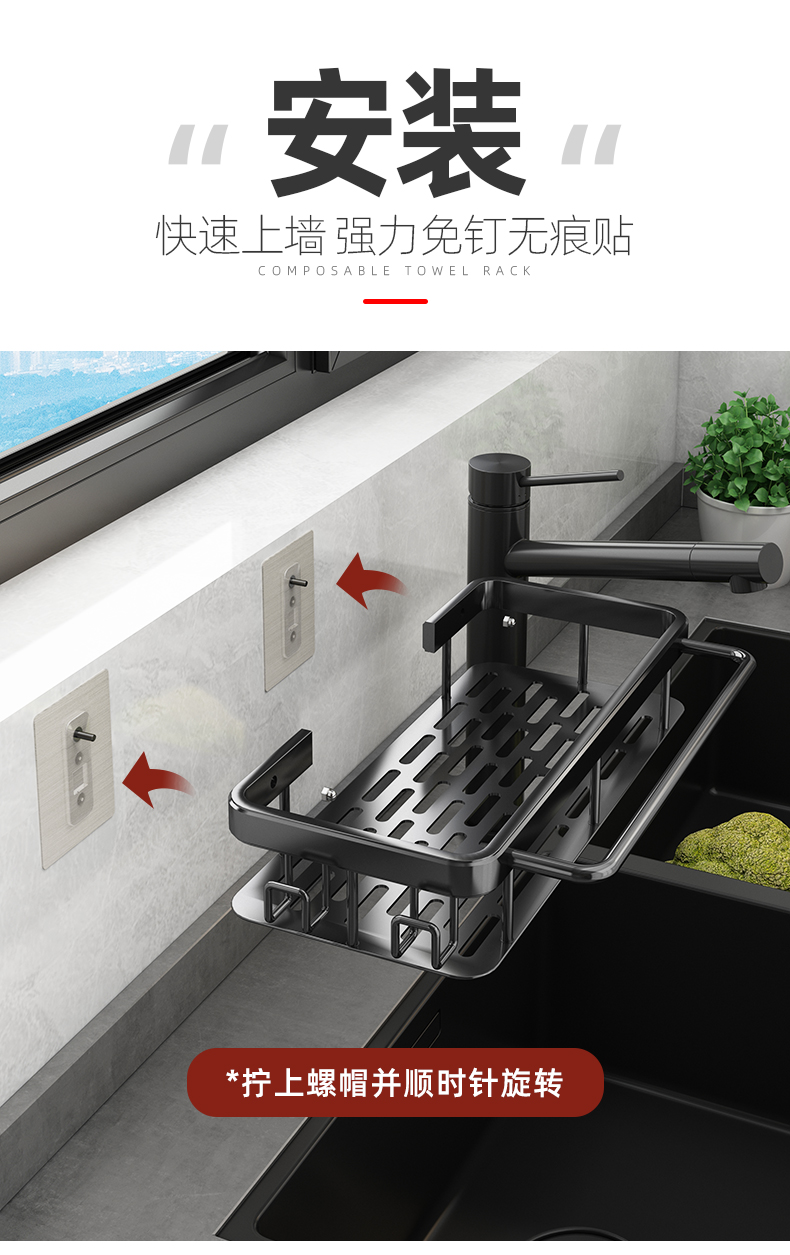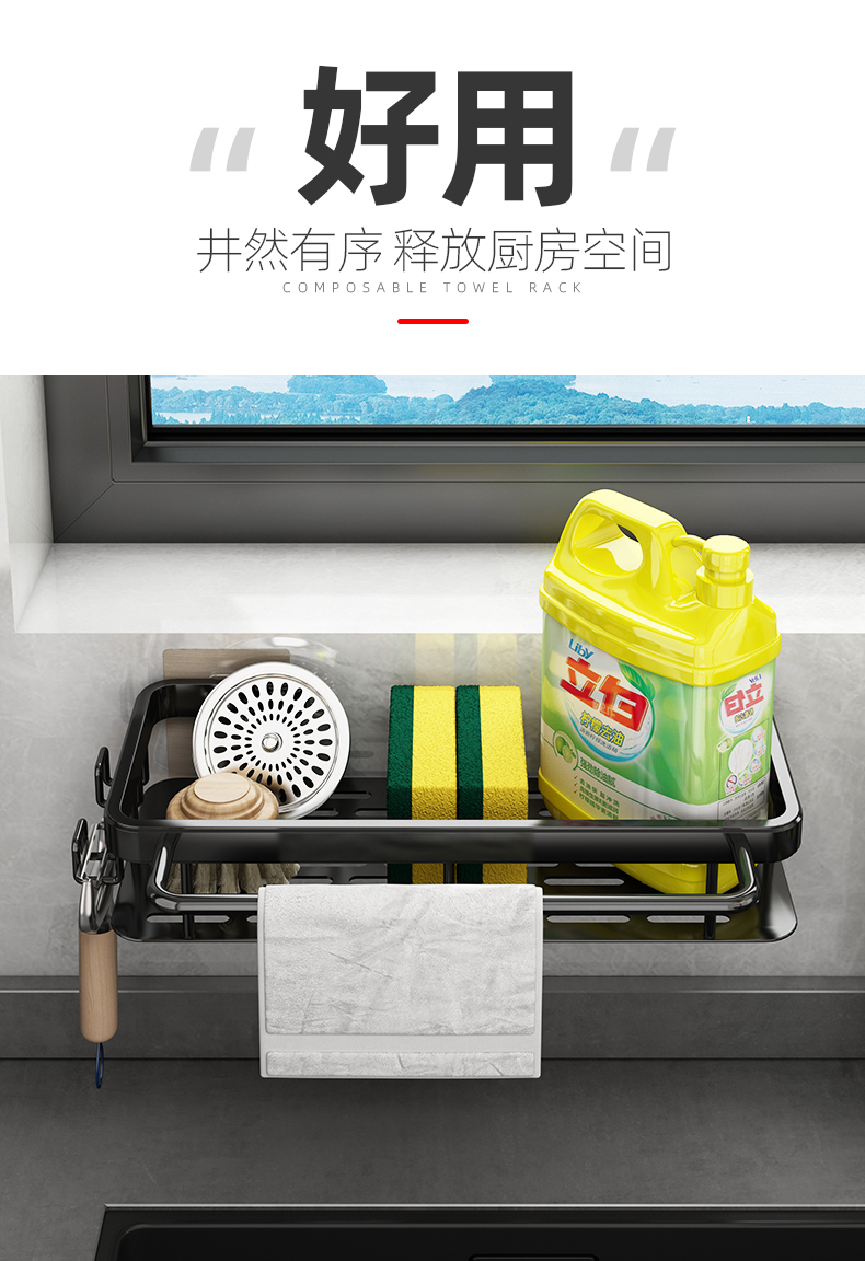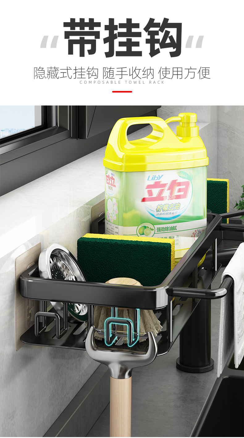 Kitchen rag rack punch-free storage rack wall-mounted storage rack household sink drain hanging basket supplies magic tool