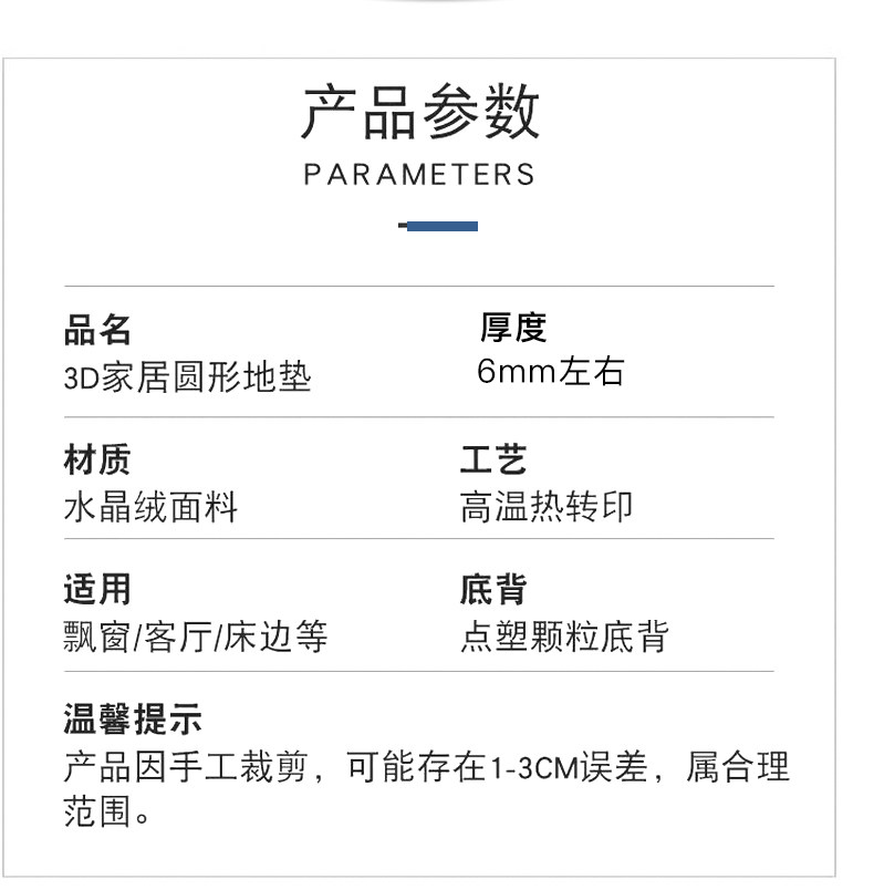 Carpet size Diameter 100cm Recommended by the store manager,Diameter 120cm,Diameter 140cm,Diameter 160cm,Diameter 180cm,Diameter 80cm,Diameter 60cm,Diameter 40cm,Custom size contact customer service