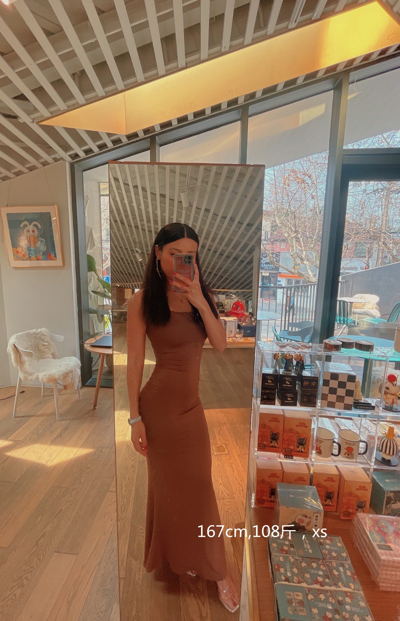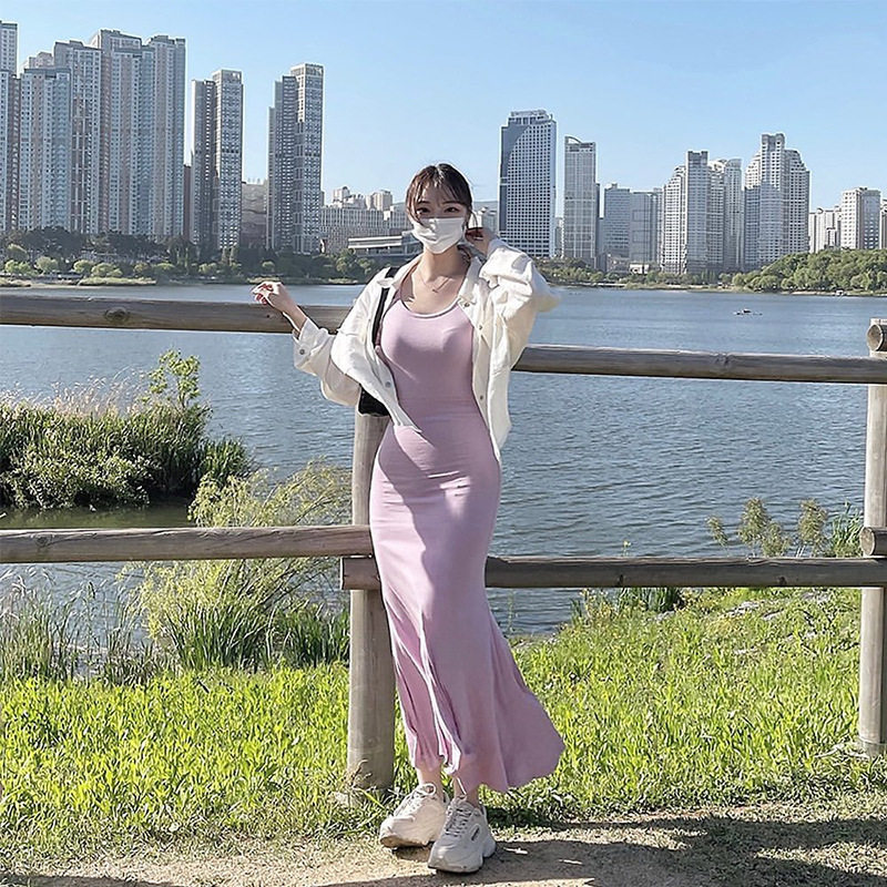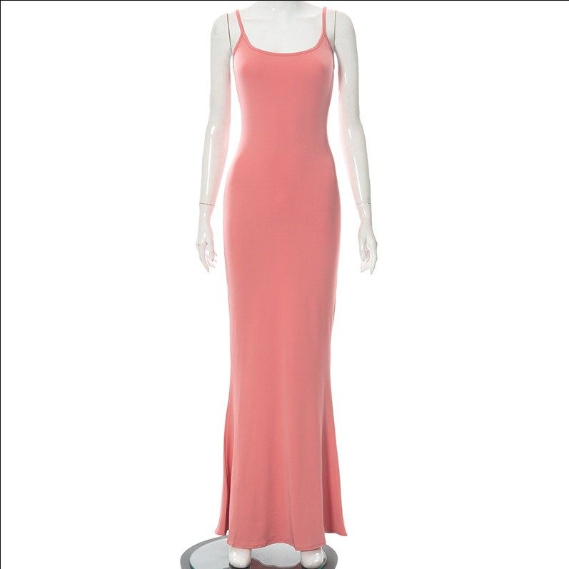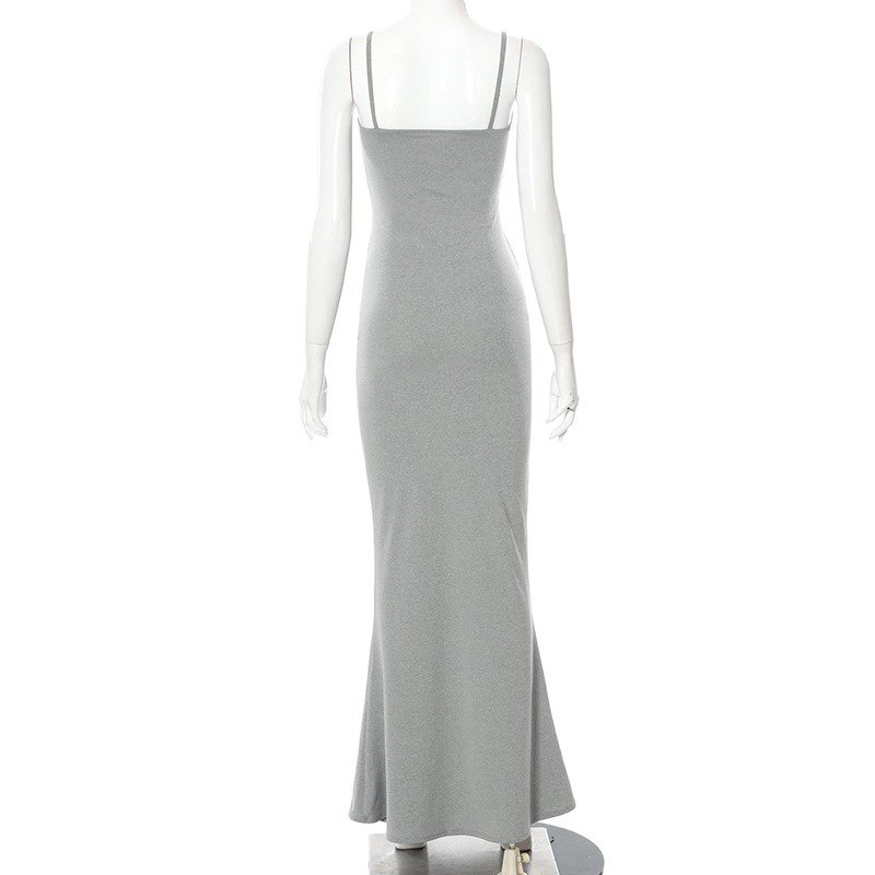 European and American fashion classic women's clothing, personalized suspenders, flat mouth, tall girl Kardashian's knee-length floor-length dress, long skirt