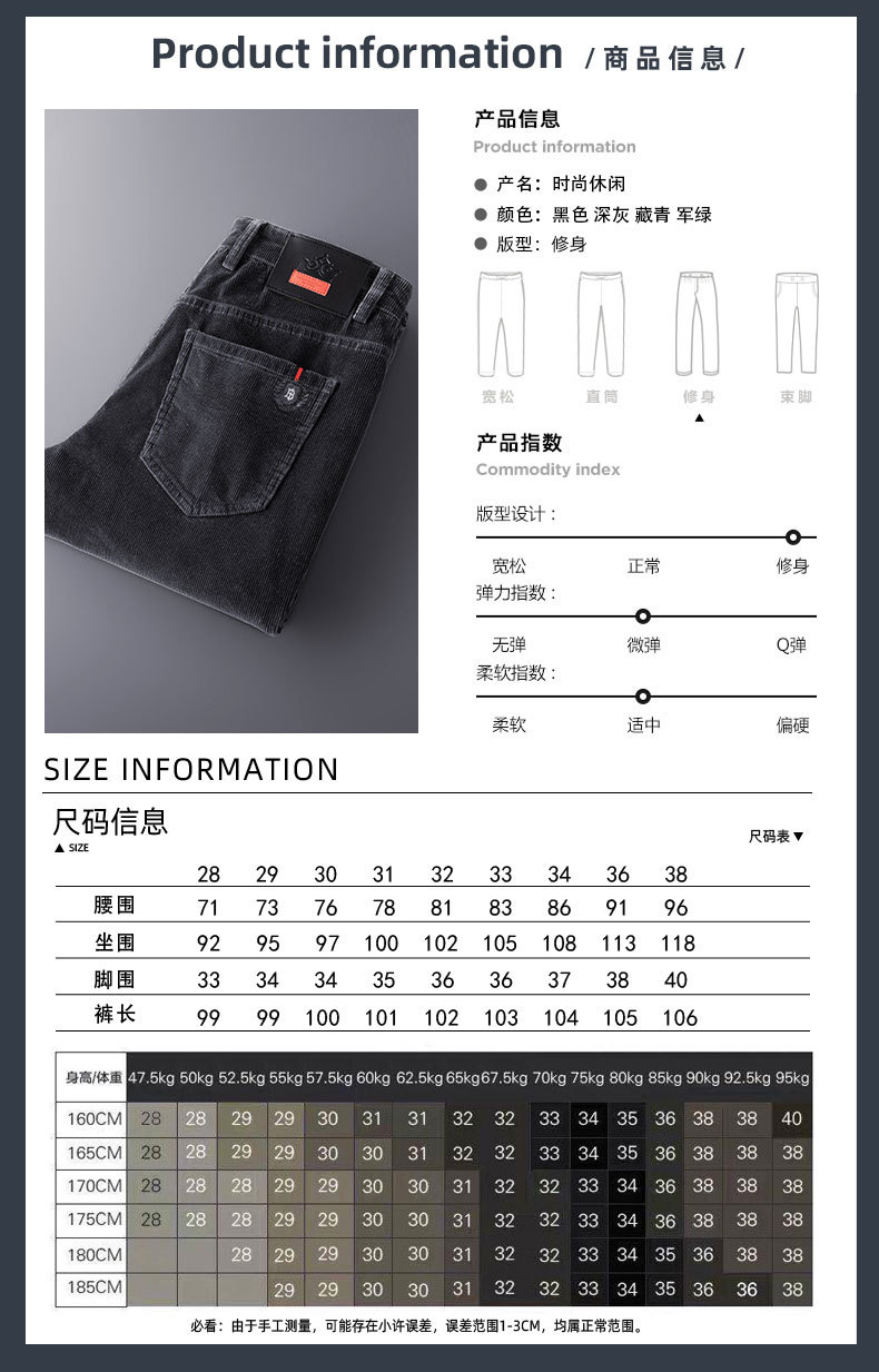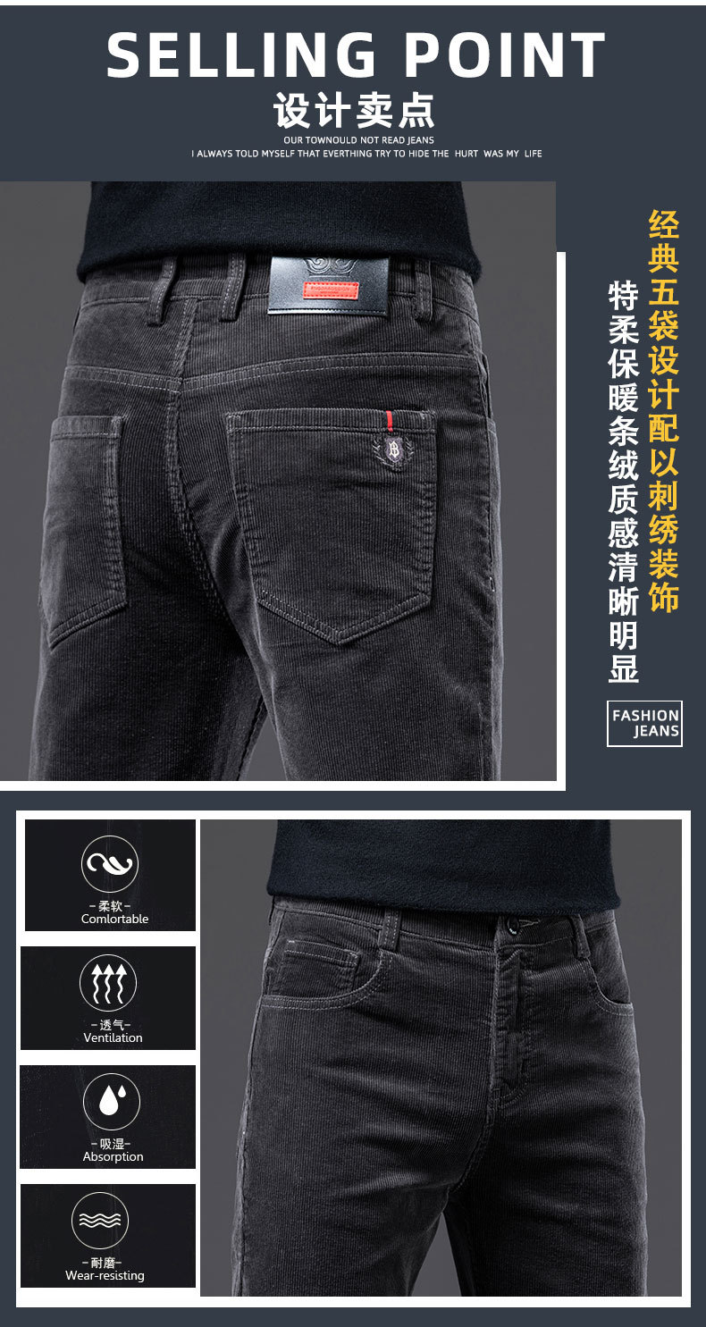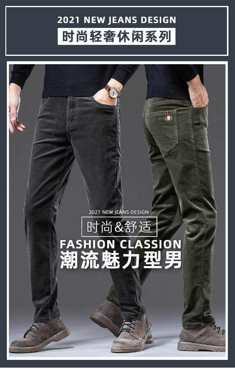 高端灯芯绒男裤2025新款秋冬直筒大码休闲裤男士修身百搭商务裤子