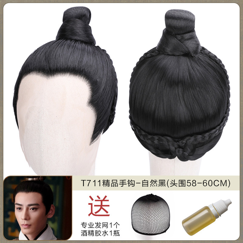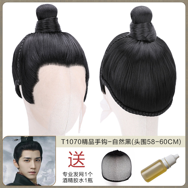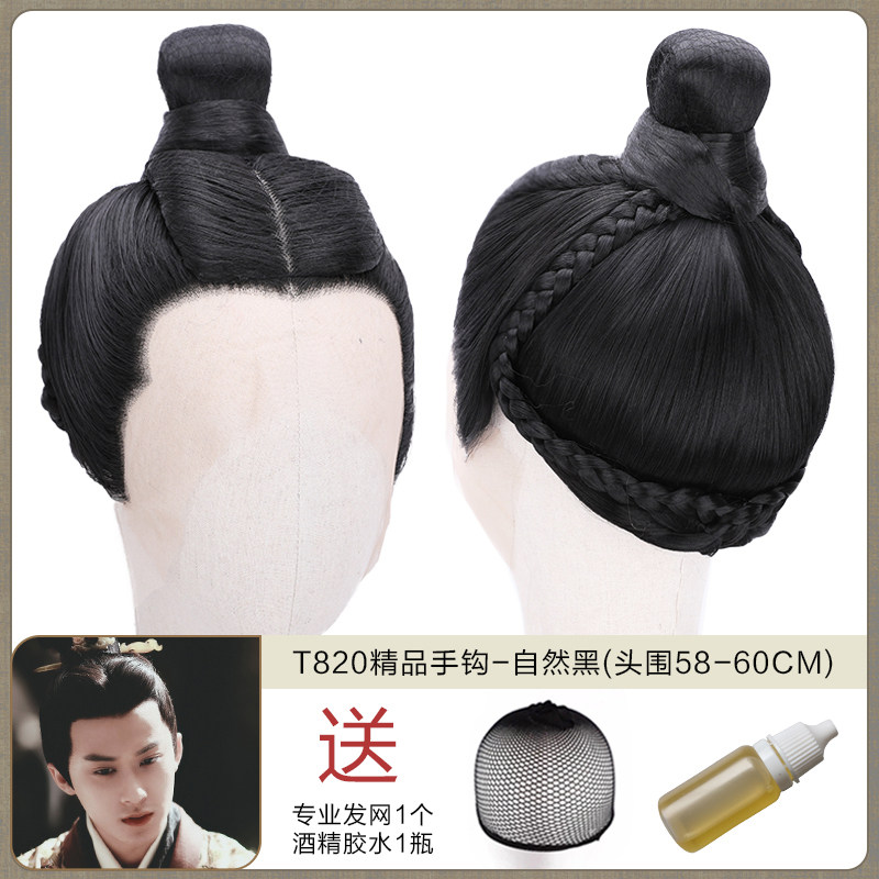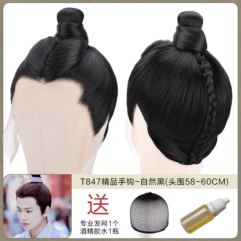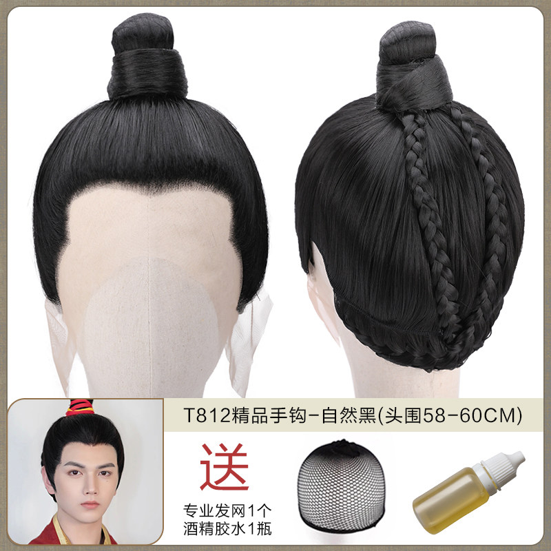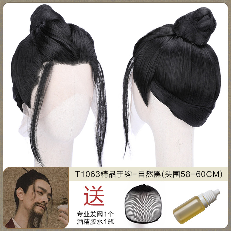 Ancient men's whole wigs, film and television dramas, scholar's short hair set, fine hand hook simulation wig collection