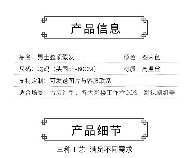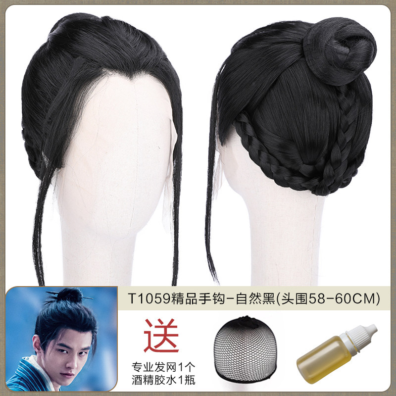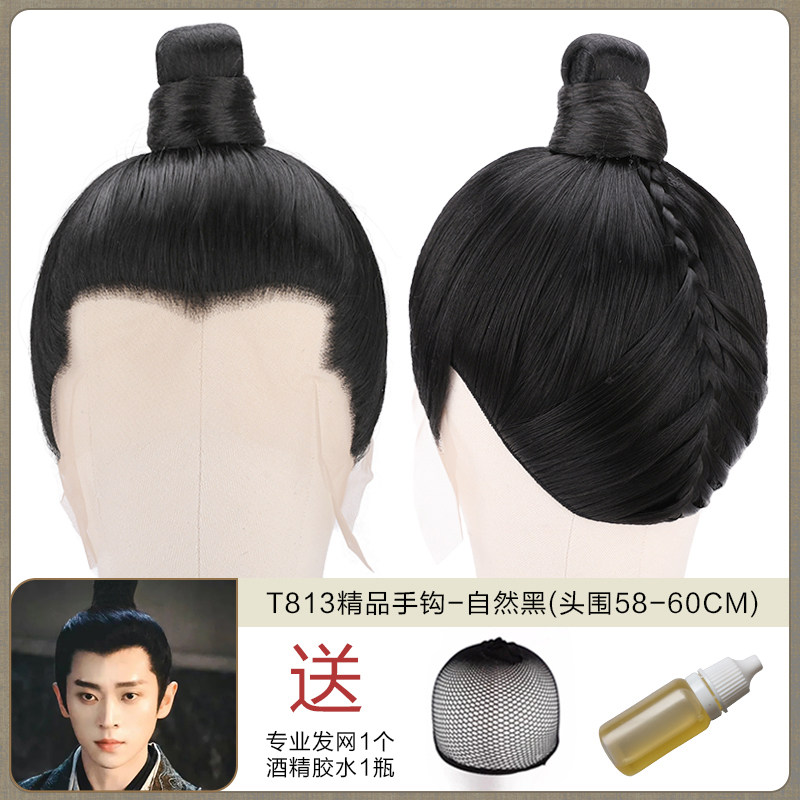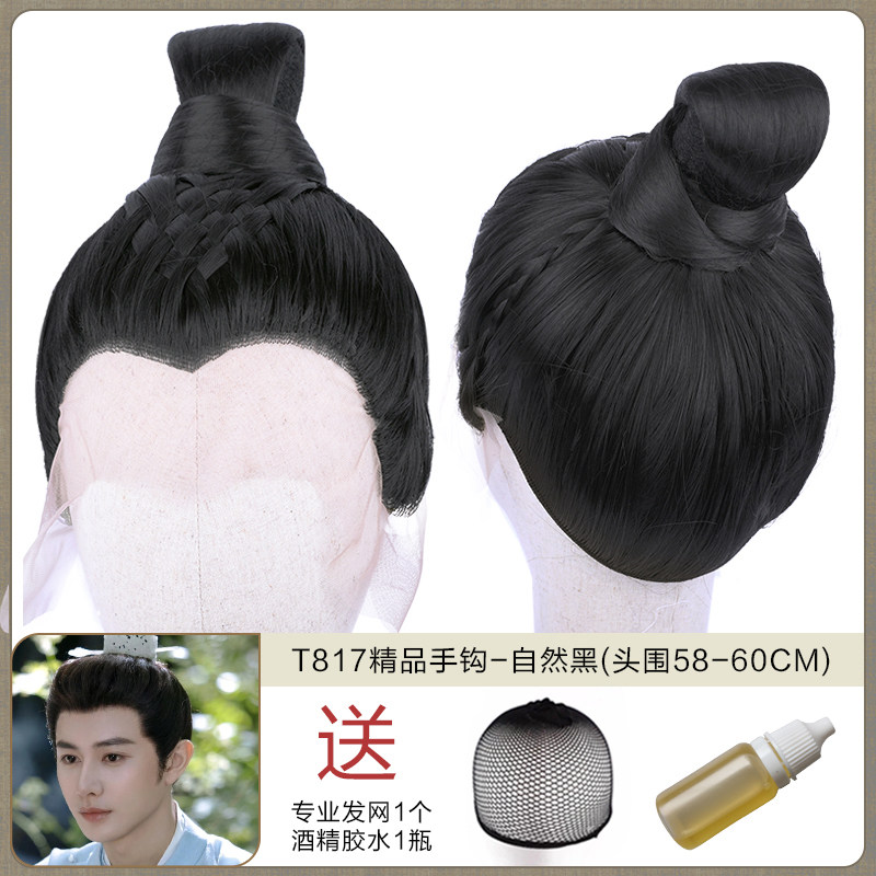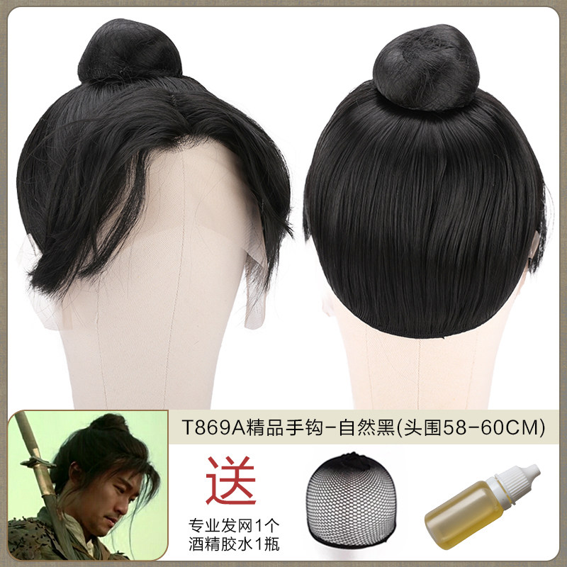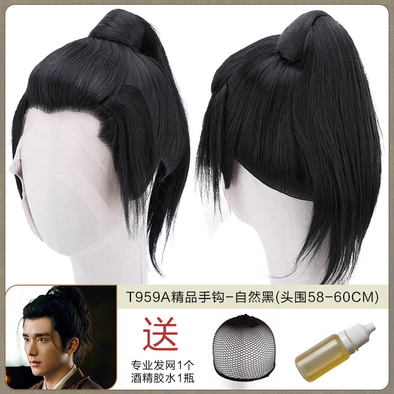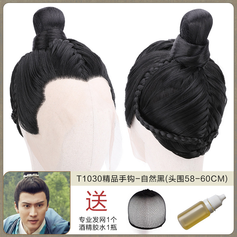 Ancient men's whole wigs, film and television dramas, scholar's short hair set, fine hand hook simulation wig collection