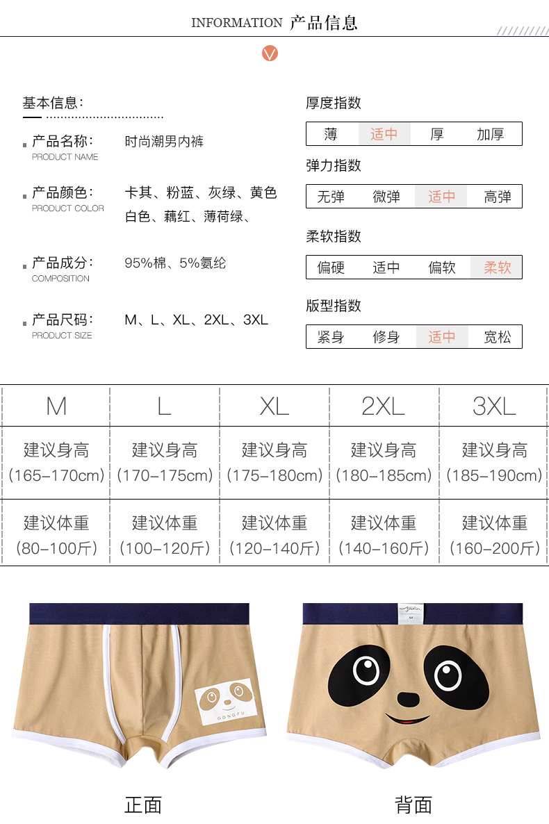Men's pure cotton cartoon underwear, trendy and personalized boxer shorts, youth sports boxer briefs, comfortable and breathable bottoms