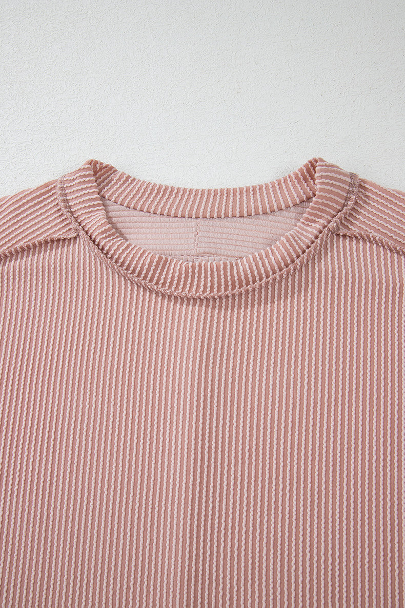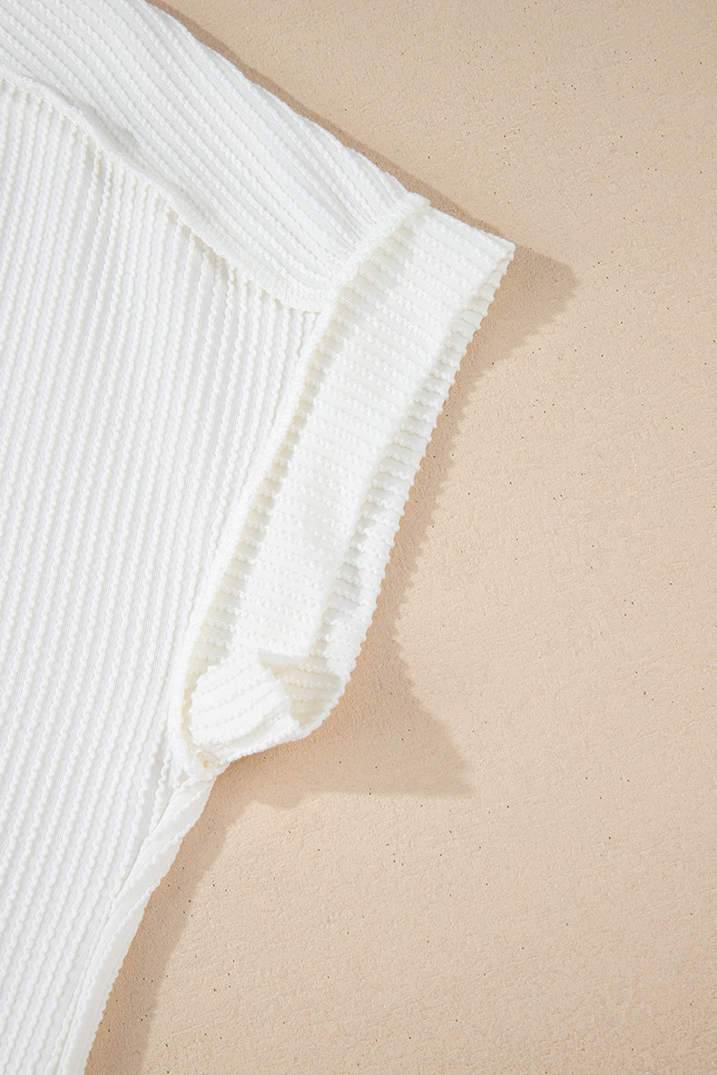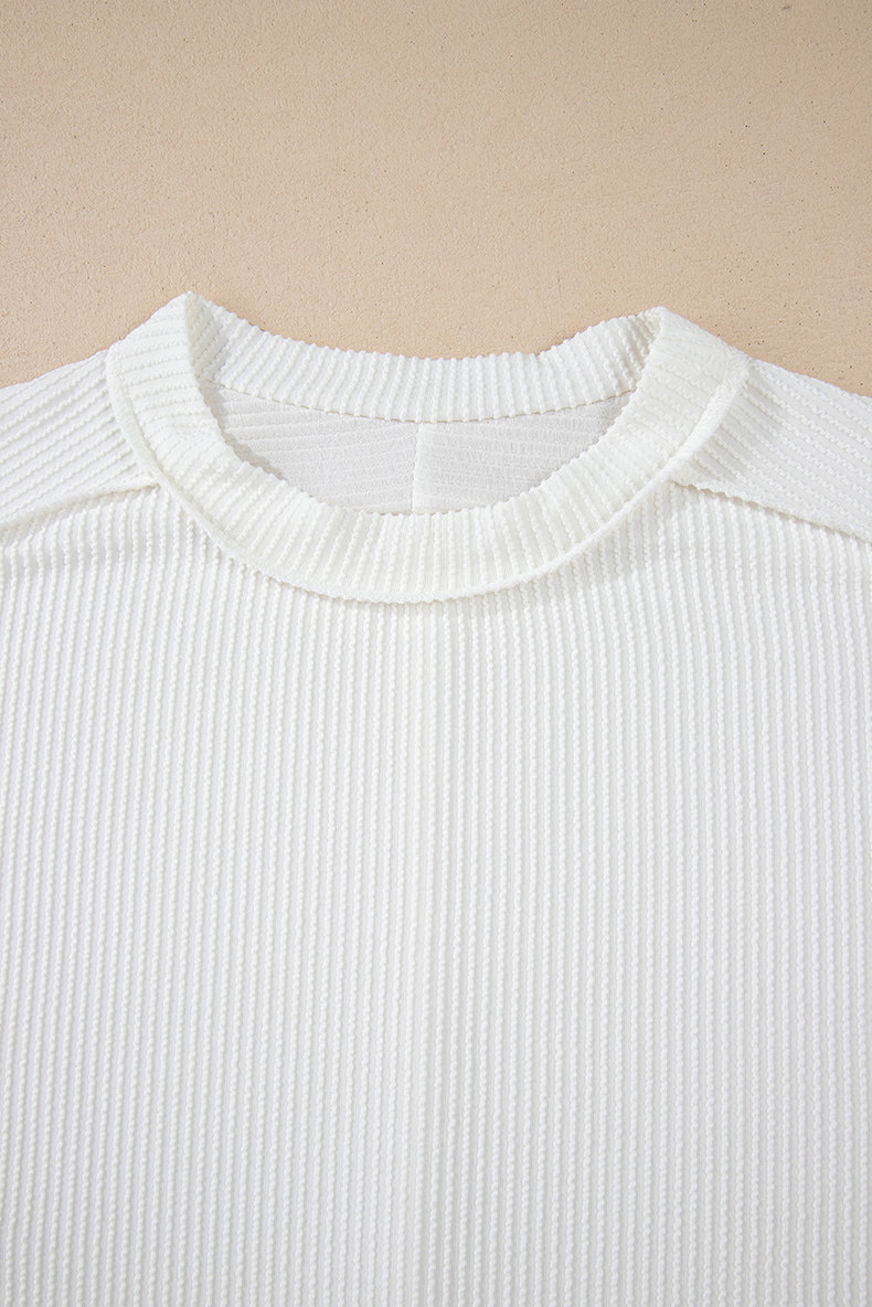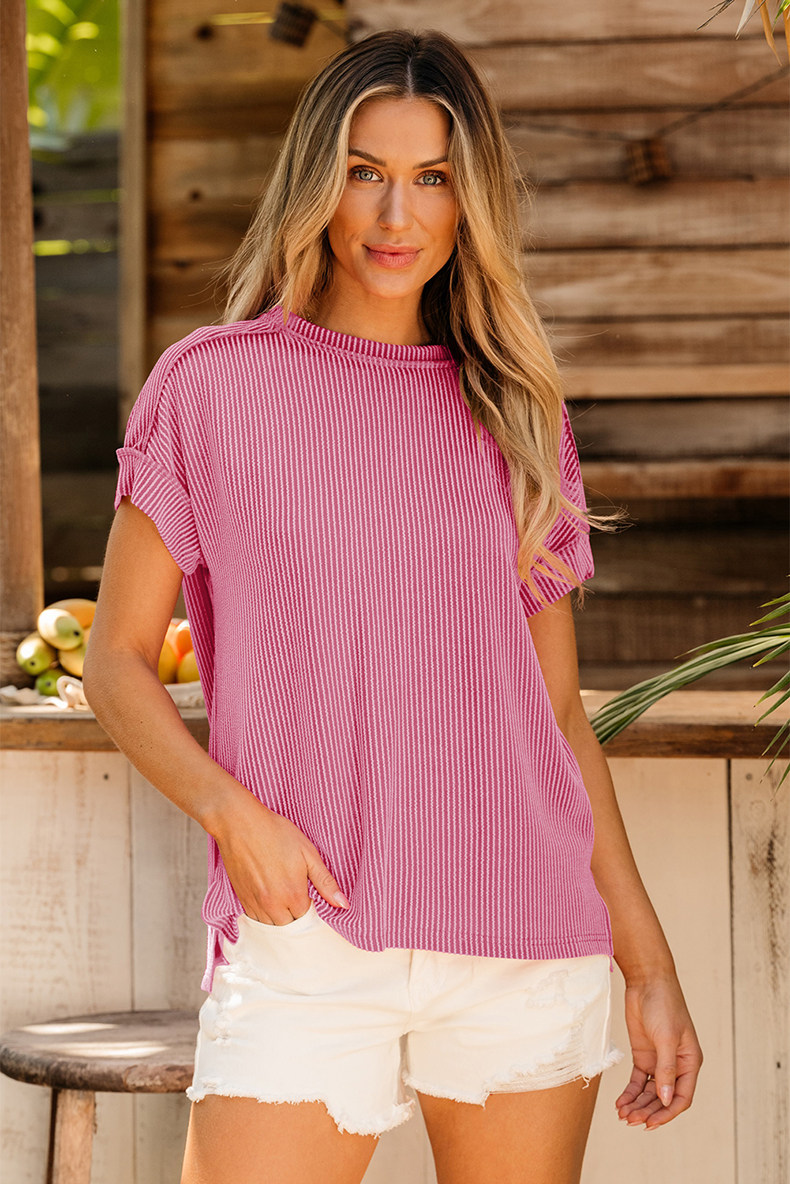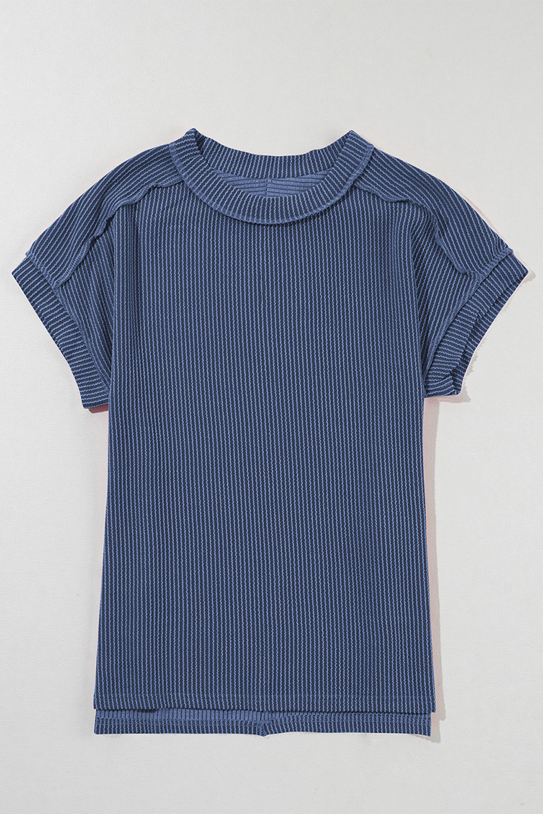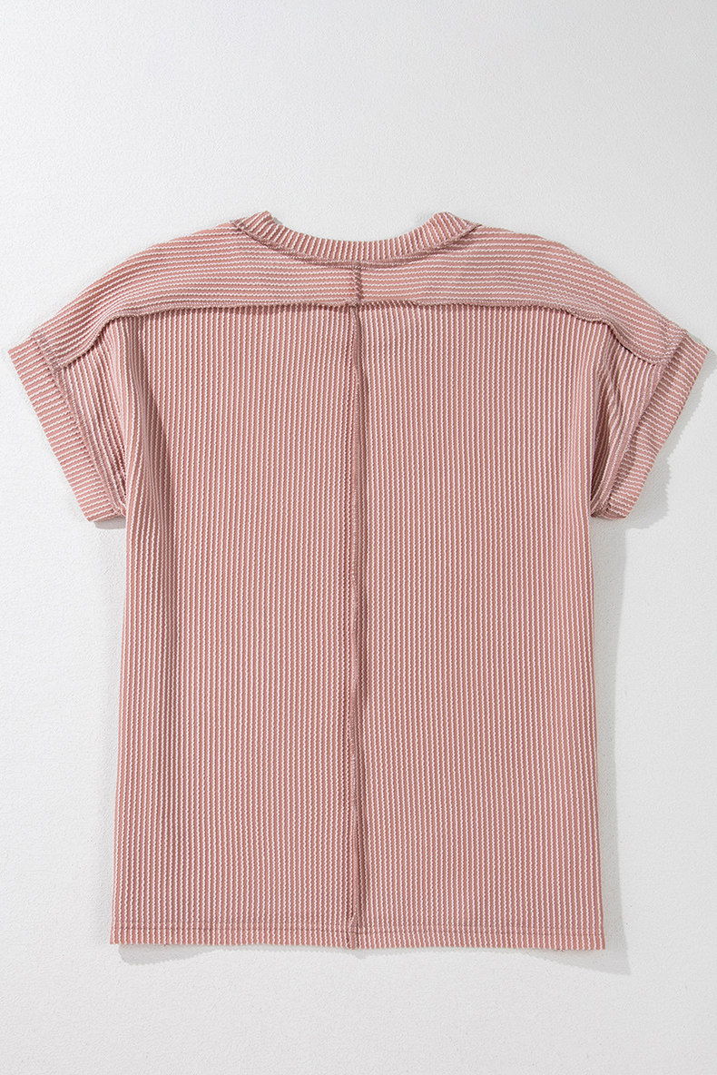 Европейская и американская повседневная свободная и универсальная женская футболка с круглым вырезом и короткими рукавами, лето 2025, новый однотонный текстурированный вязаный пуловер