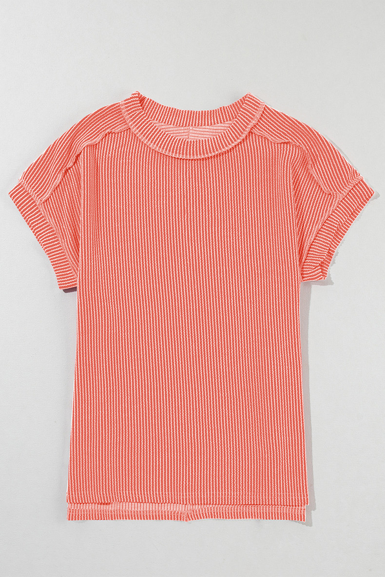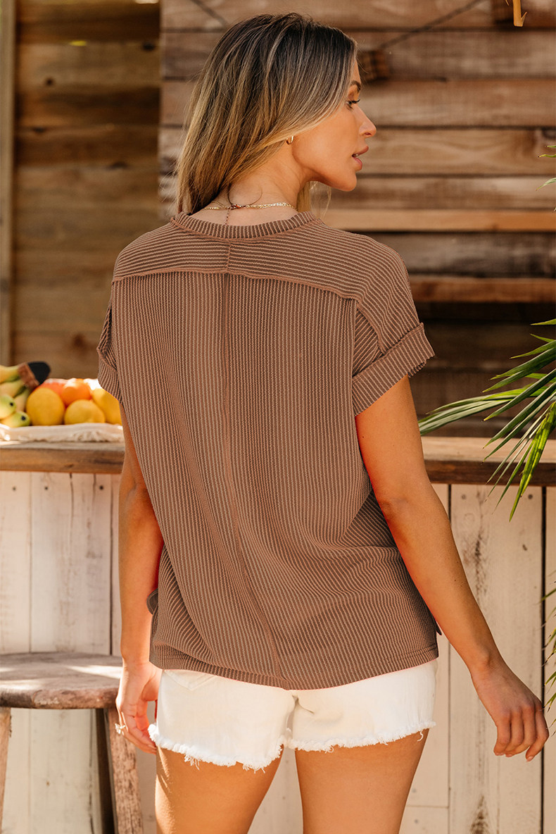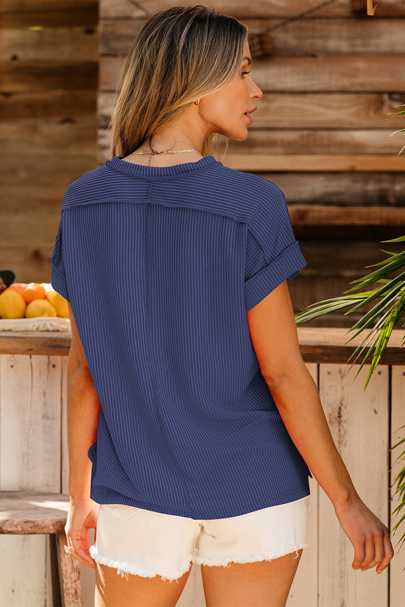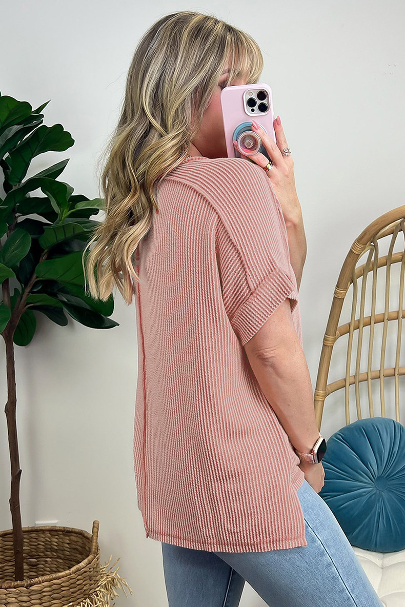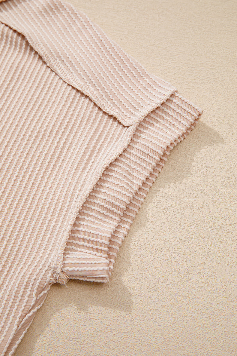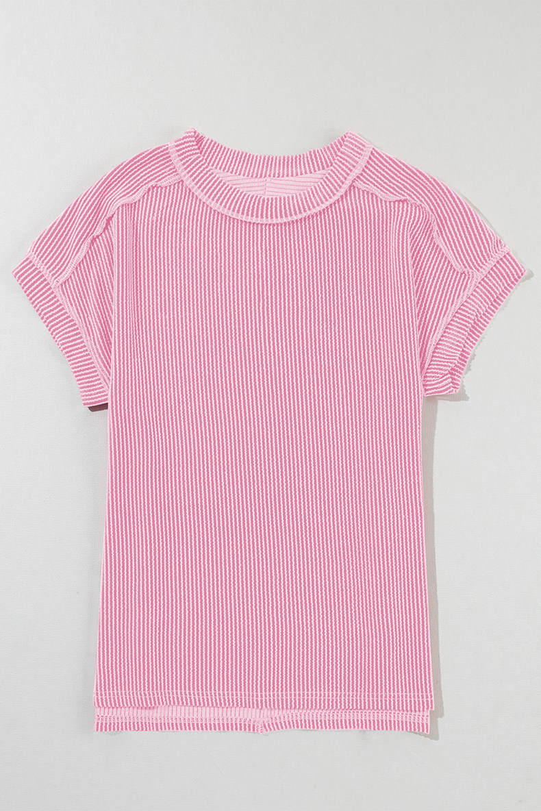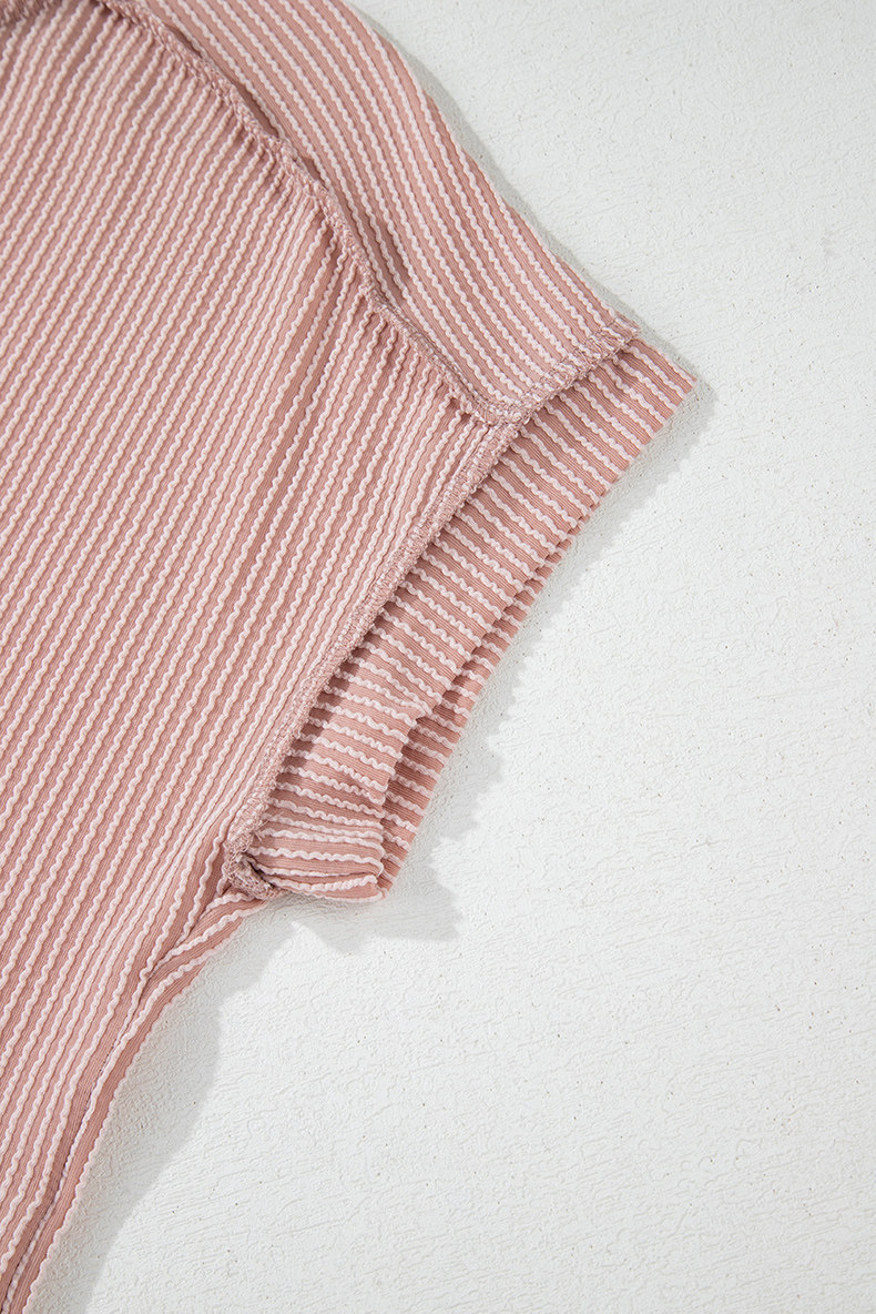 Европейская и американская повседневная свободная и универсальная женская футболка с круглым вырезом и короткими рукавами, лето 2025, новый однотонный текстурированный вязаный пуловер