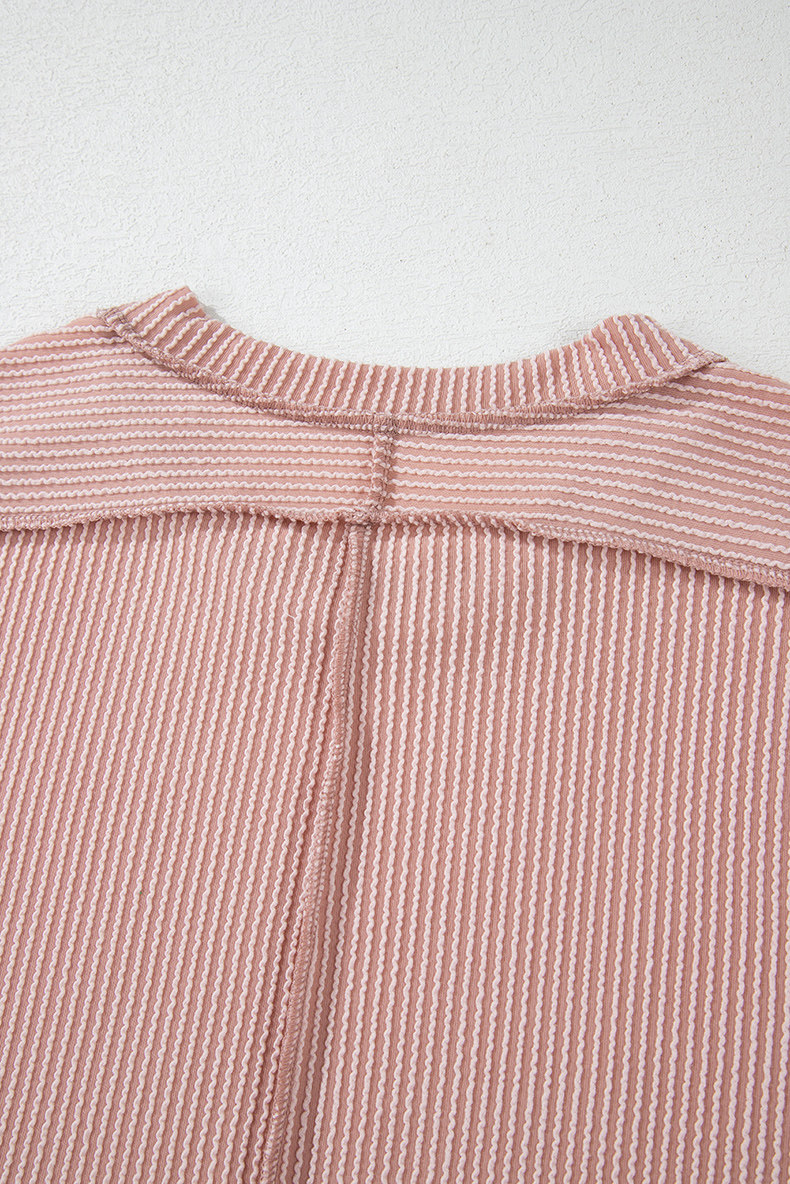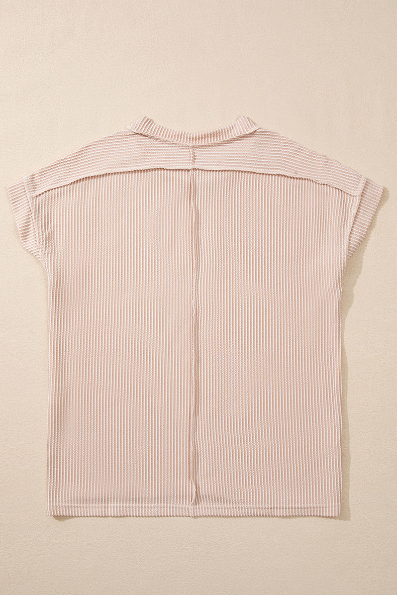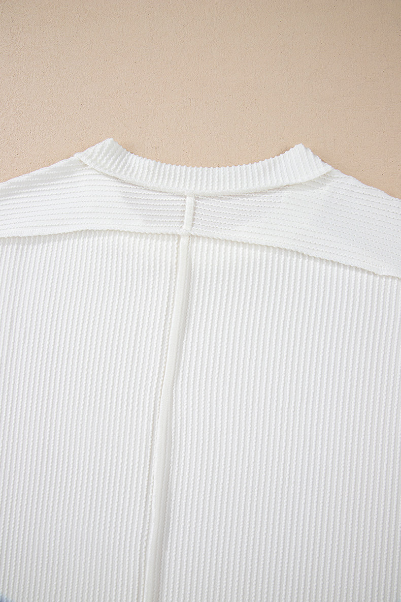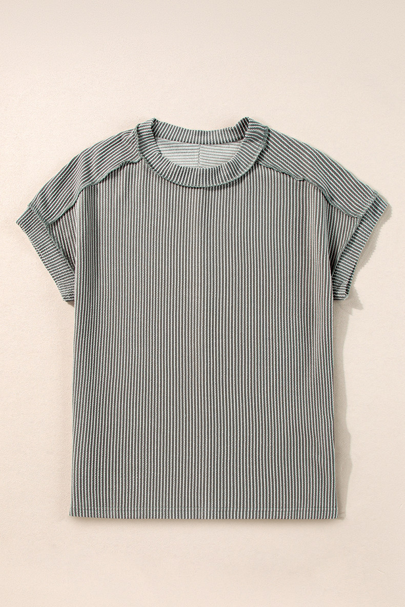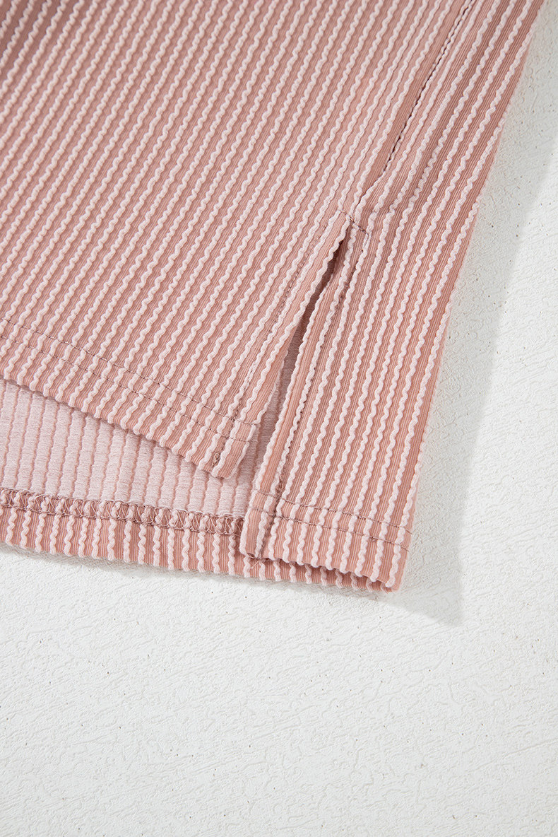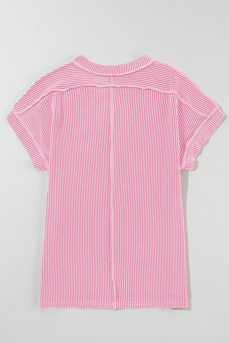 Европейская и американская повседневная свободная и универсальная женская футболка с круглым вырезом и короткими рукавами, лето 2025, новый однотонный текстурированный вязаный пуловер
