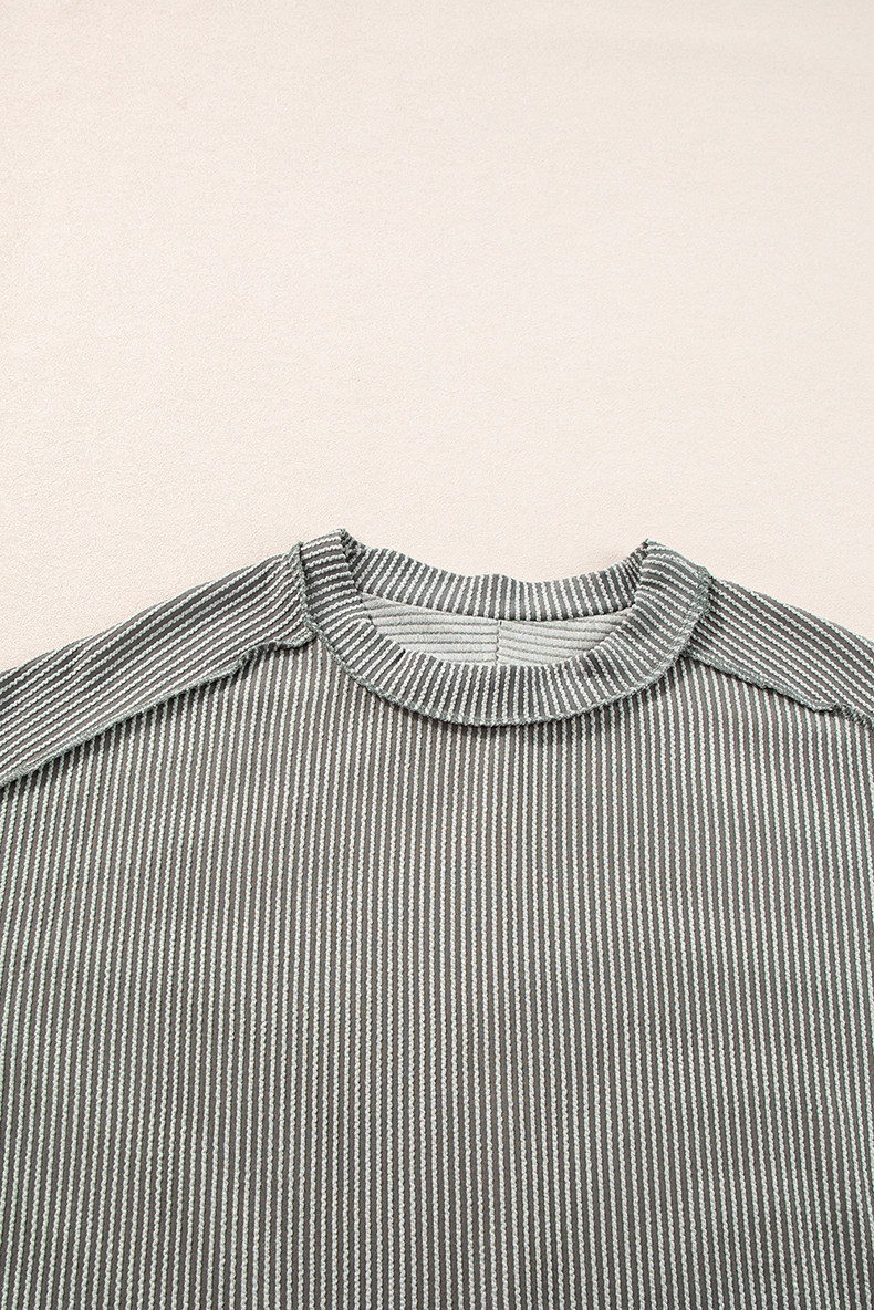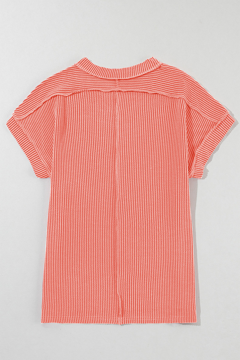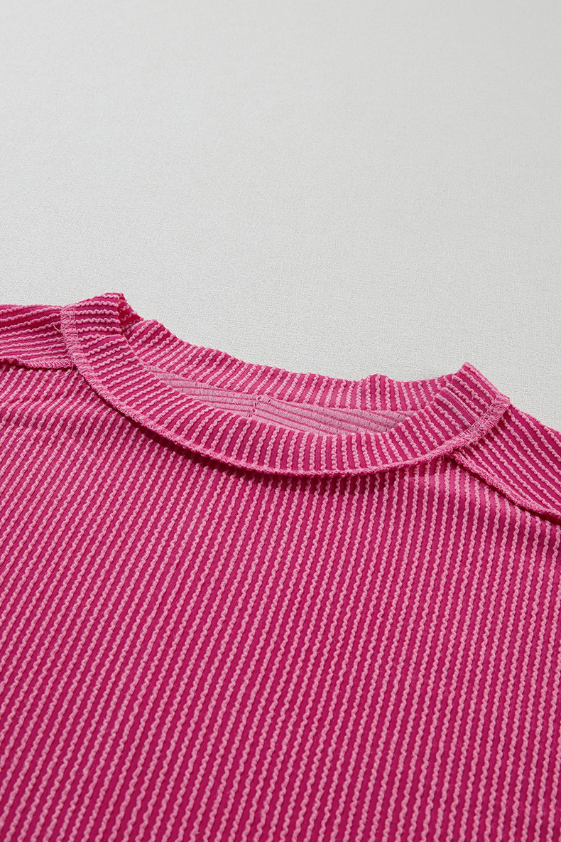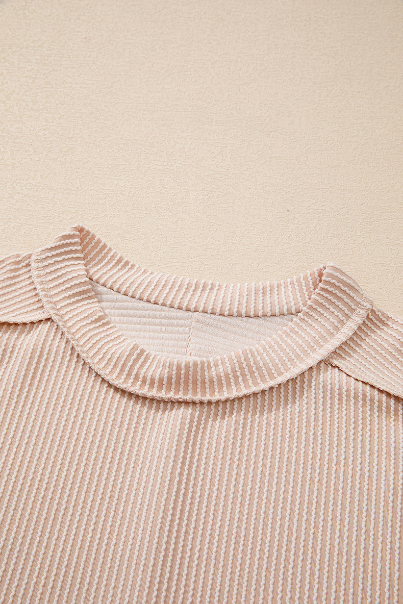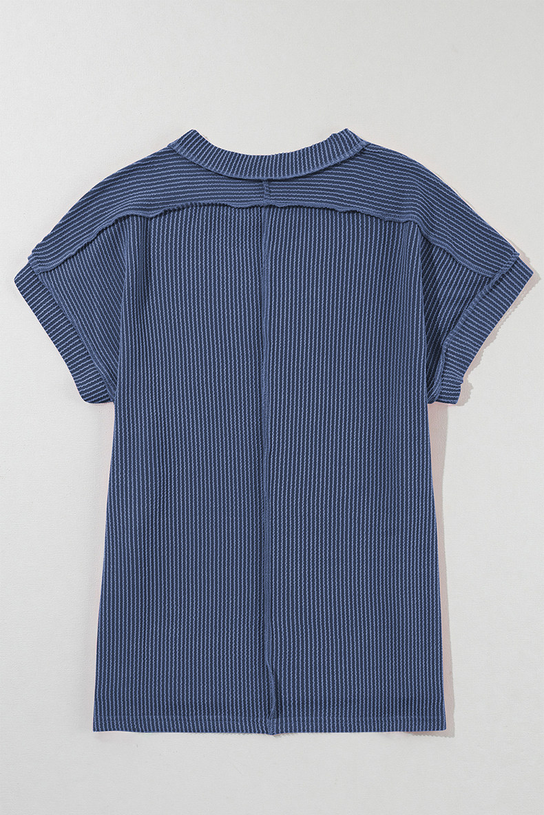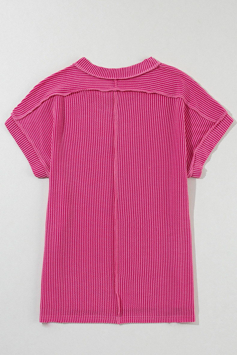 Европейская и американская повседневная свободная и универсальная женская футболка с круглым вырезом и короткими рукавами, лето 2025, новый однотонный текстурированный вязаный пуловер