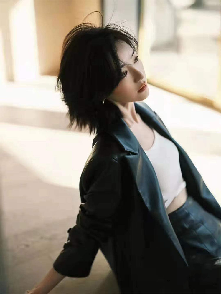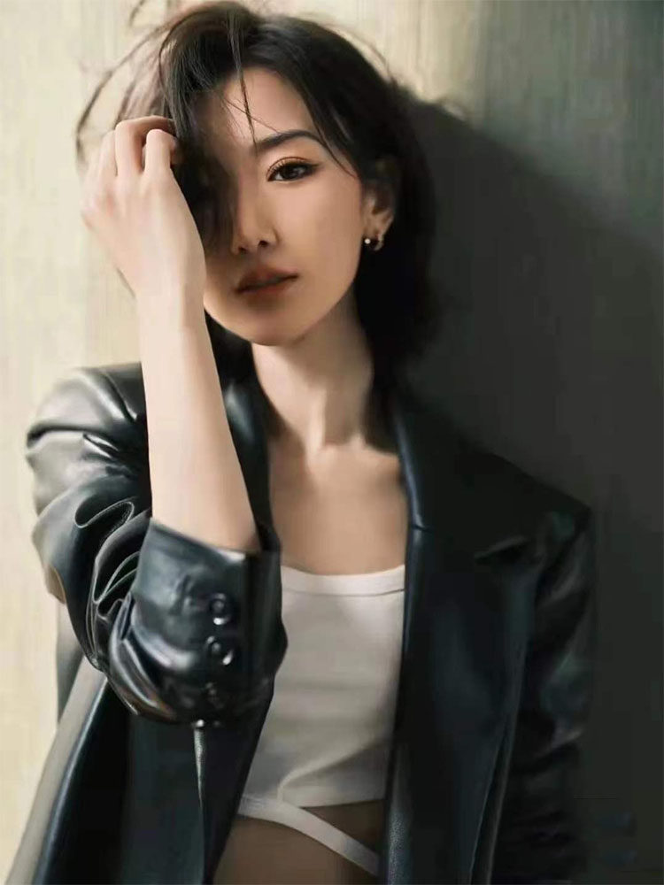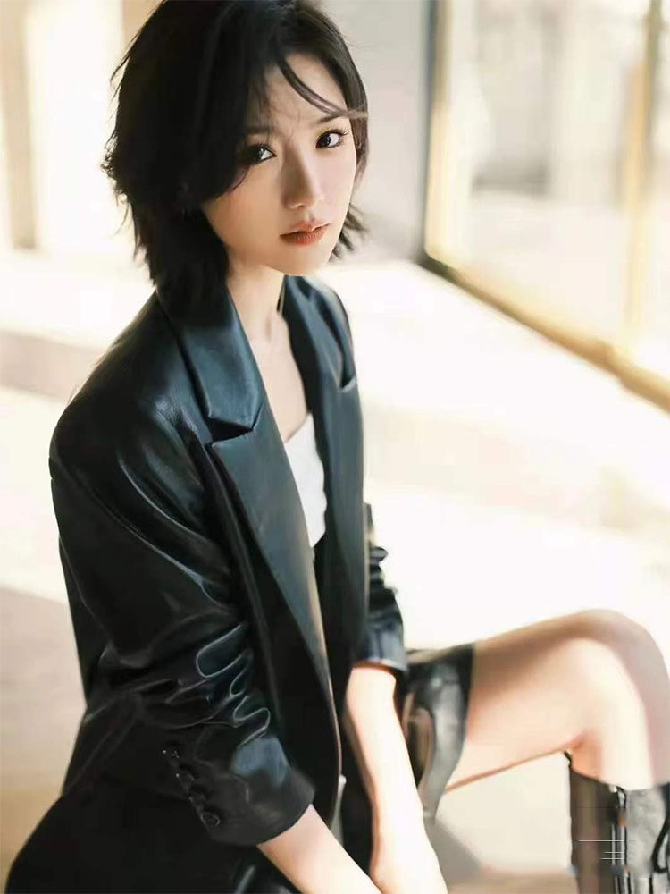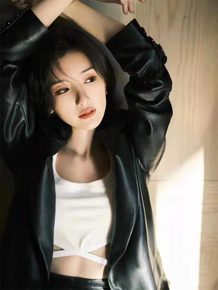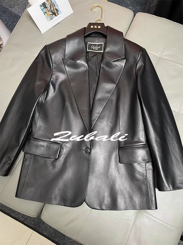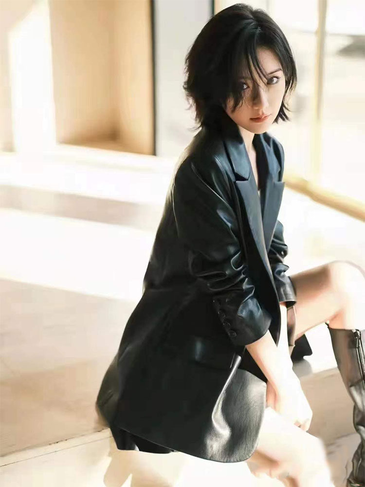 2023 spring Mao 1 Xiaotong same style genuine leather women's mid-length sheepskin loose leather suit jacket