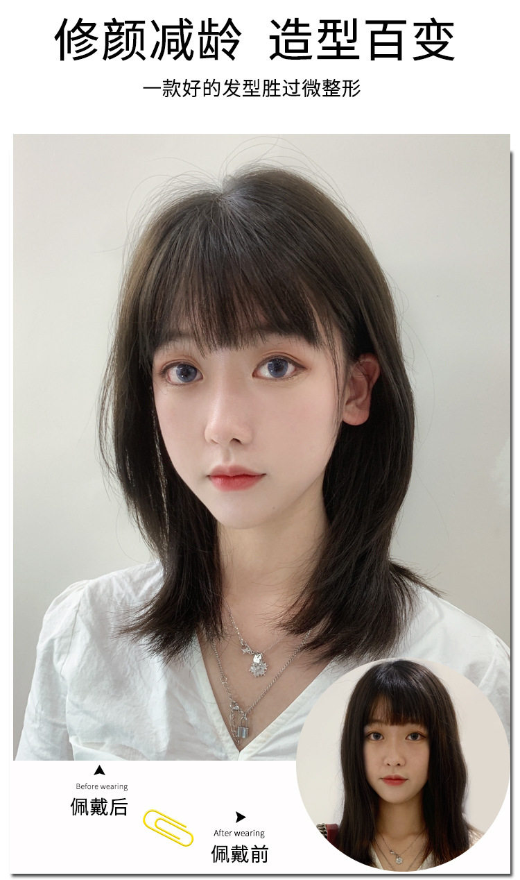 Женский парик, моделирующий лицо, омолаживающий, модный, из натуральных волос, с челкой, в стиле Синь Чжилей, длинный прямой парик.