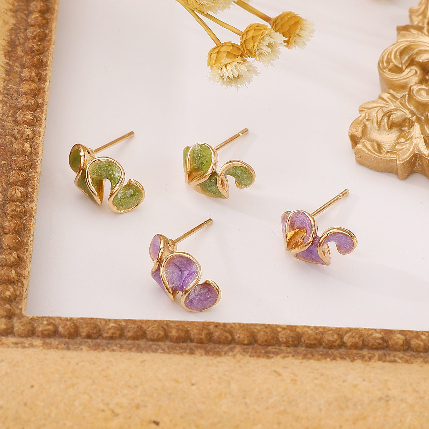 Lavender enamel earrings for women, fashionable, unique design, high-end sense, 2025, versatile, gentle, temperament, small earrings gift