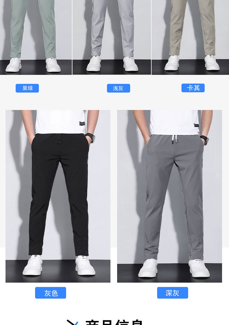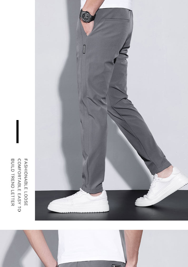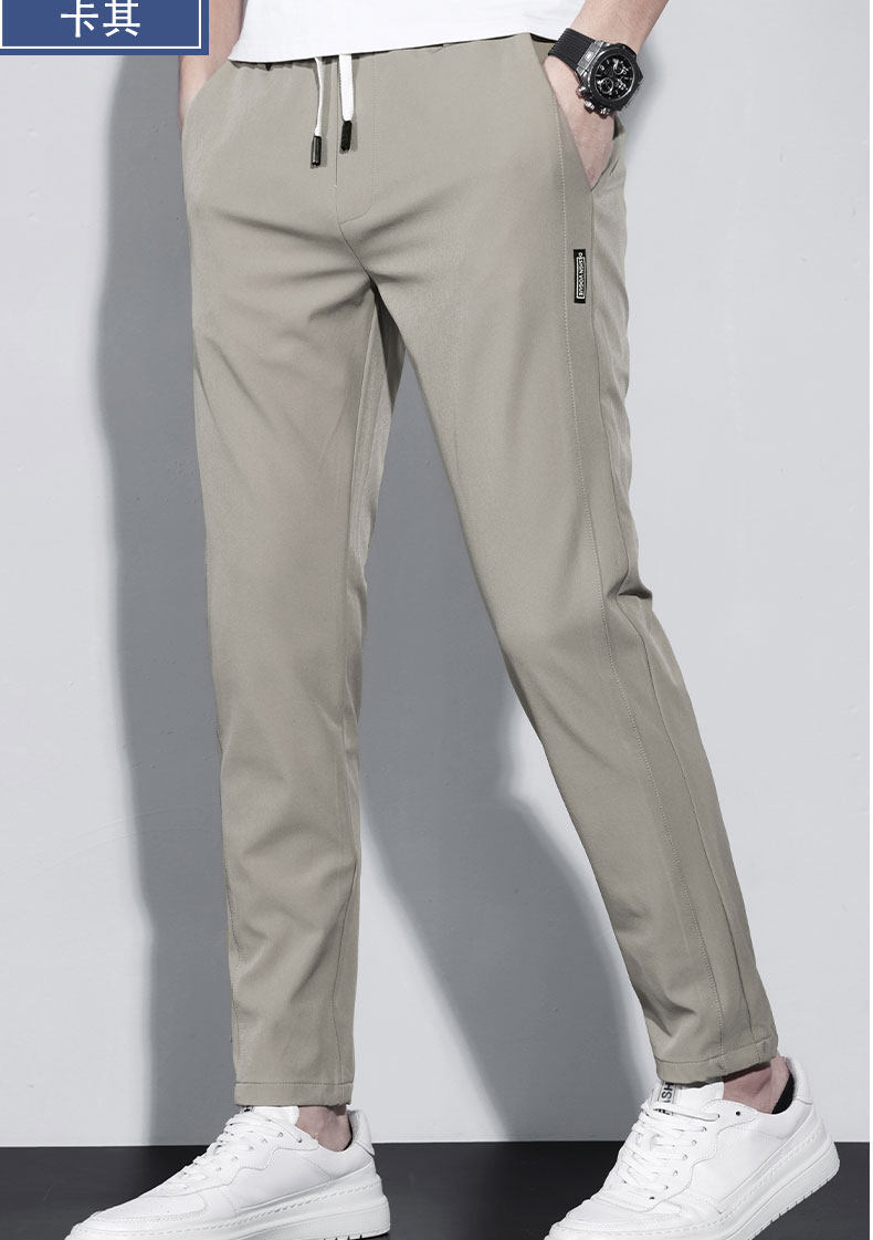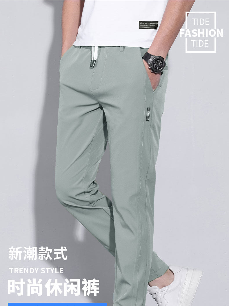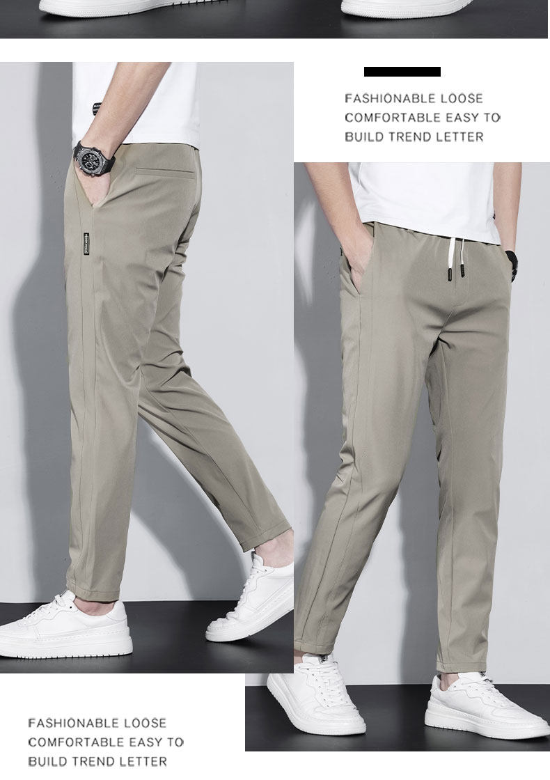 Thin Spring and Autumn Ice Silk Casual Pants for Men, Loose Fit, Elastic Waist, Straight Leg, Summer Men's Pants, 2025 New Trendy Brand