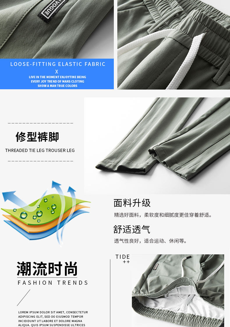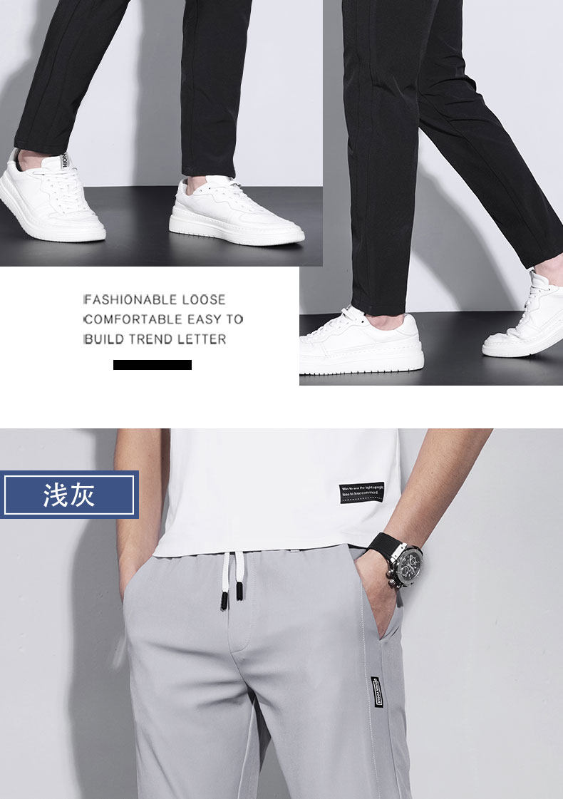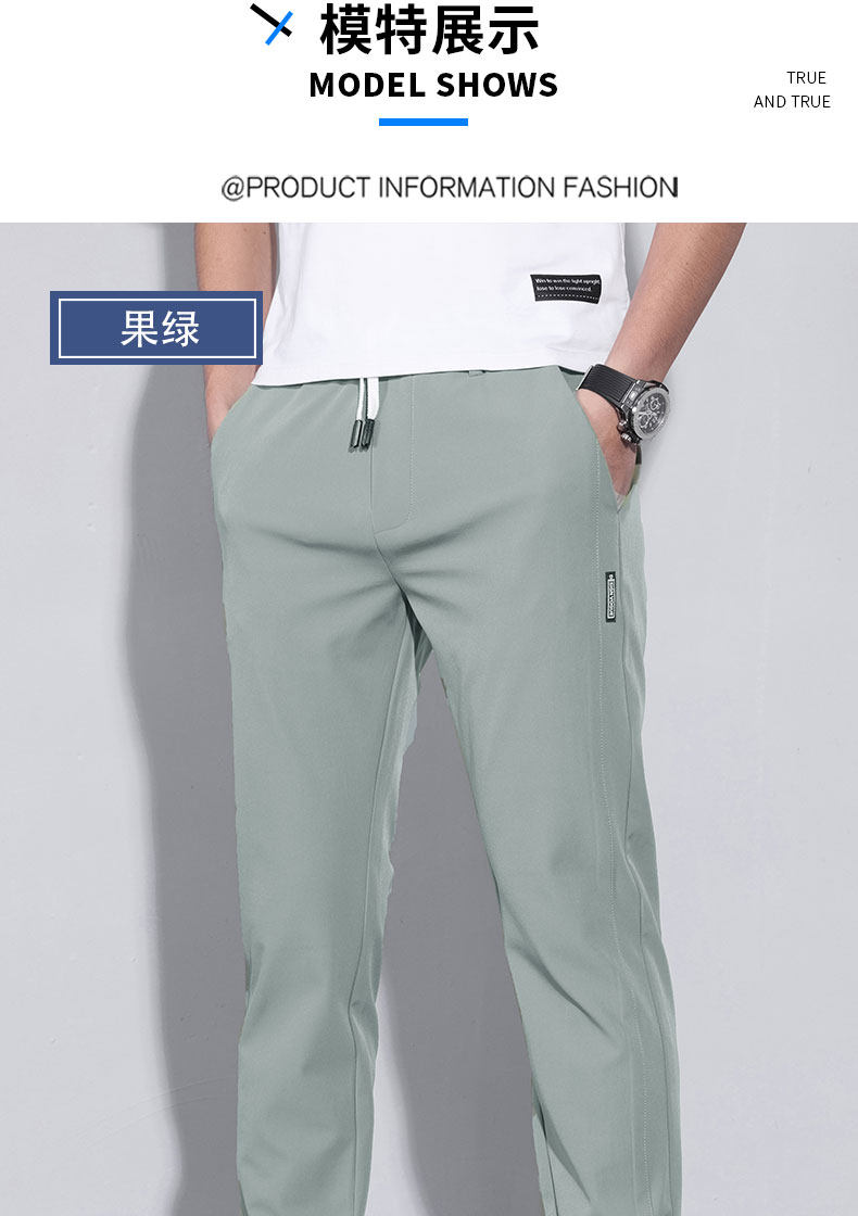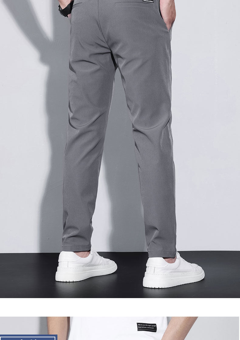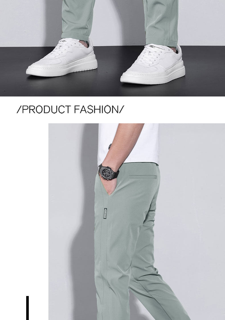 Thin Spring and Autumn Ice Silk Casual Pants for Men, Loose Fit, Elastic Waist, Straight Leg, Summer Men's Pants, 2025 New Trendy Brand
