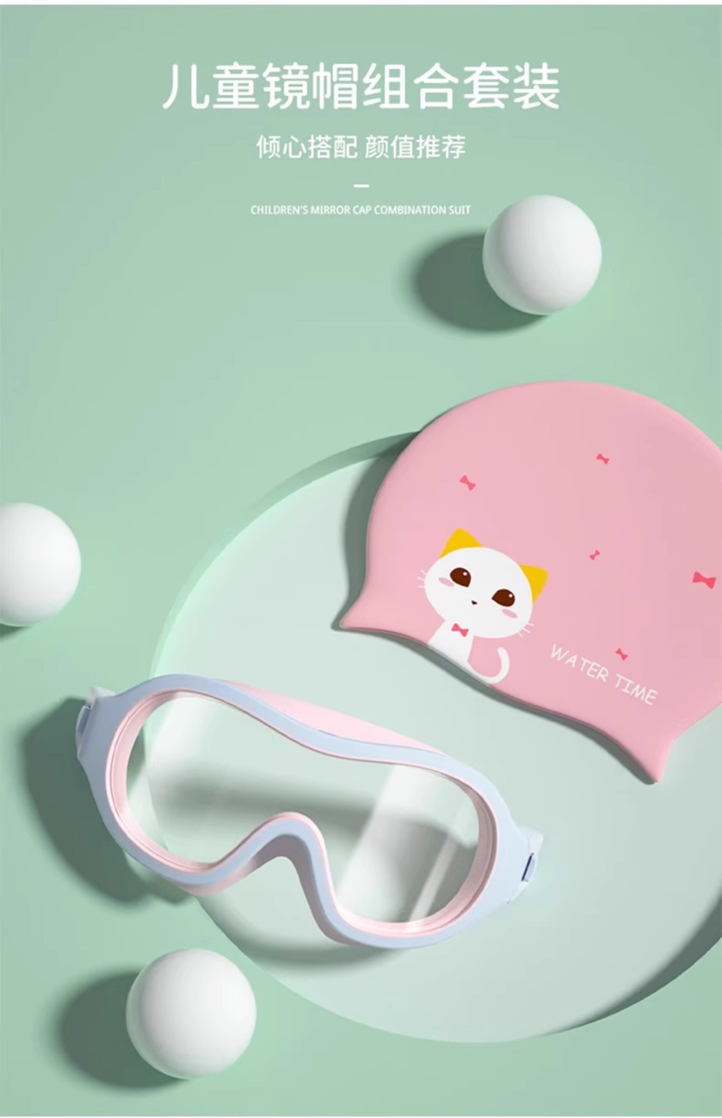 Watertime children's large-frame swimming goggles for girls and boys waterproof and anti-fog hd swimming goggles professional swimming cap set
