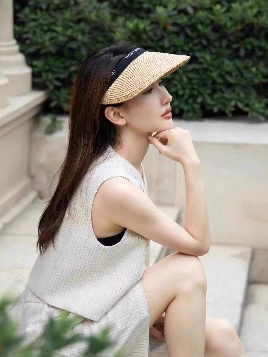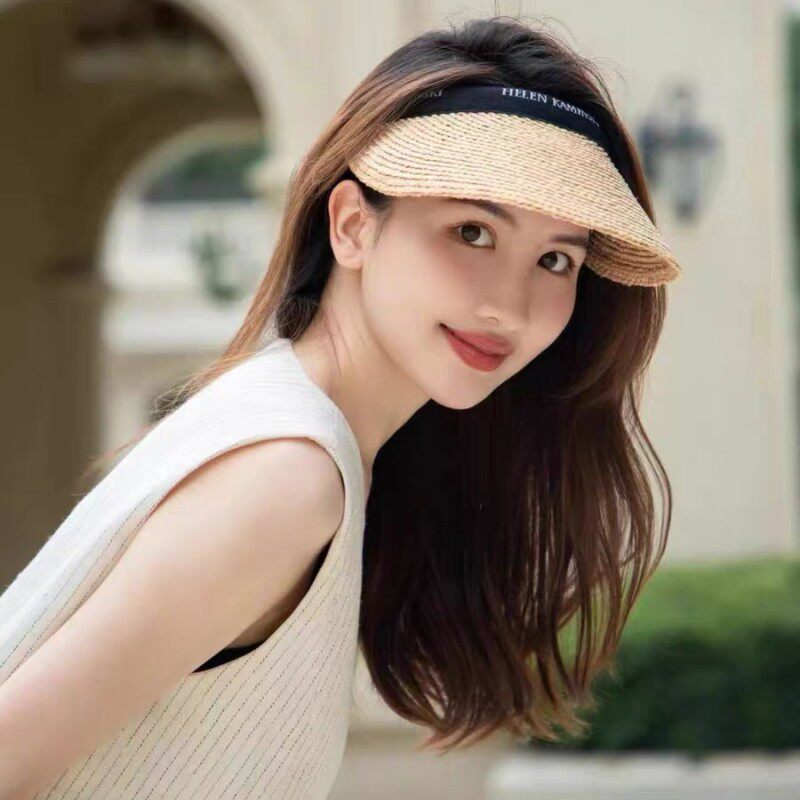 Japan's helen kamisk empty top hat women's raffia sun protection hat headband hat sun protection versatile face-showing small straw hat