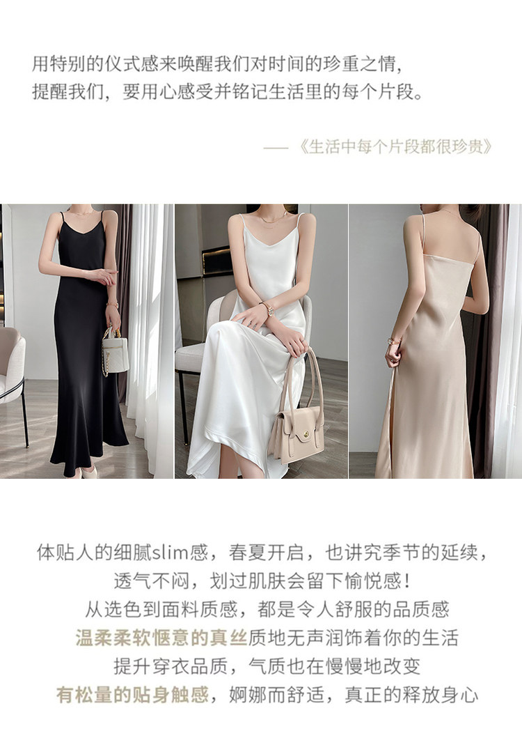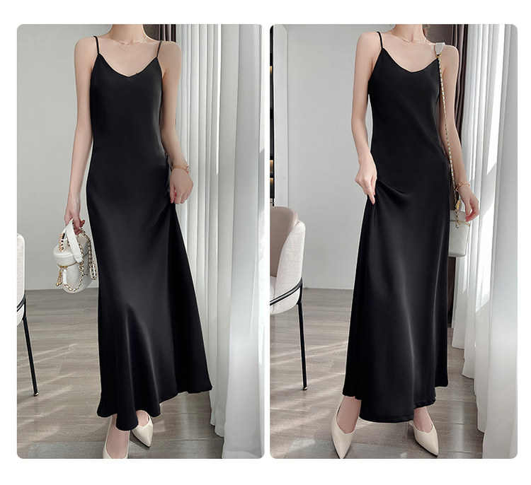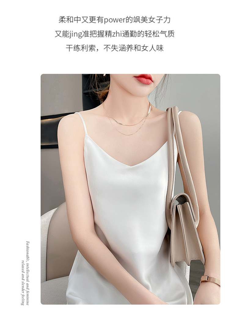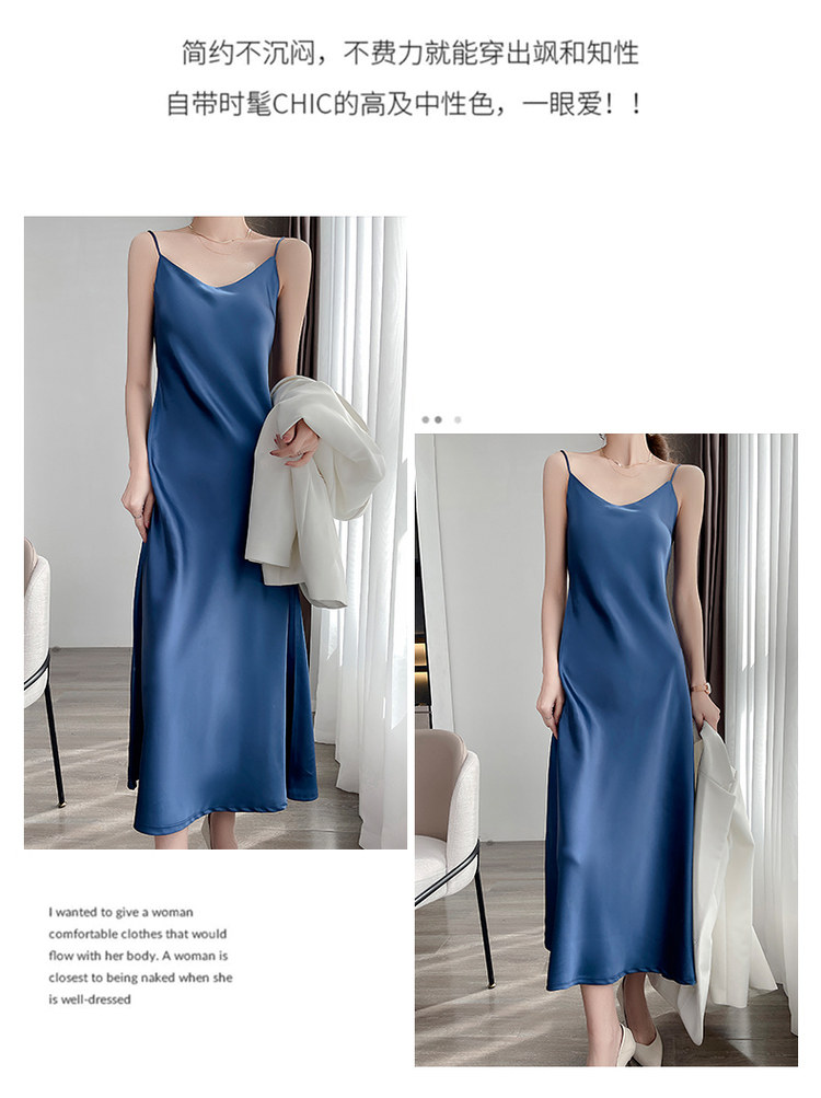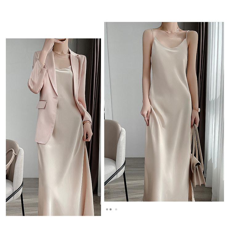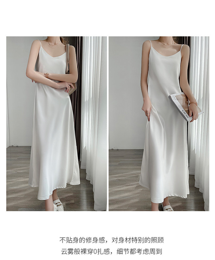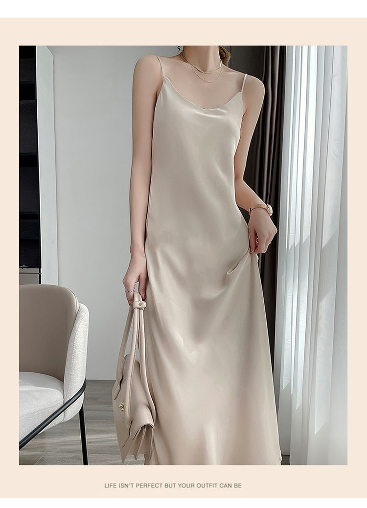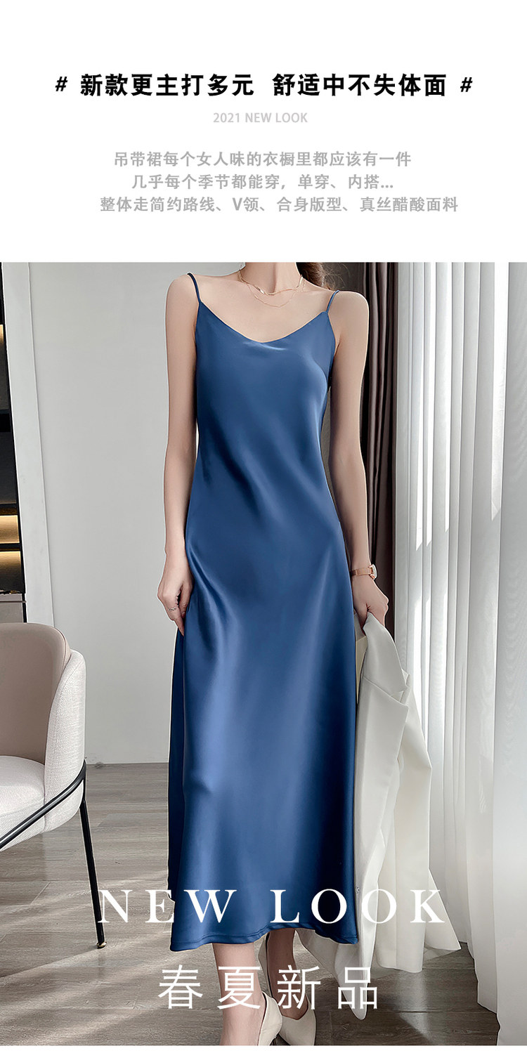Triacetate imitation silk suspender dress for women summer loose inner long skirt French design fairy satin niche
