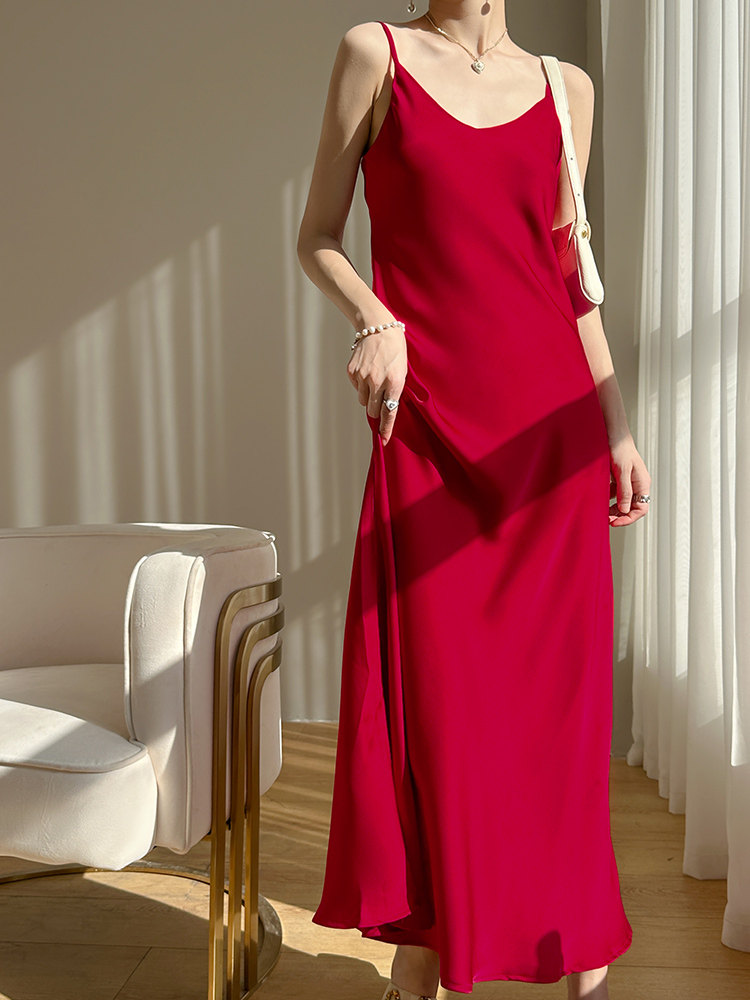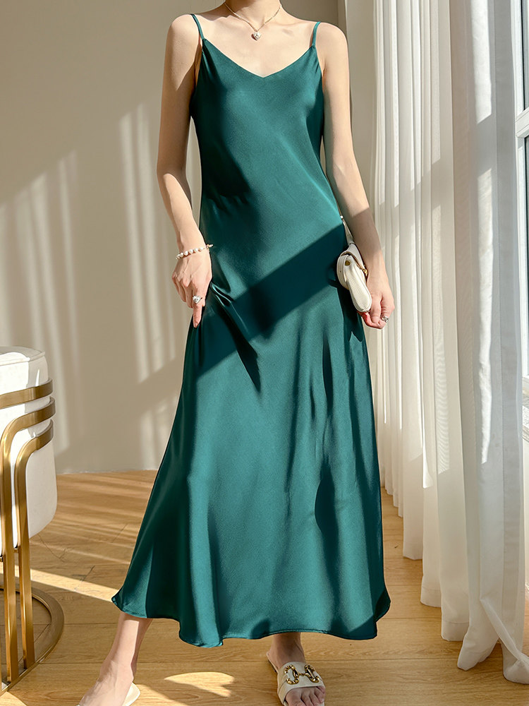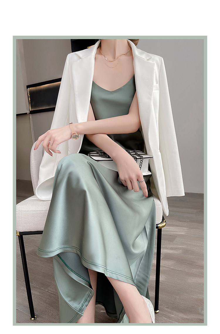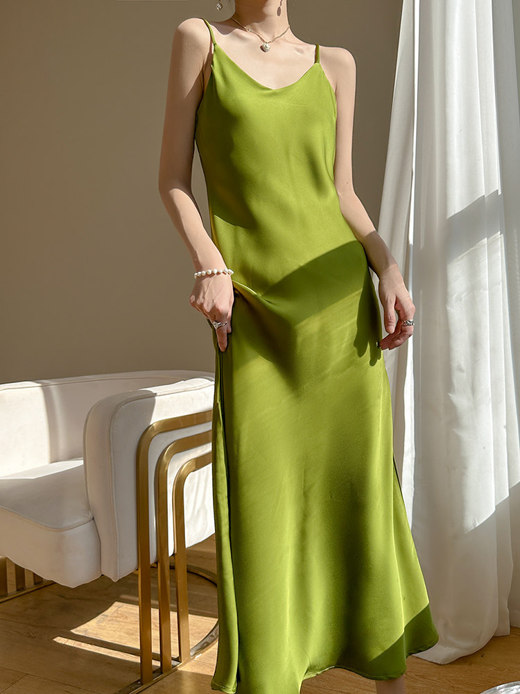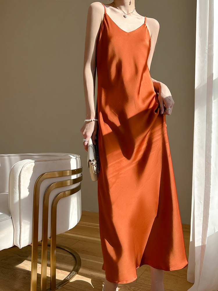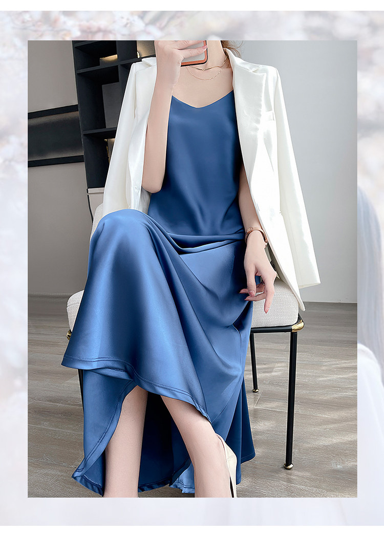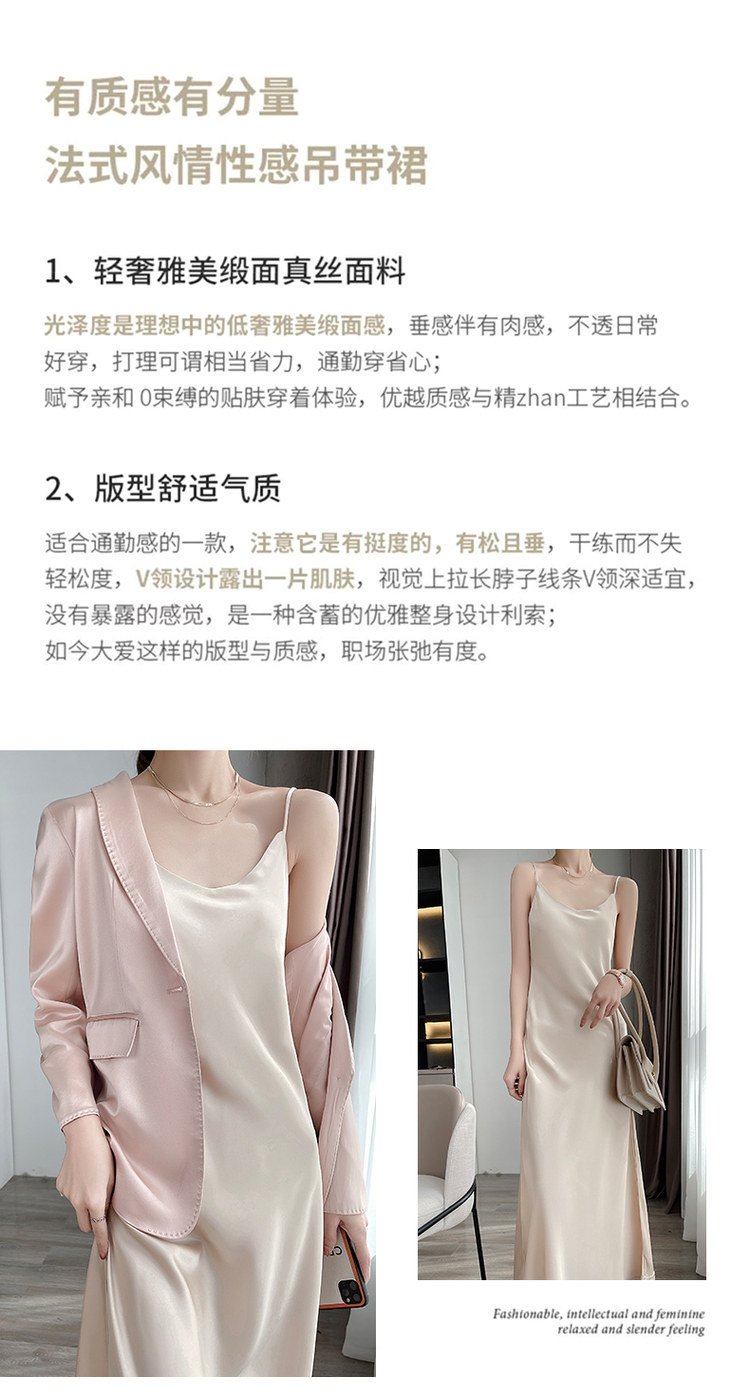 Triacetate imitation silk suspender dress for women summer loose inner long skirt French design fairy satin niche