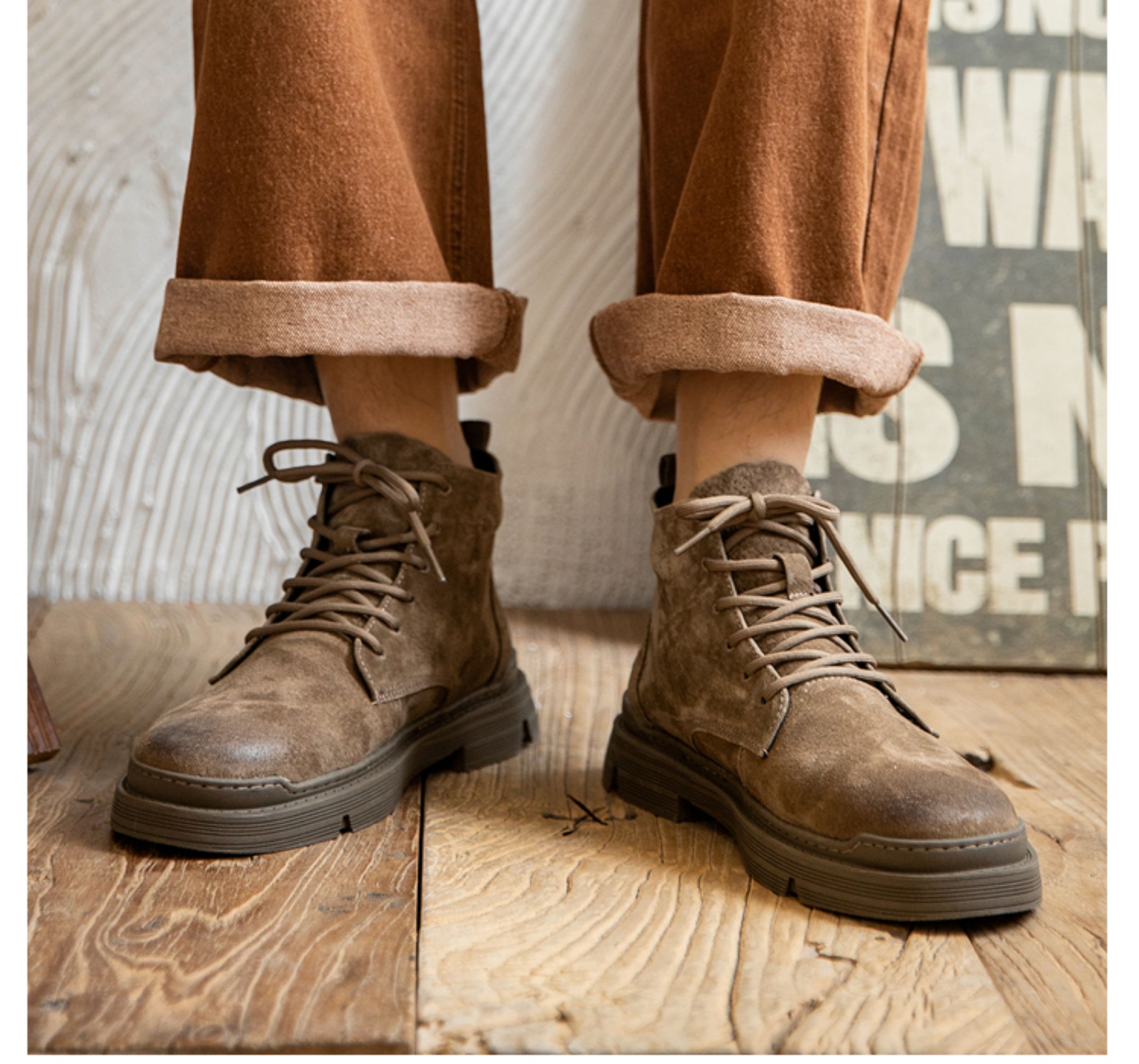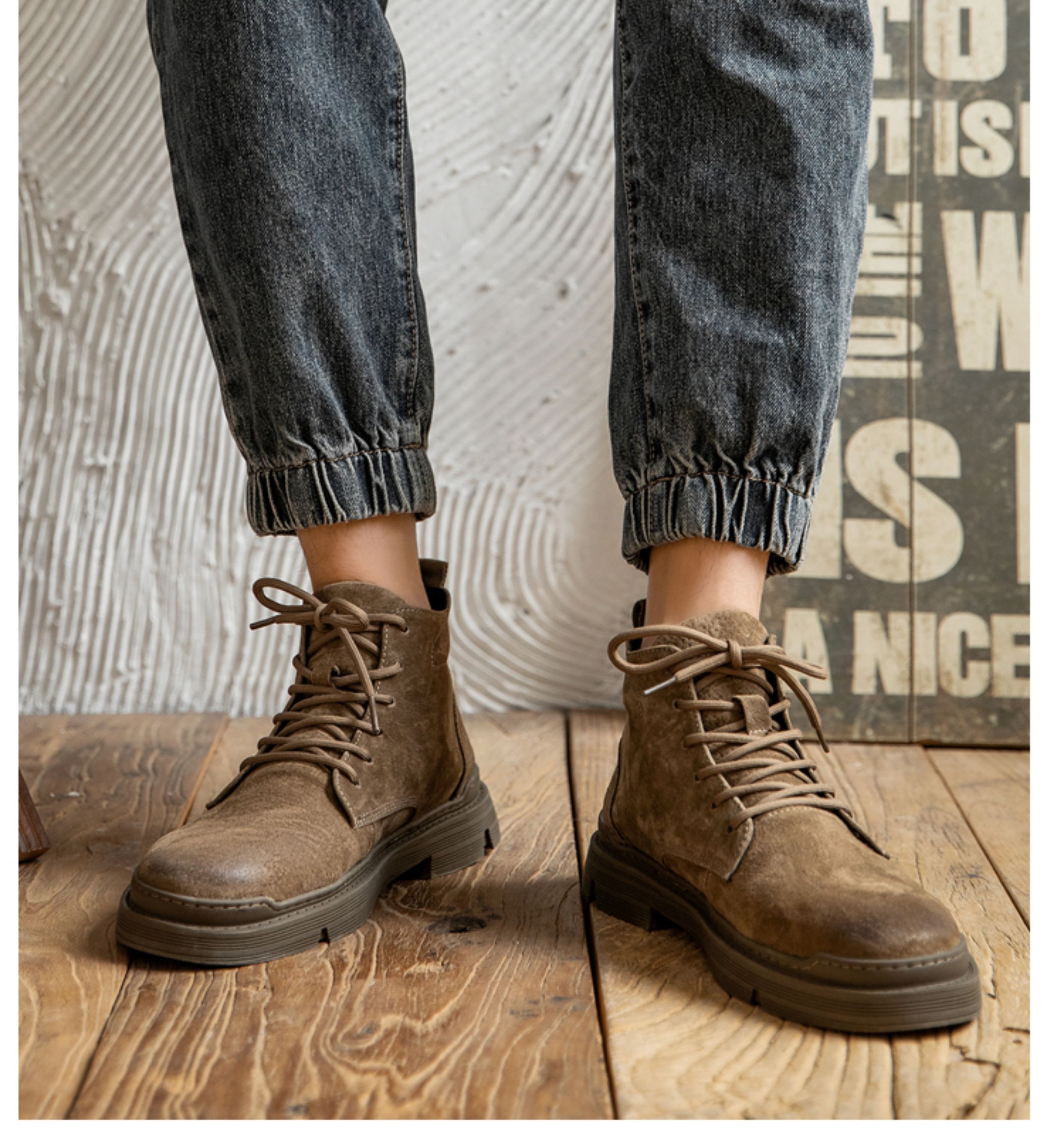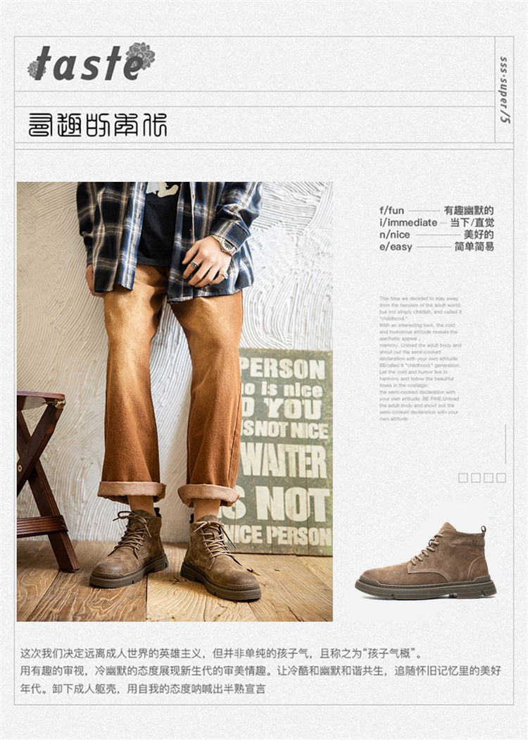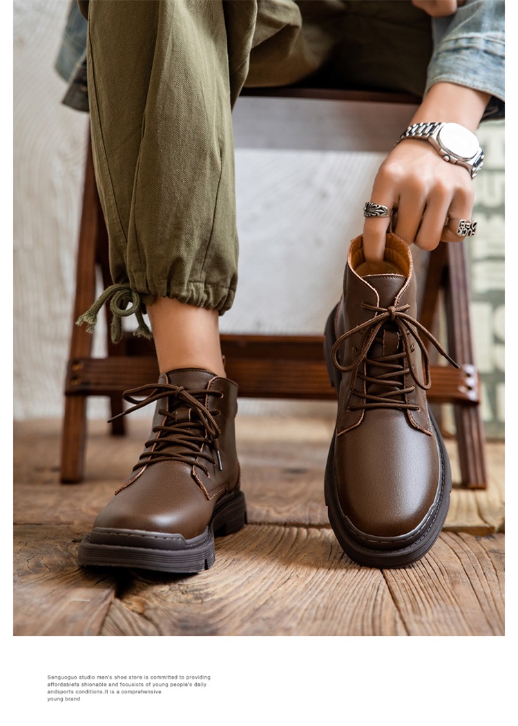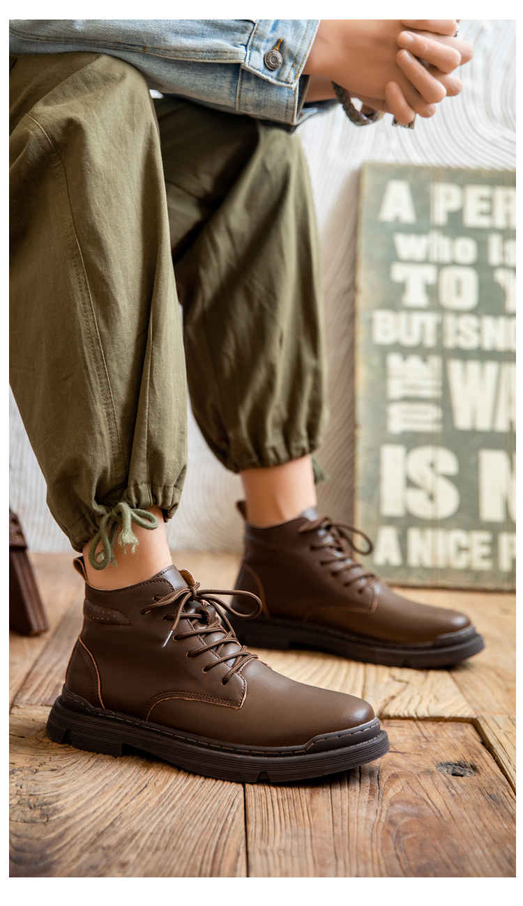 Martin boots men's winter genuine leather casual high-top shoes trendy plus velvet retro British style mid-top Korean style work boots
