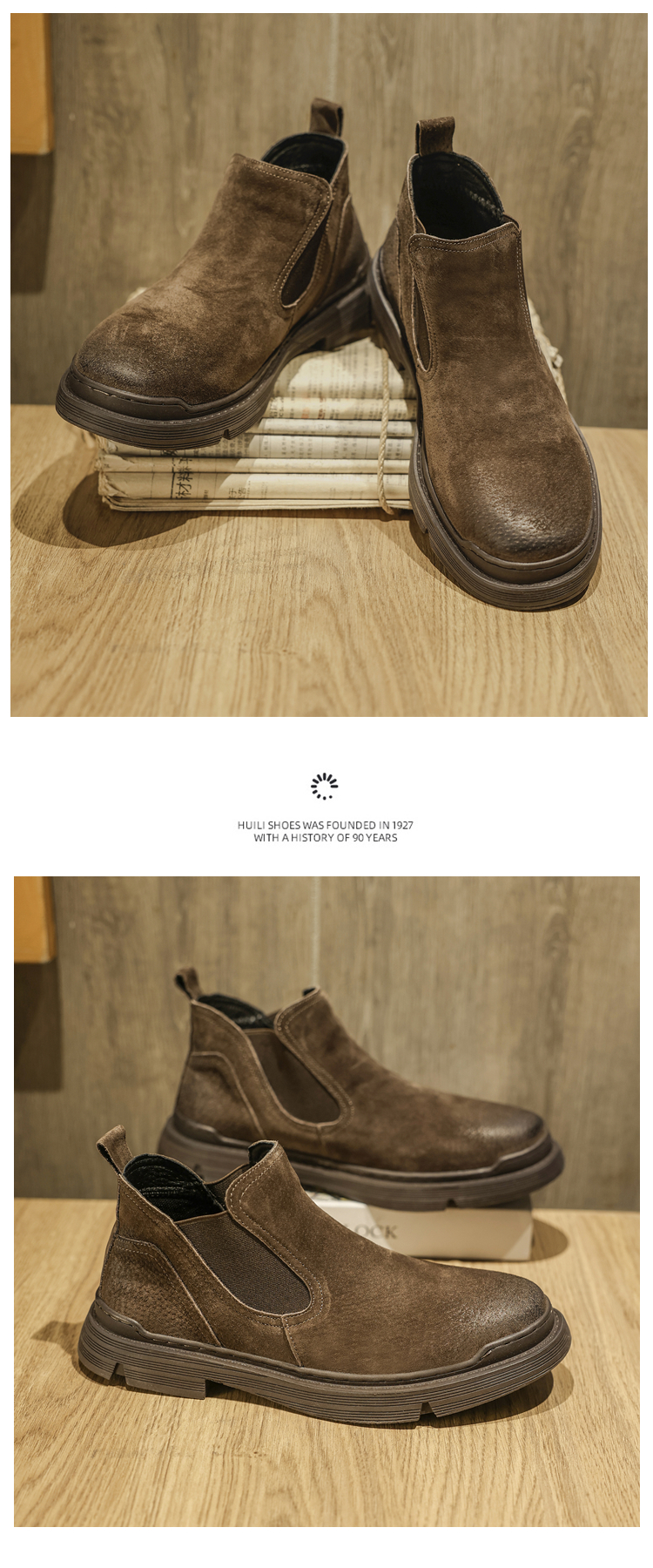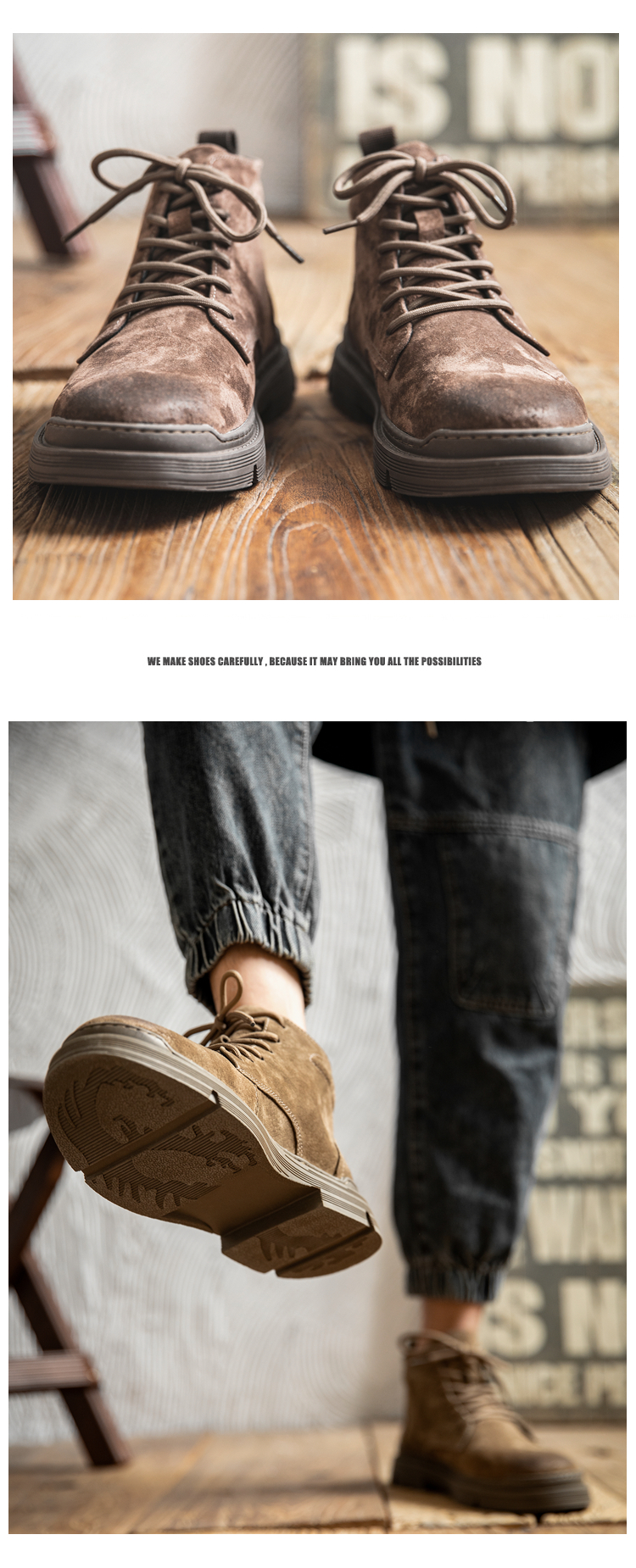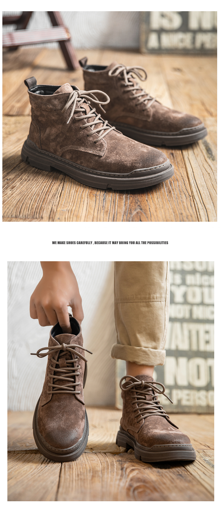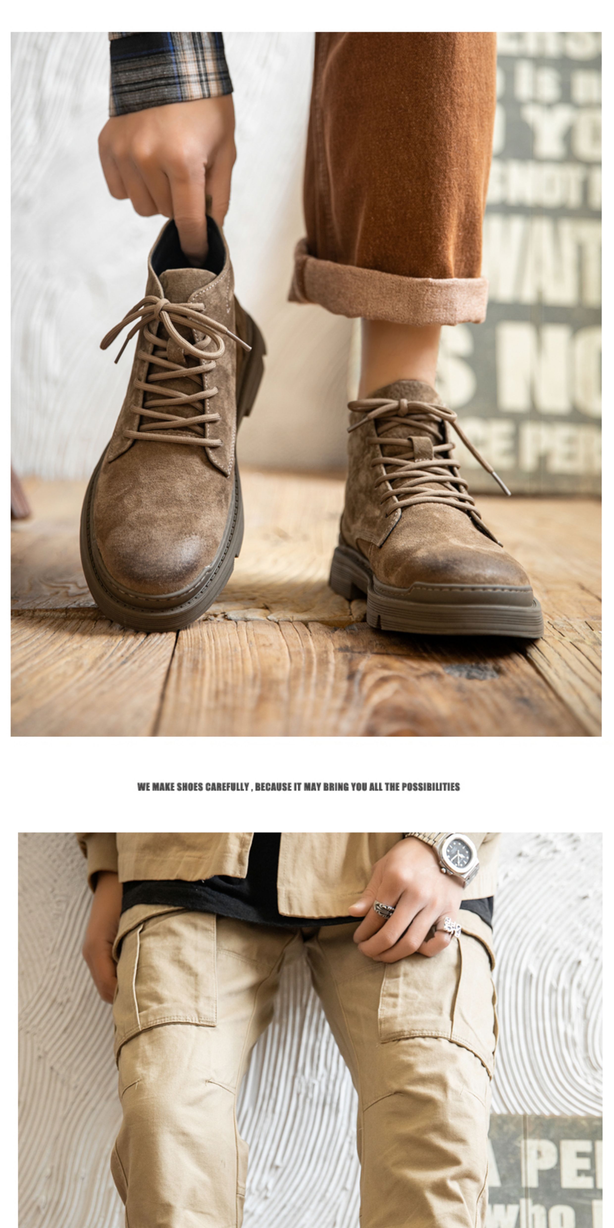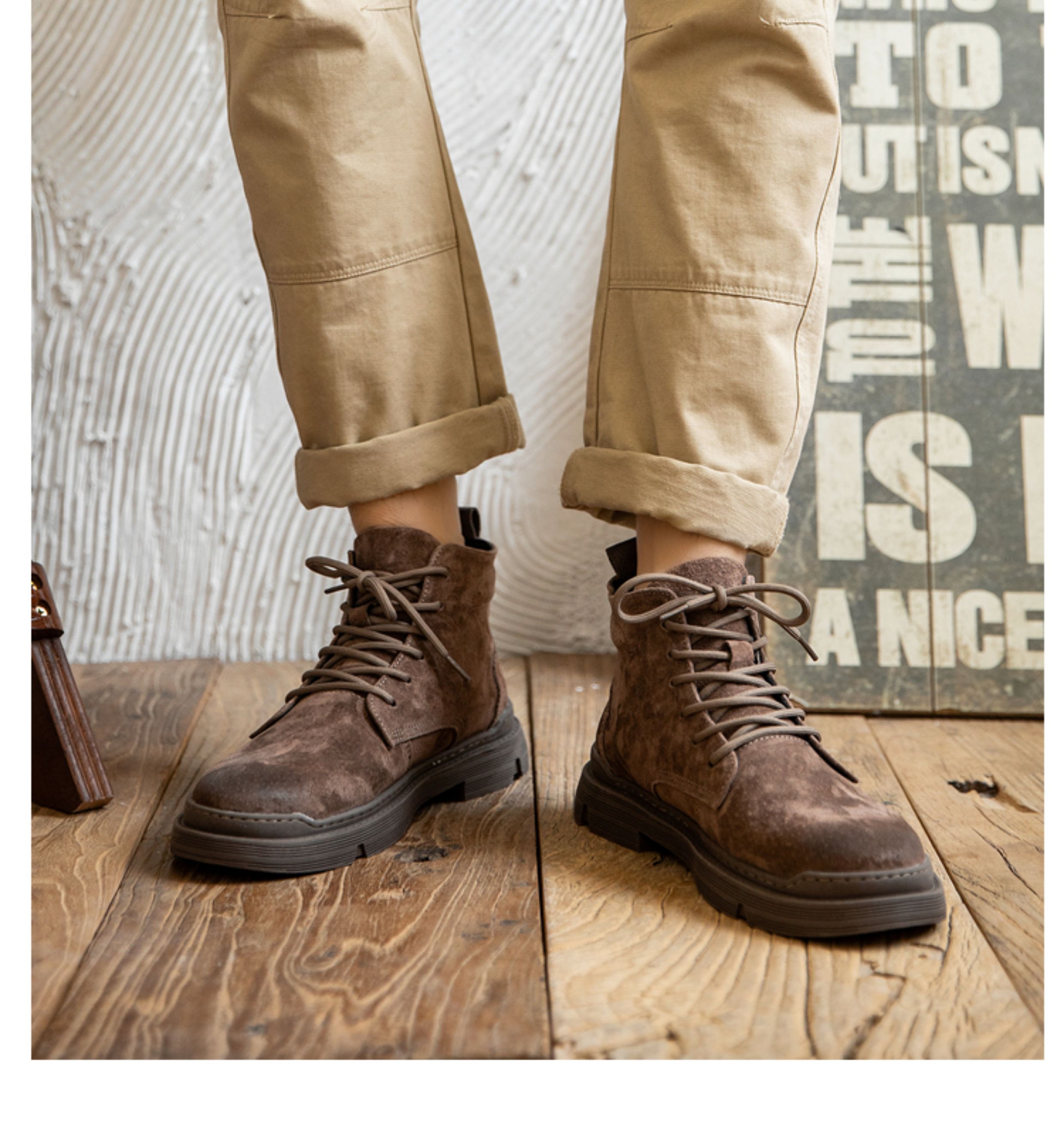 Martin boots men's winter genuine leather casual high-top shoes trendy plus velvet retro British style mid-top Korean style work boots