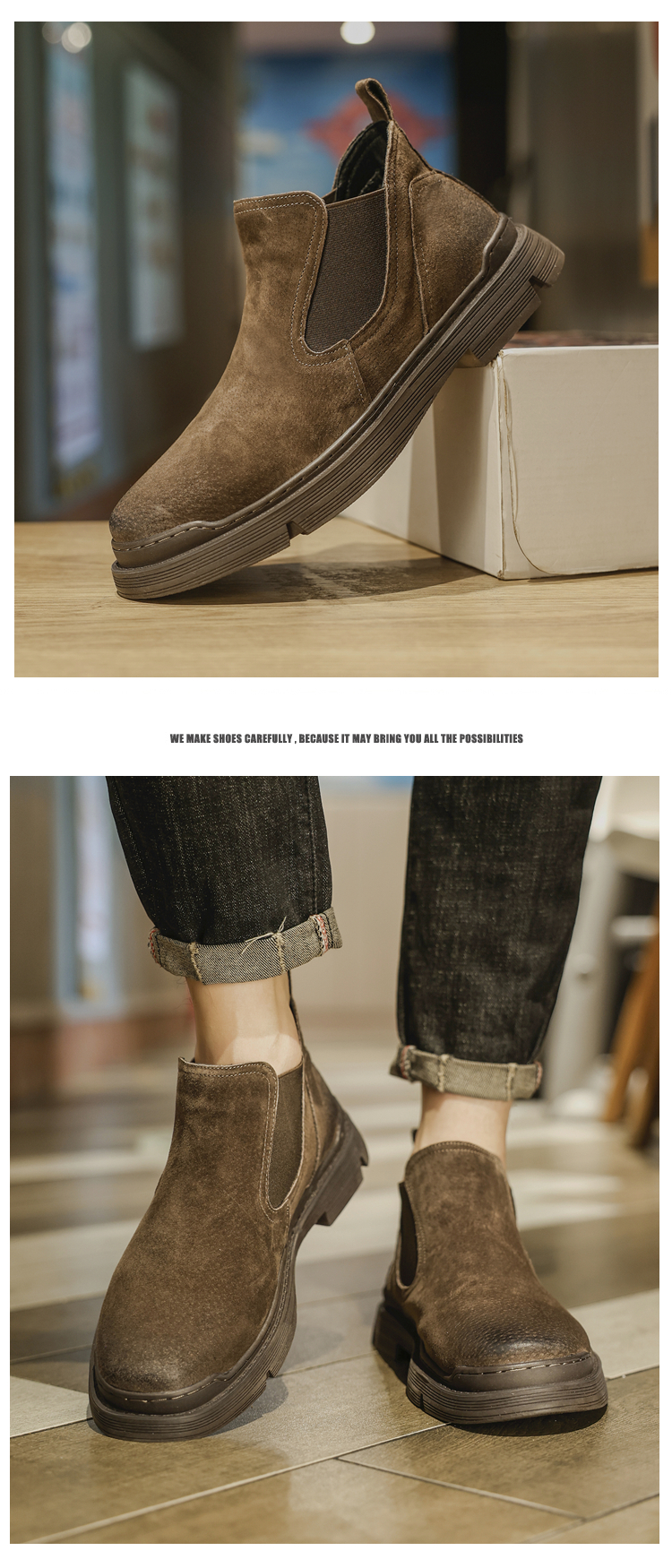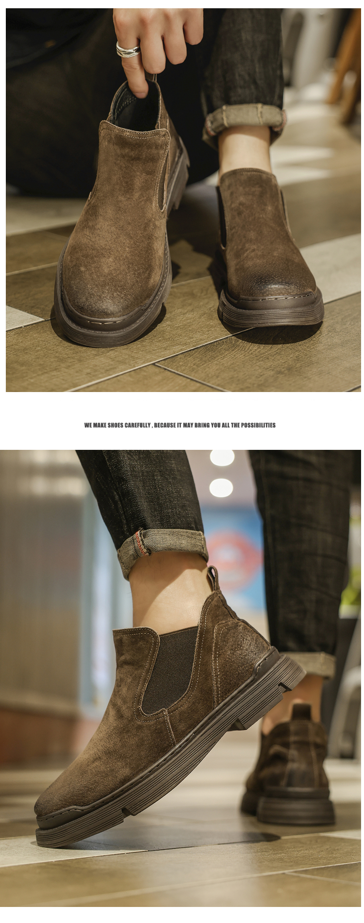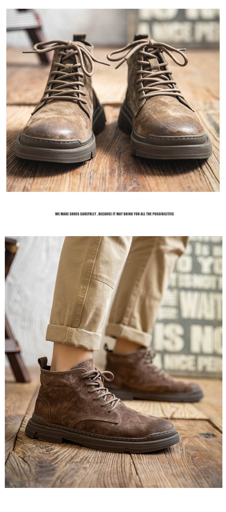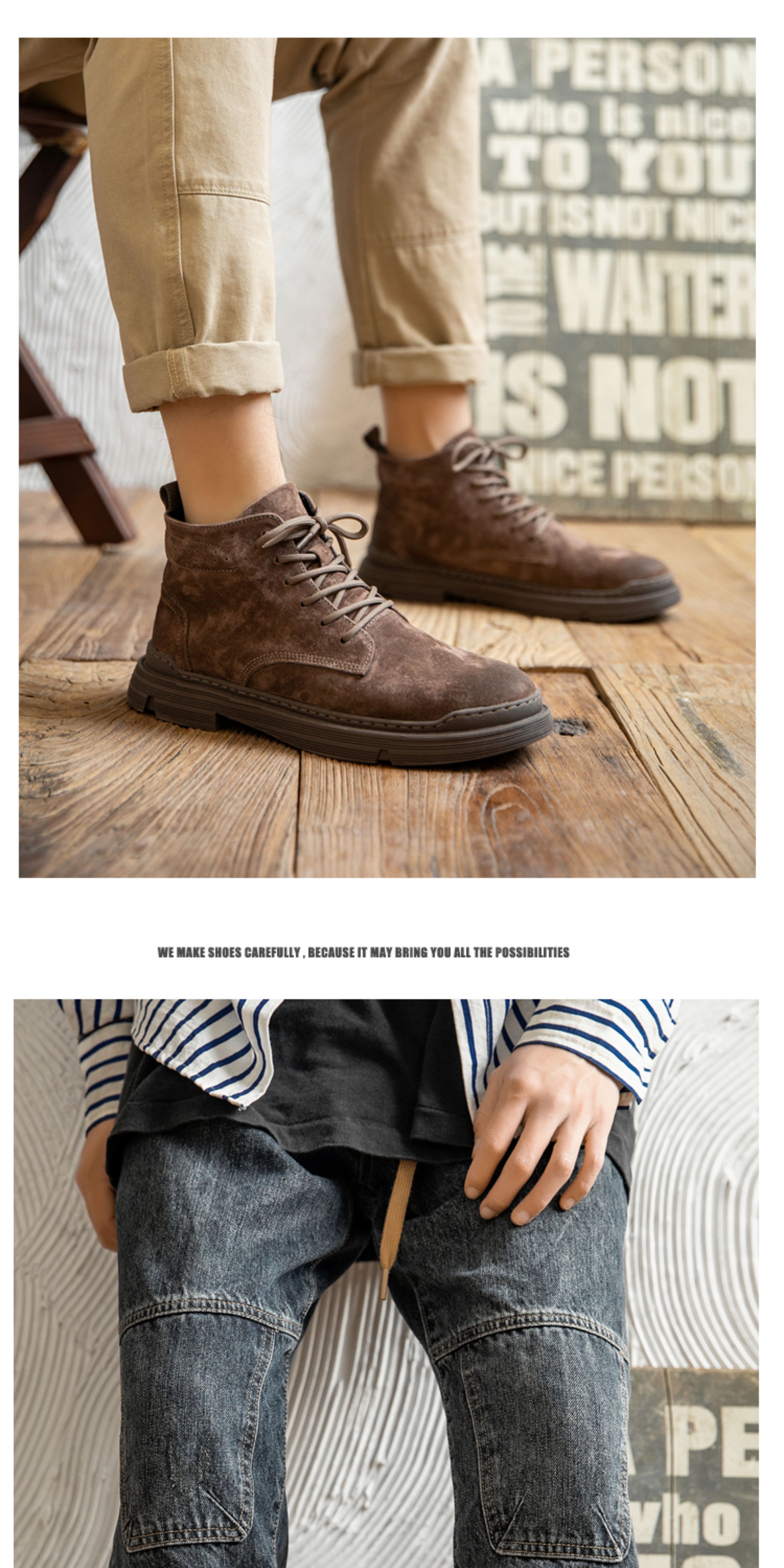 Martin boots men's winter genuine leather casual high-top shoes trendy plus velvet retro British style mid-top Korean style work boots