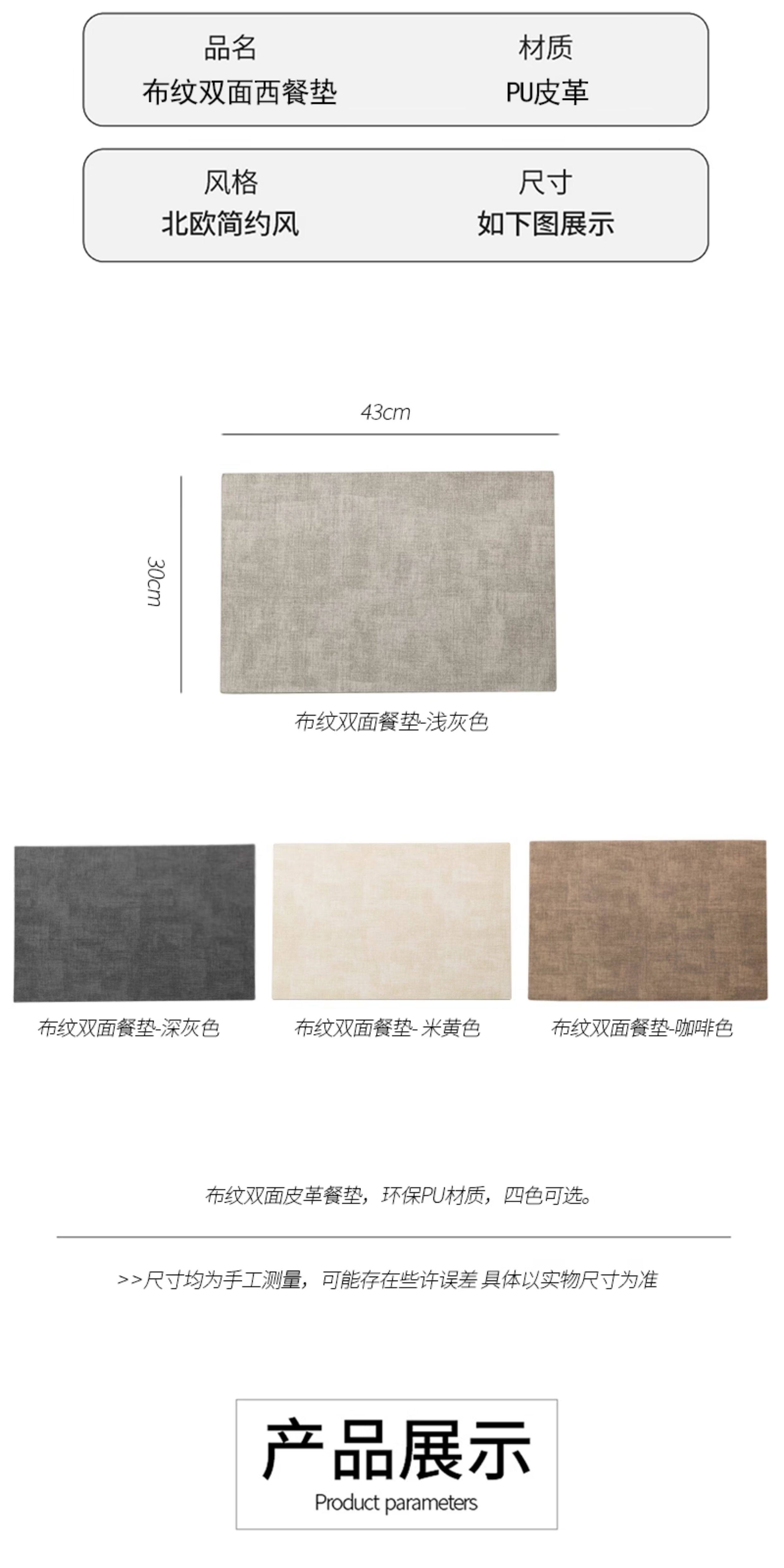 Yiheng's creative Japanese-style waterproof and heat-resistant mat, light luxury leather household oil-proof rectangular Western restaurant table mat
