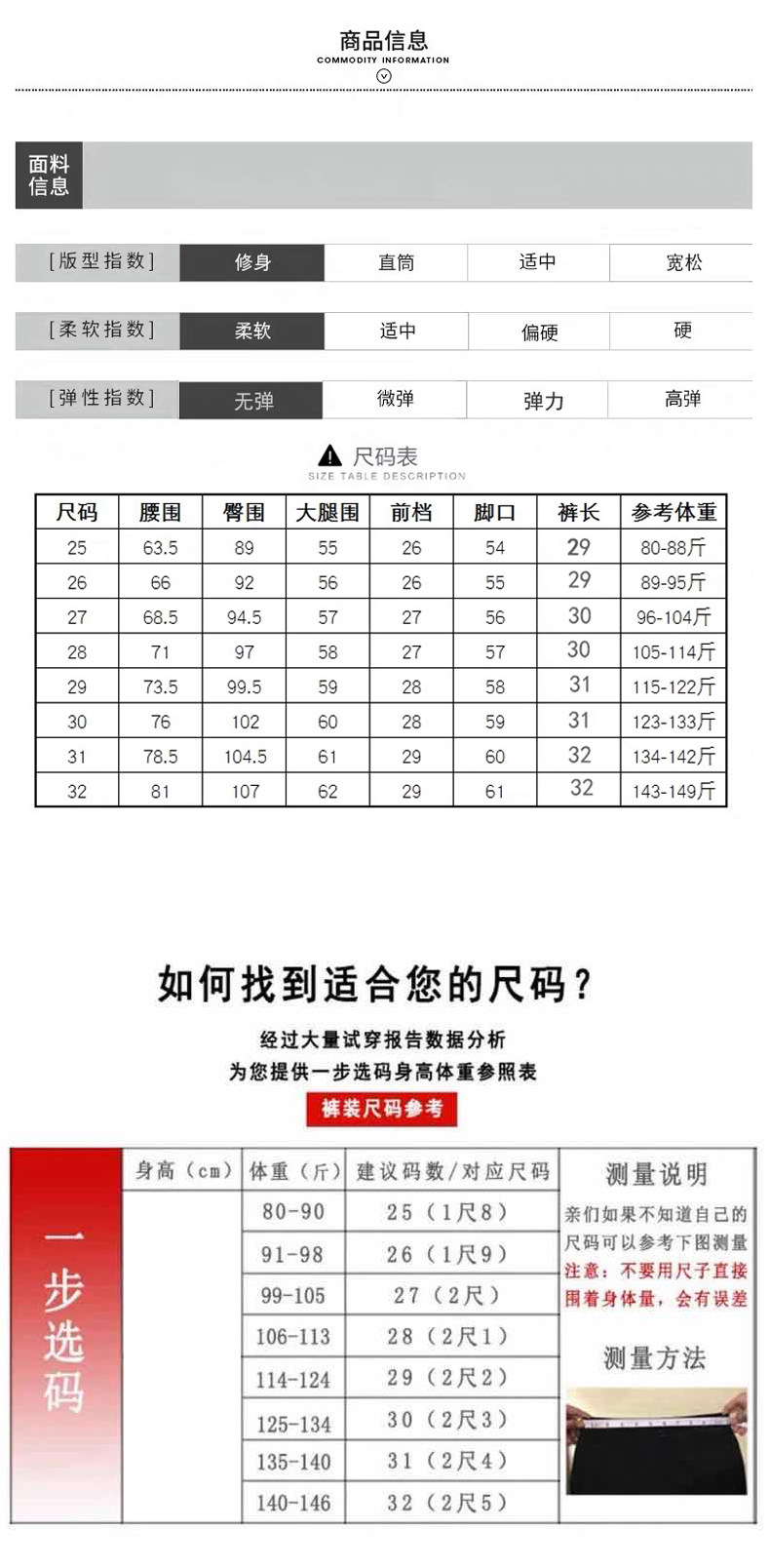 Material ingredients Cotton 98% polyurethane elastic fiber (spandex) 2%