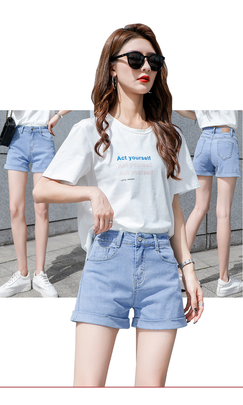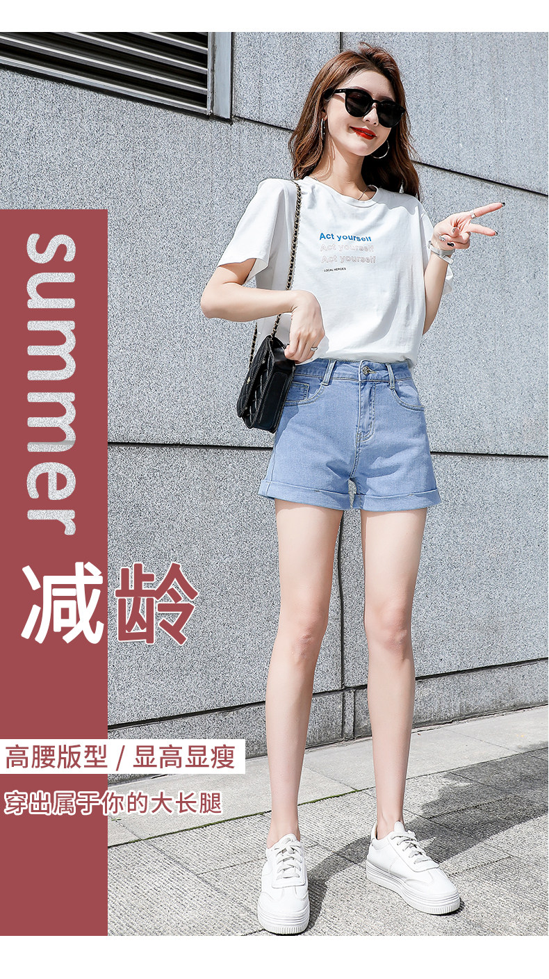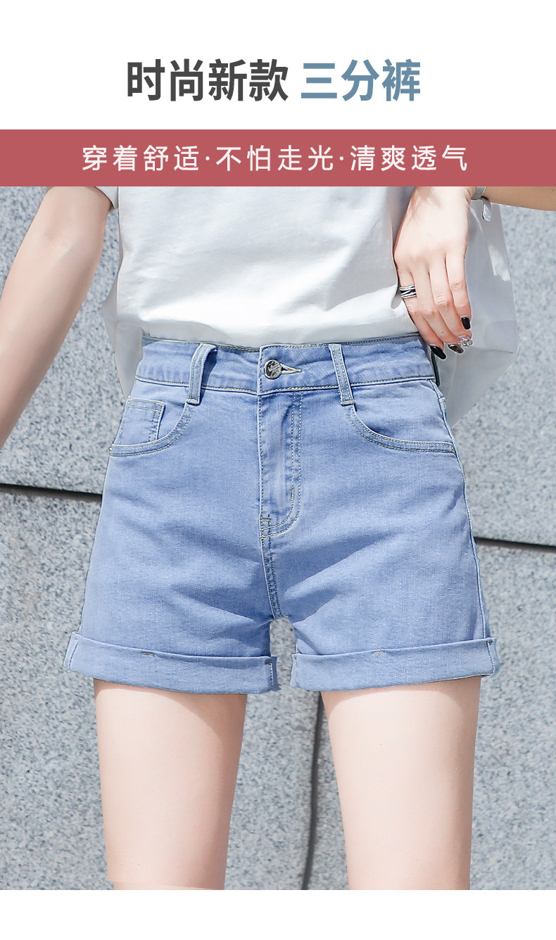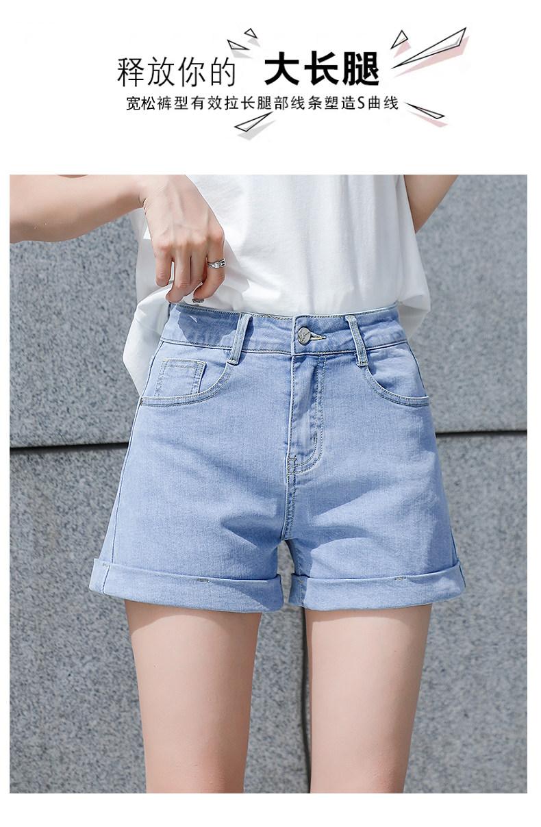 Light blue denim shorts for women summer 2025 new Korean style high-waisted loose casual a-line slimming Internet celebrity hot pants trend
