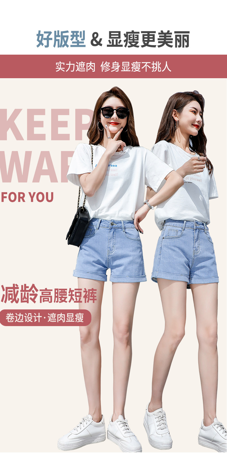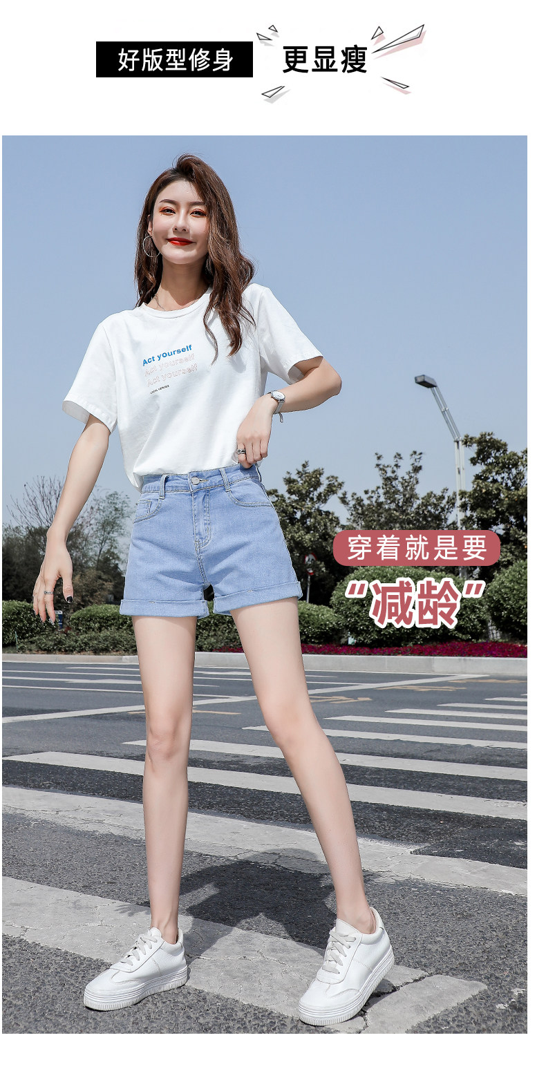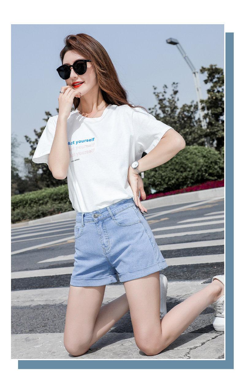 Light blue denim shorts for women summer 2025 new Korean style high-waisted loose casual a-line slimming Internet celebrity hot pants trend