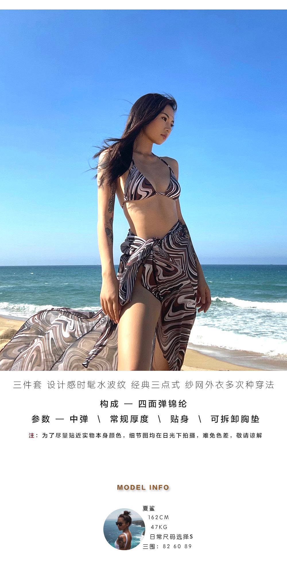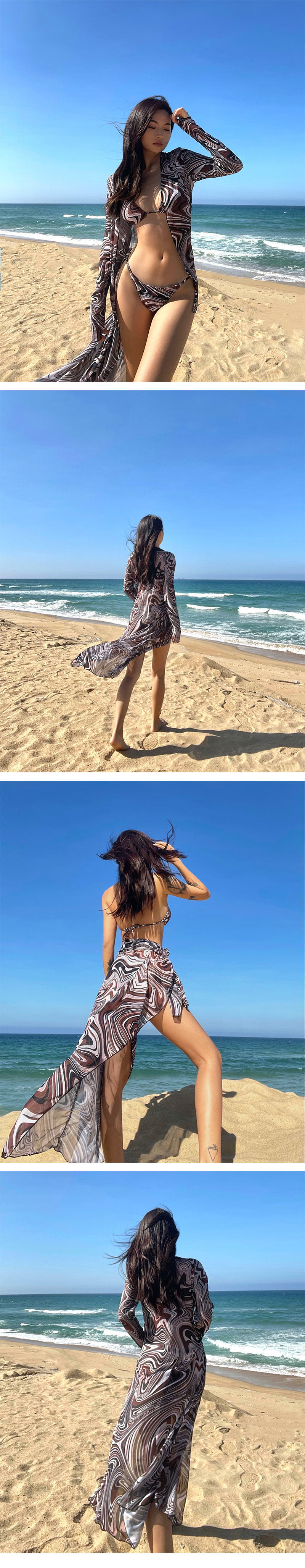 Sexy European and American three-point bikini, water ripples, small breasts, gathered beach vacation split swimsuit, slimming three-piece set