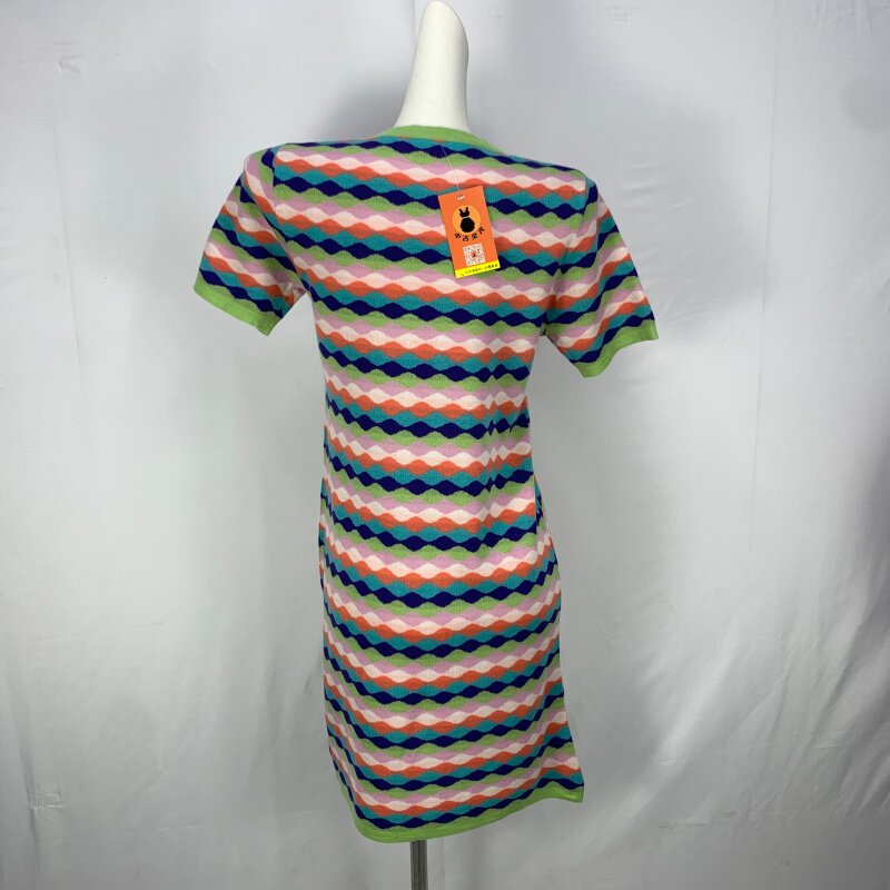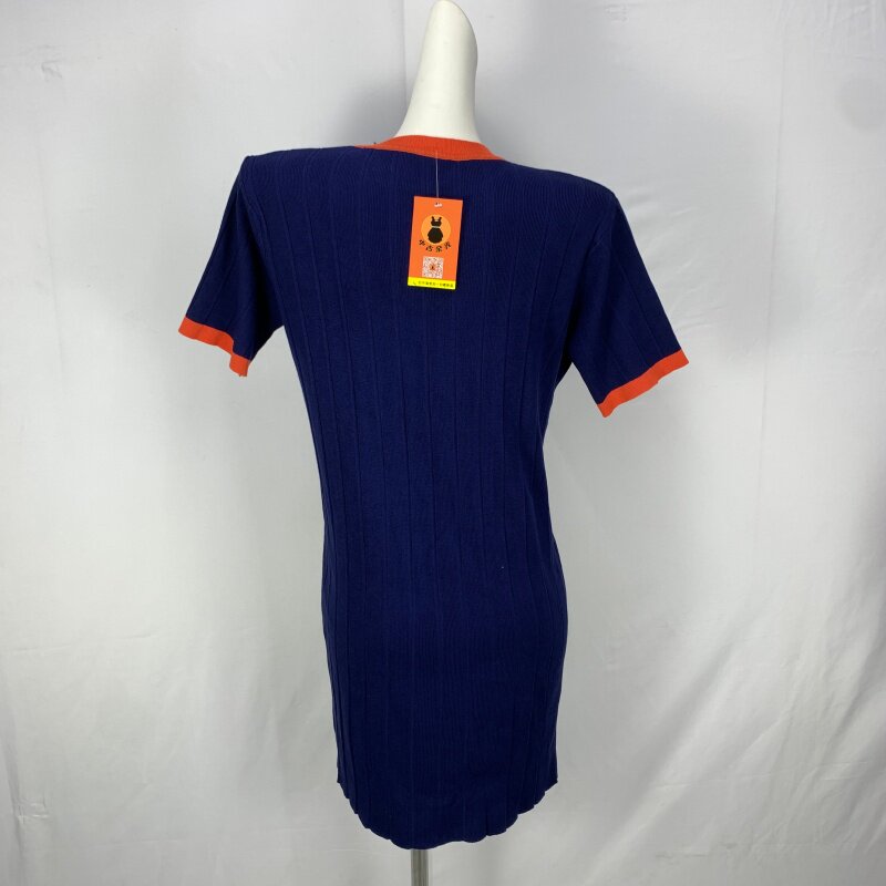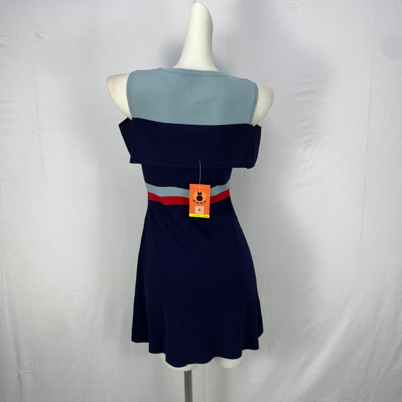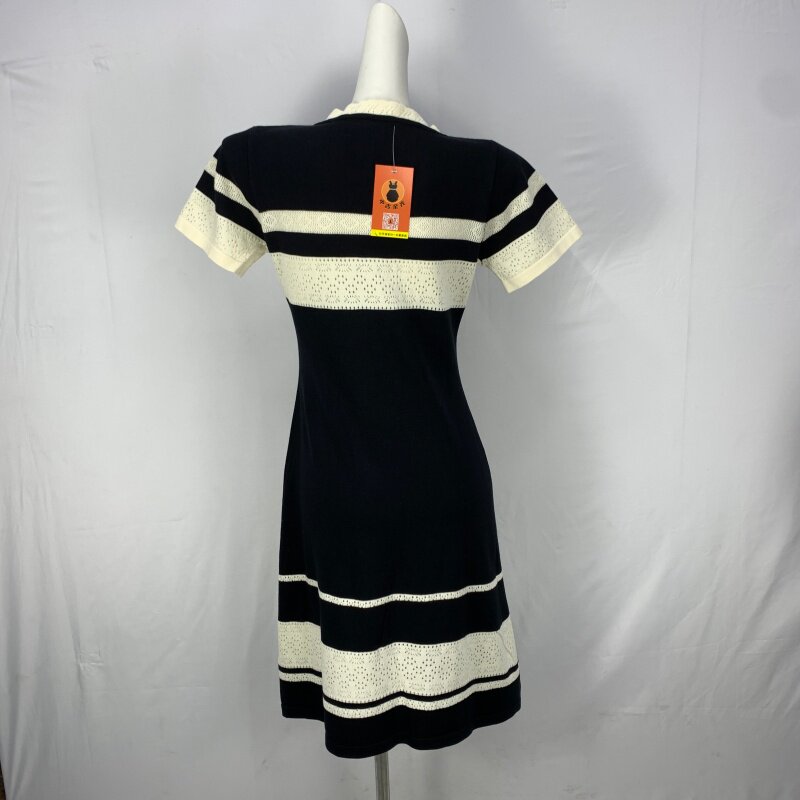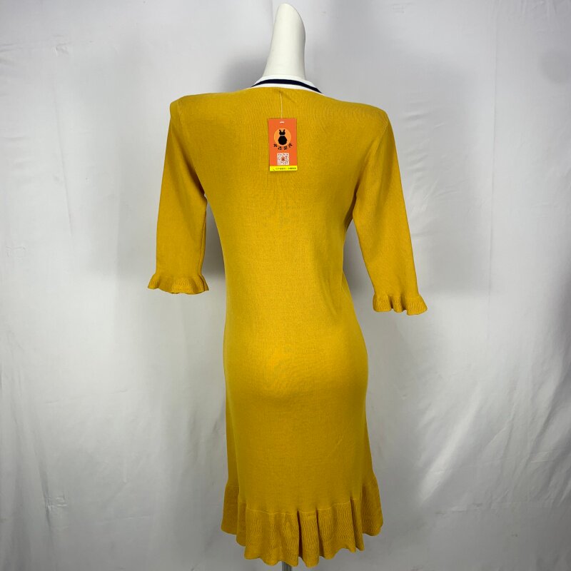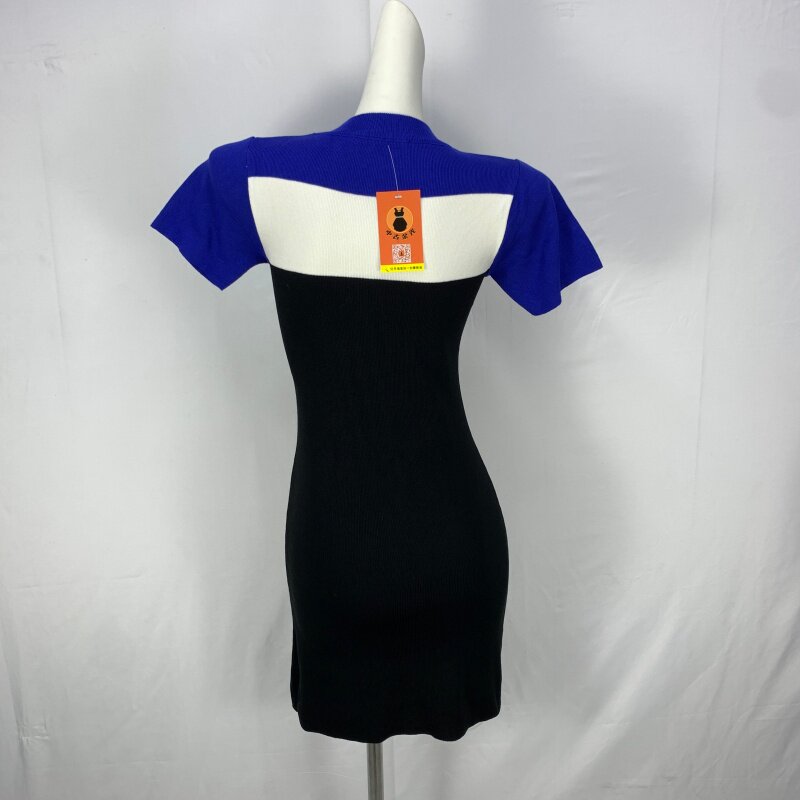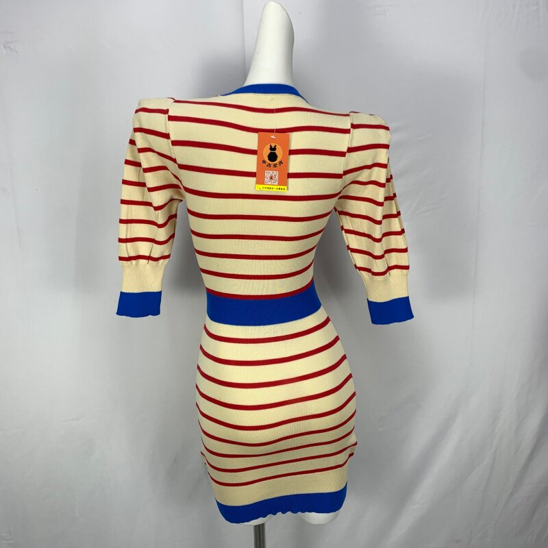 Vintage foreign trade knitted dress retro daughter style hip-hugging waist slimming color-blocked hepburn long skirt cq16