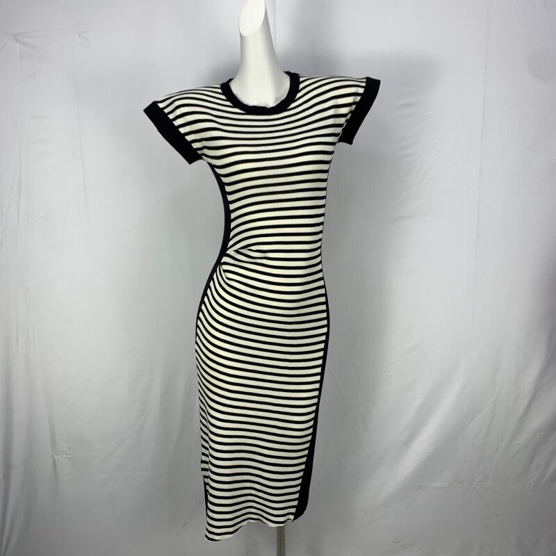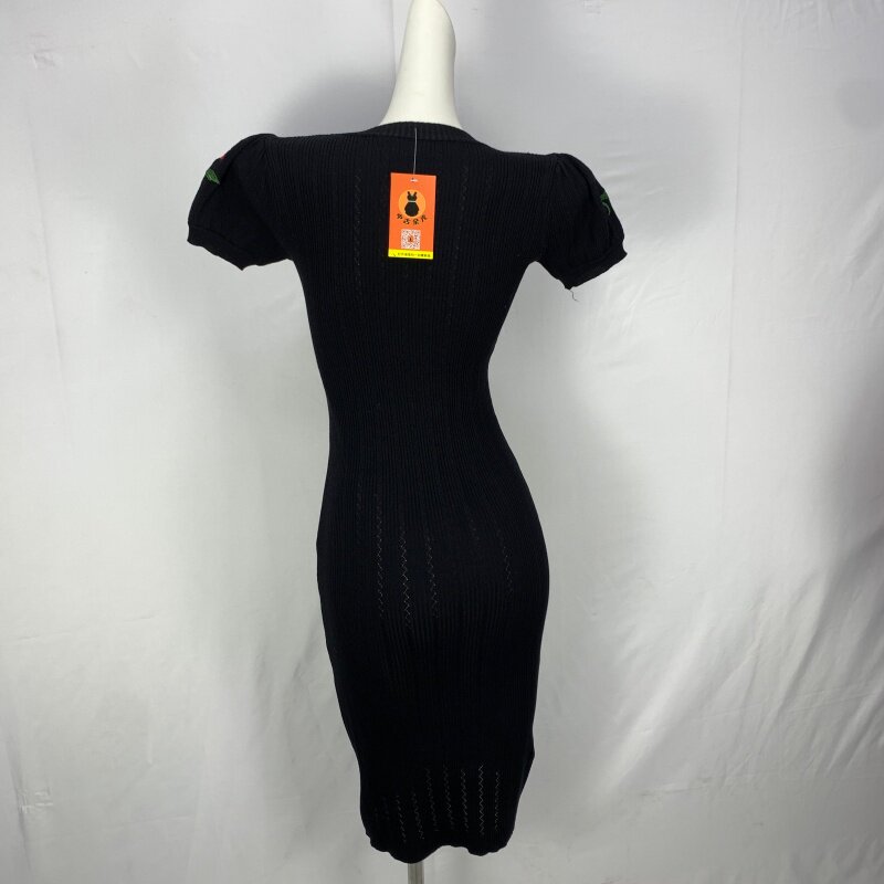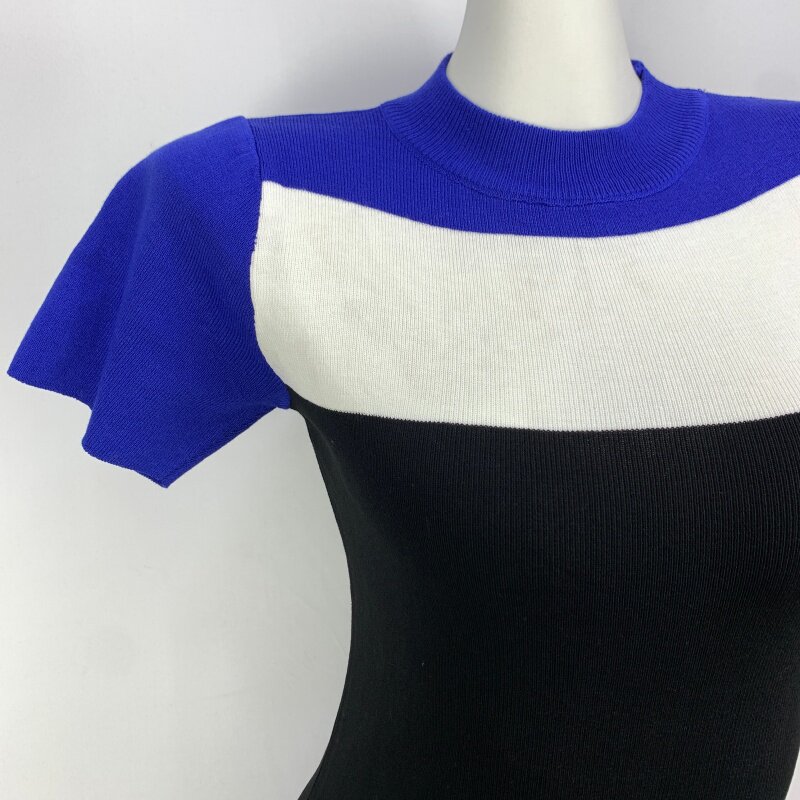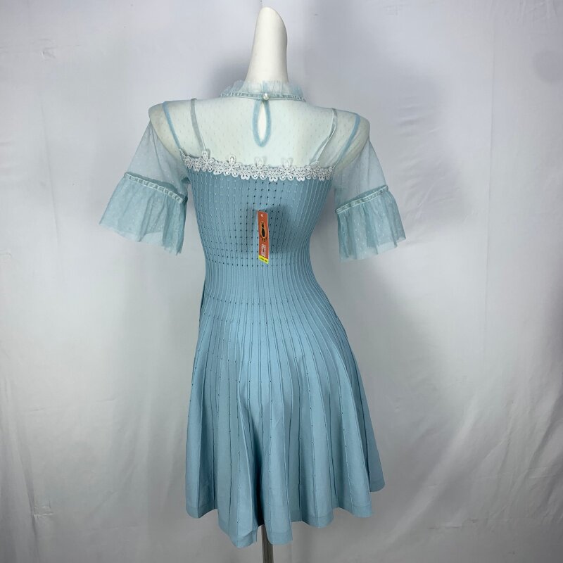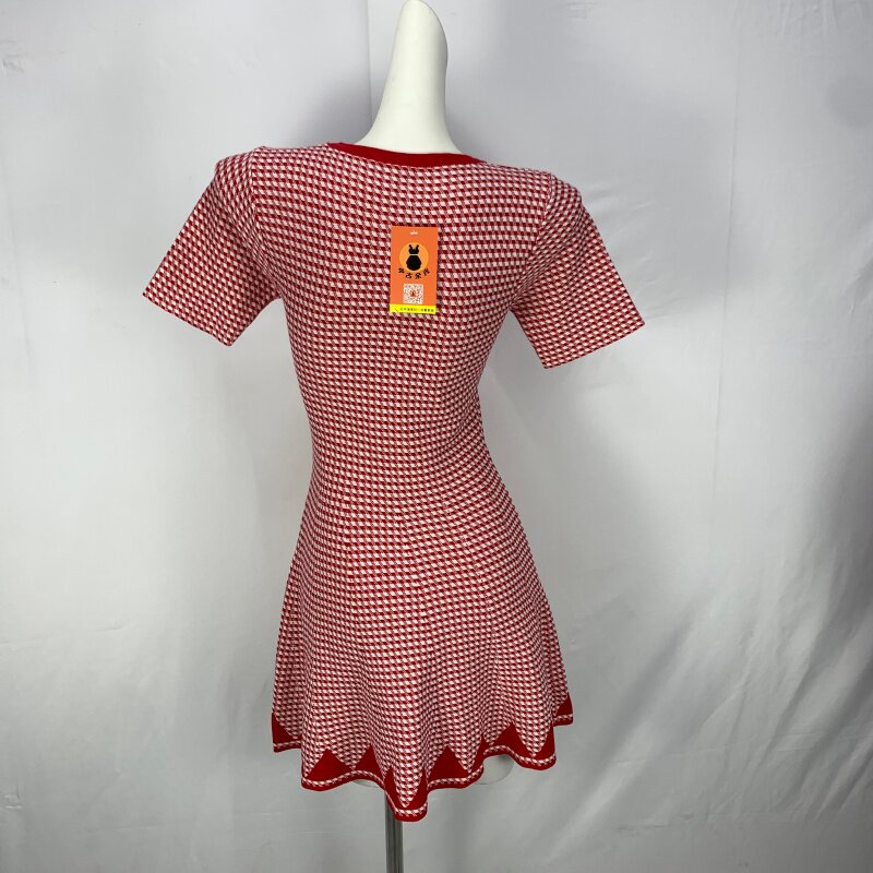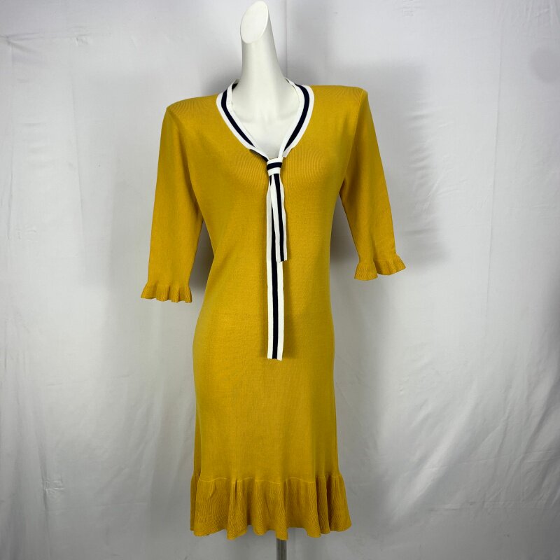 Vintage foreign trade knitted dress retro daughter style hip-hugging waist slimming color-blocked hepburn long skirt cq16