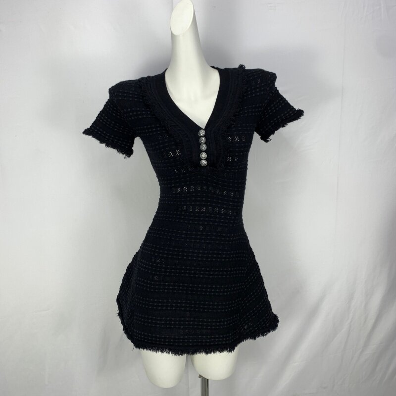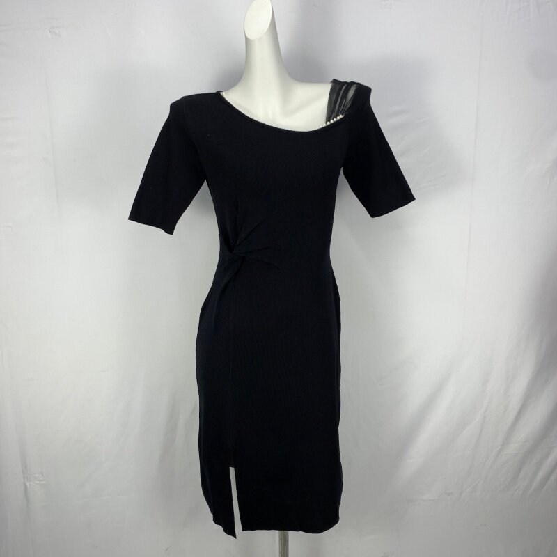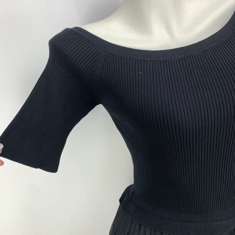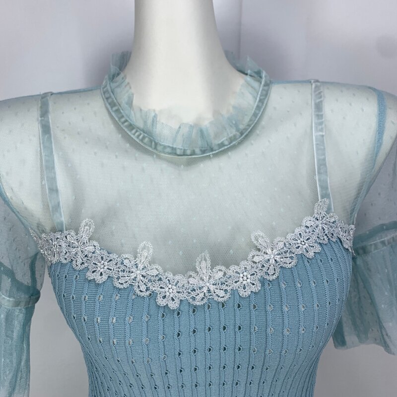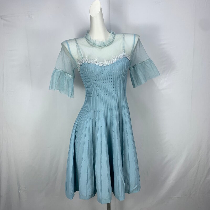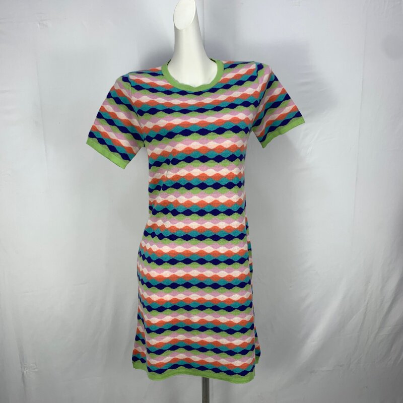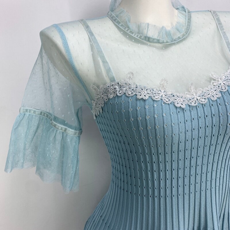 Vintage foreign trade knitted dress retro daughter style hip-hugging waist slimming color-blocked hepburn long skirt cq16