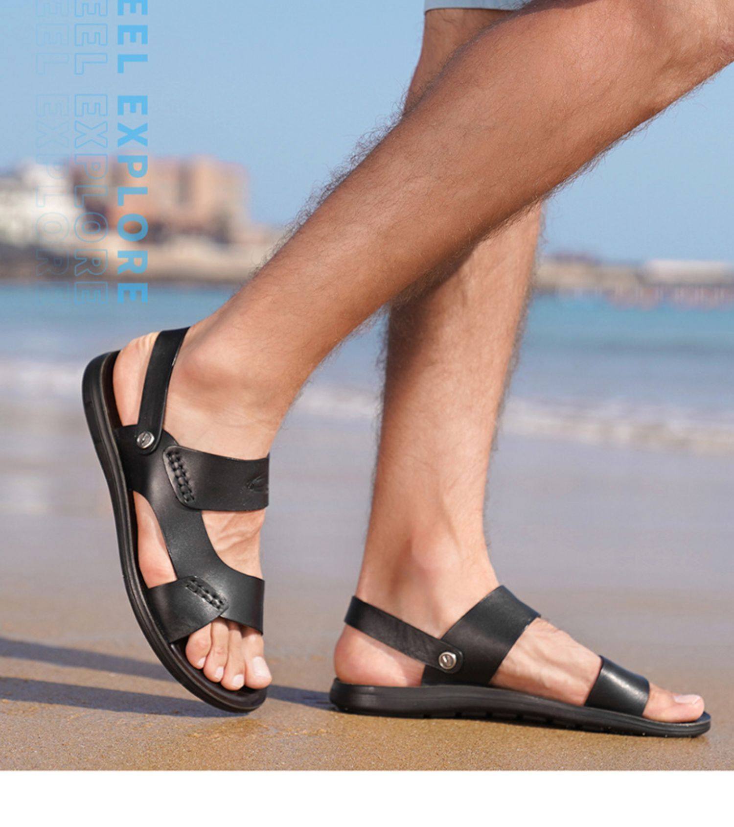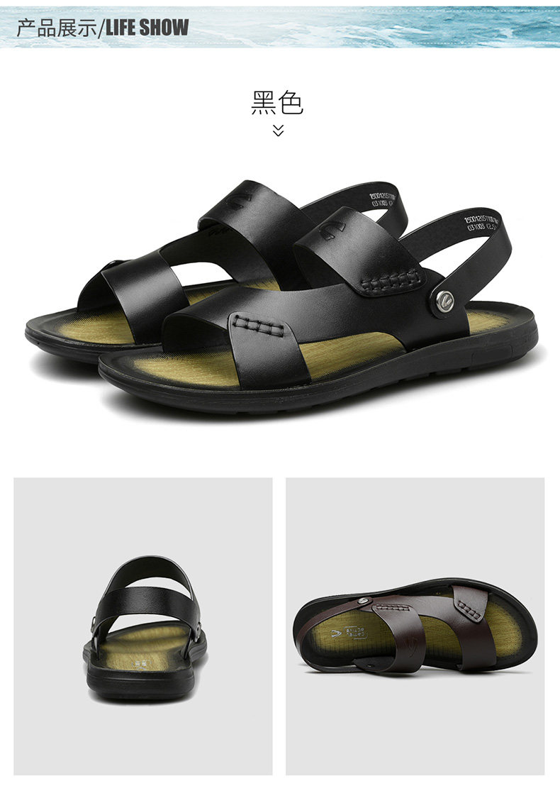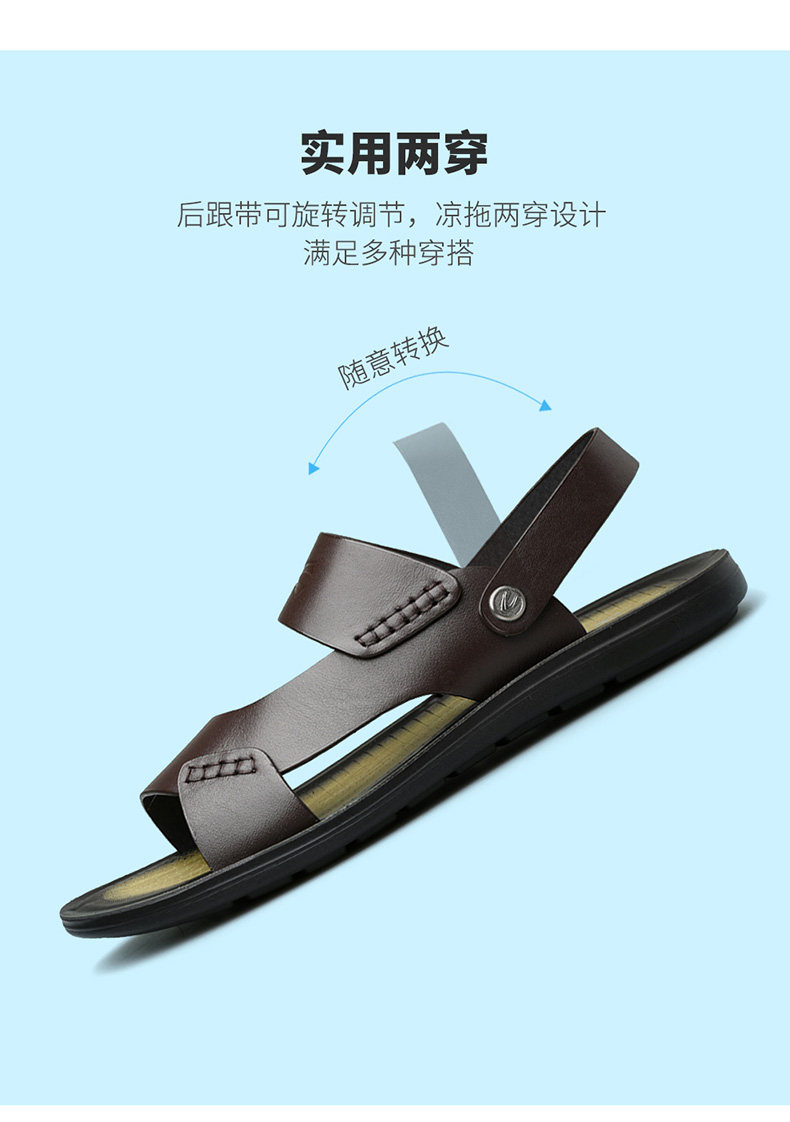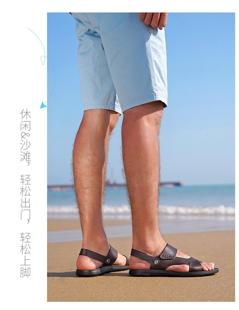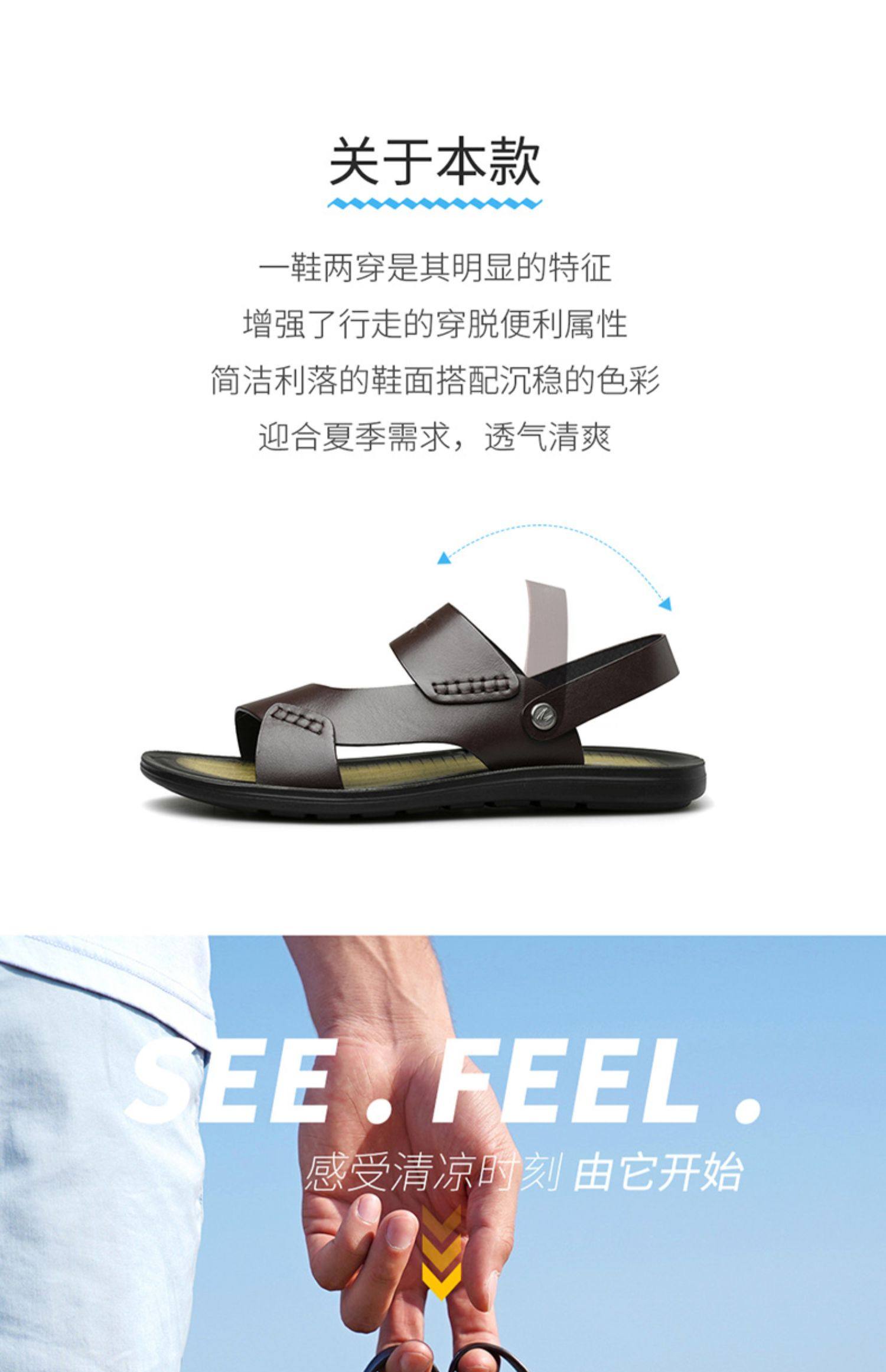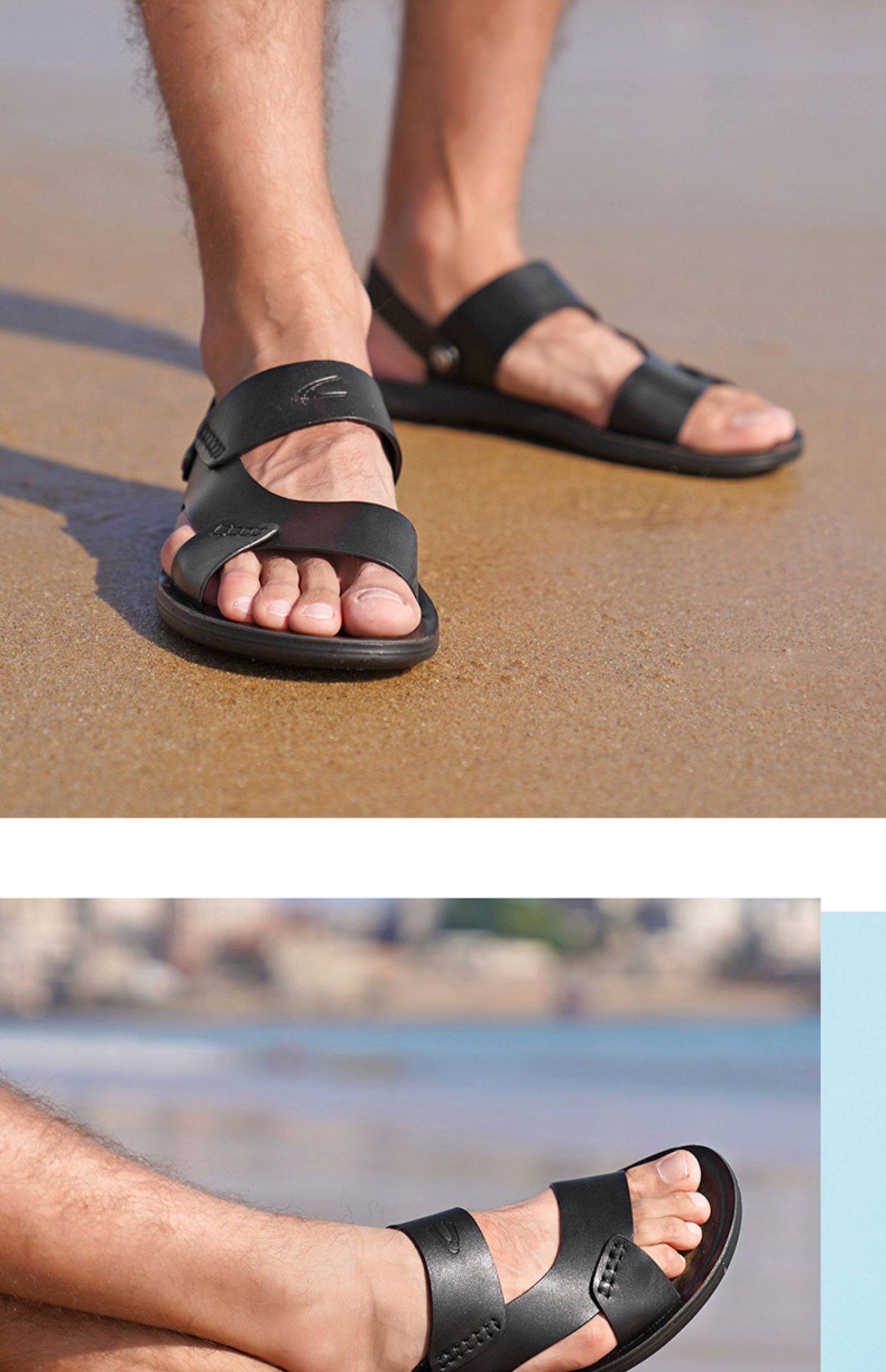 德国骆驼动感真皮凉鞋男夏季外穿防滑软底爸爸沙滩鞋男凉拖鞋男潮