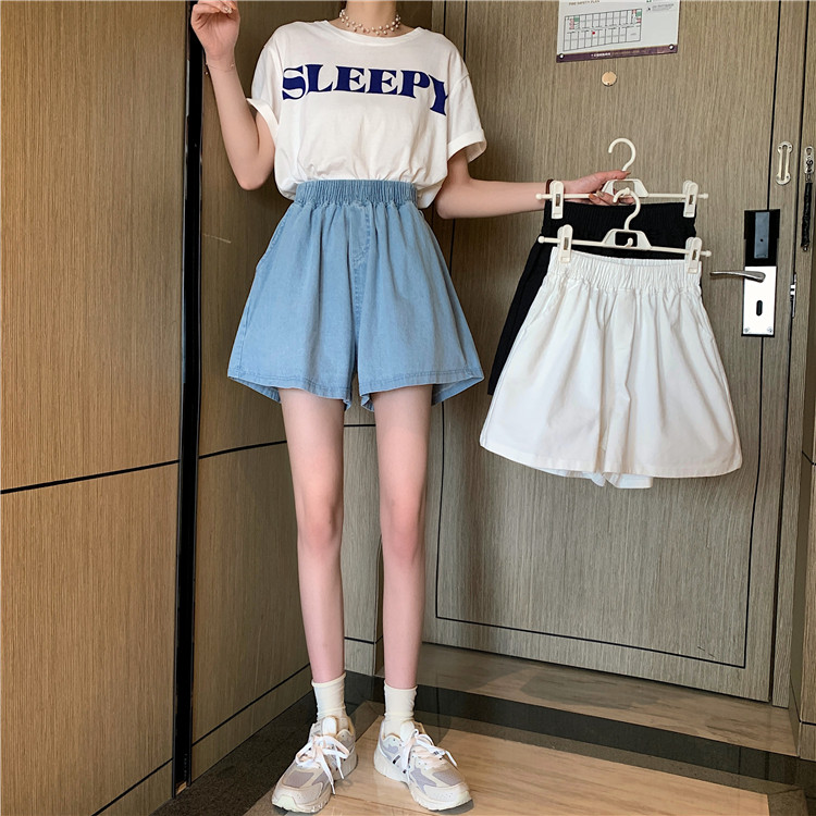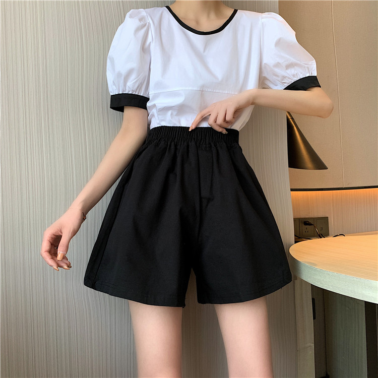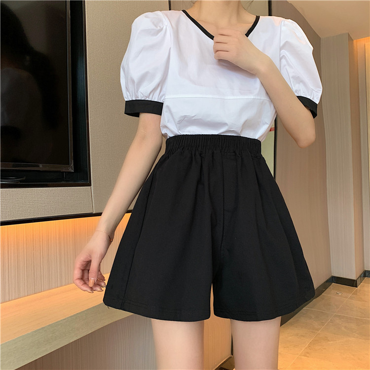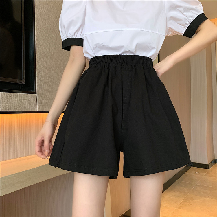Black wide-leg shorts for women in summer thin high-waisted slim outer wear loose small casual a-line pants trendy ins