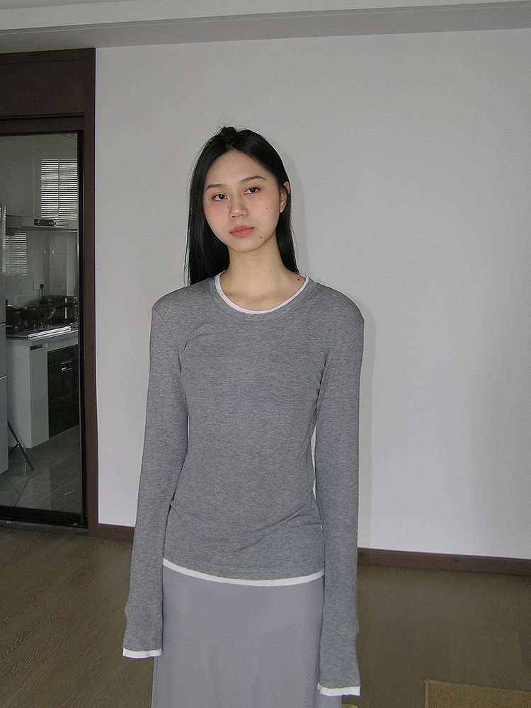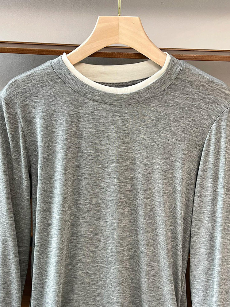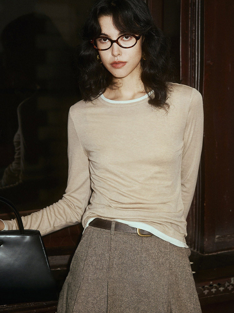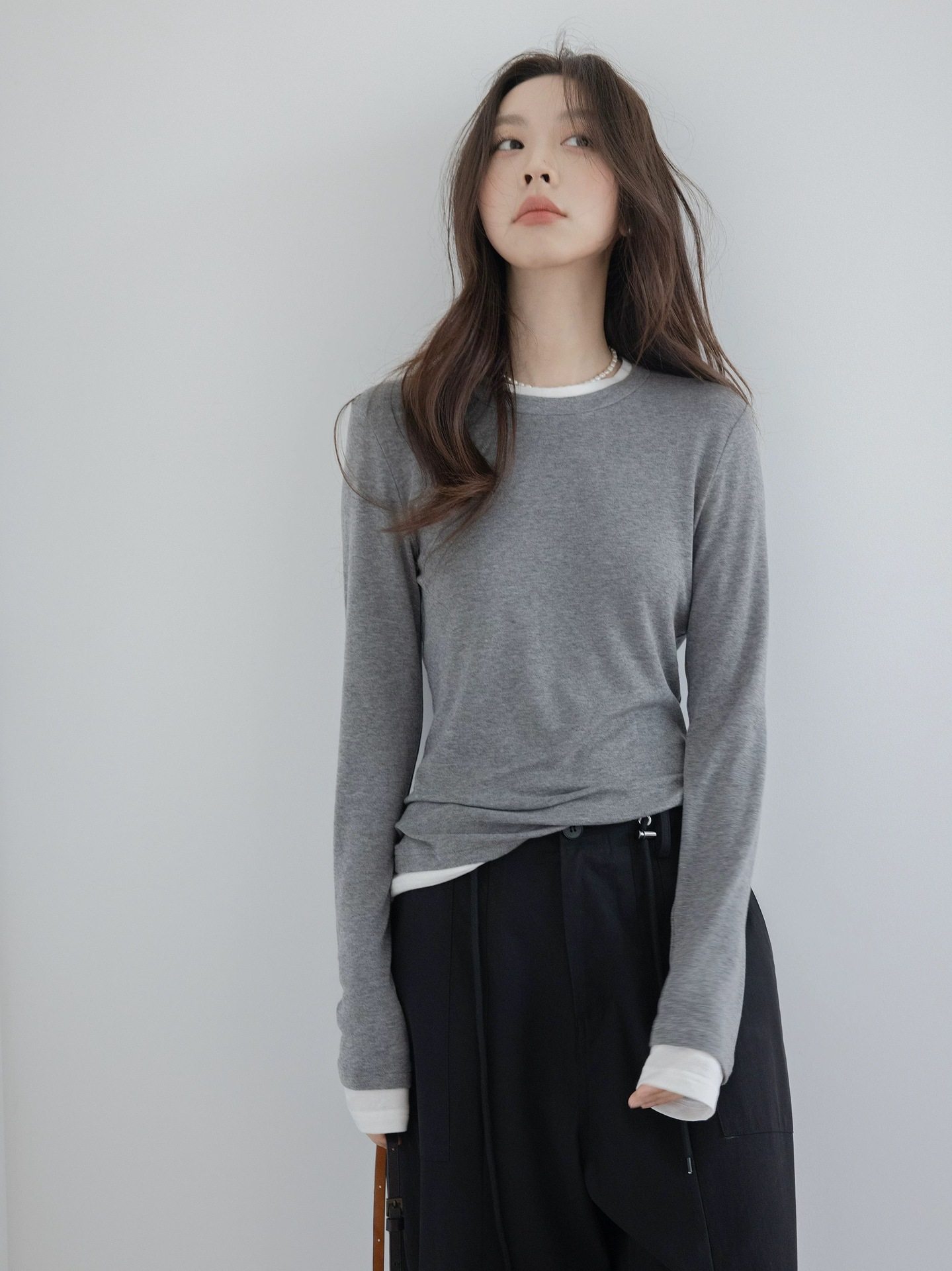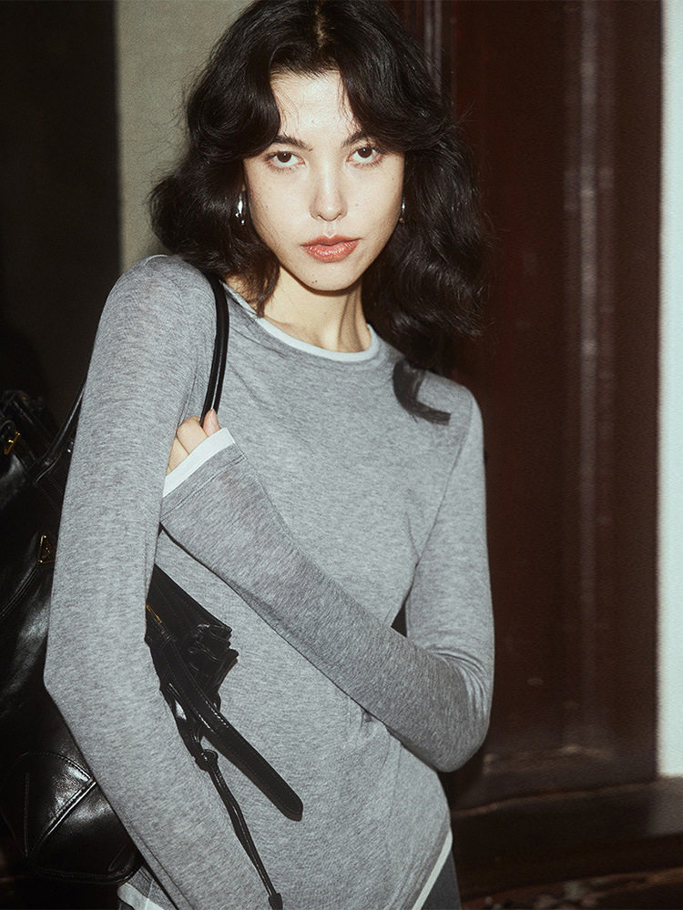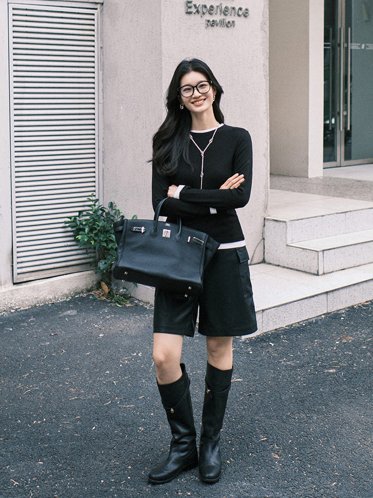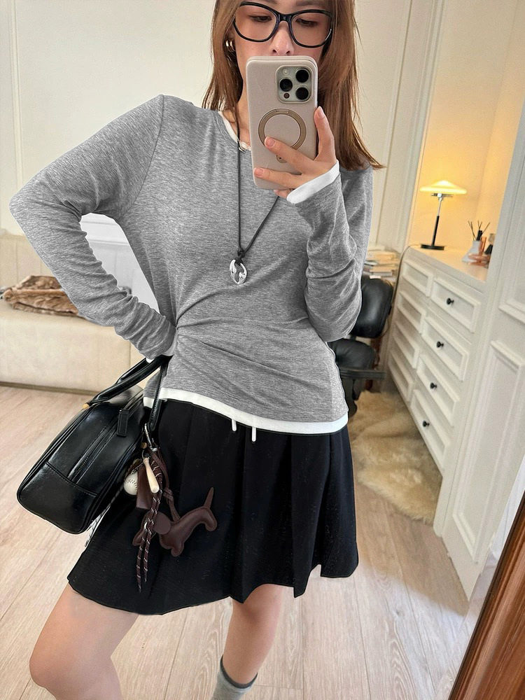 杭州四媛服饰有限公司四媛 简约时尚圆领拼接撞色假两件针织衫长