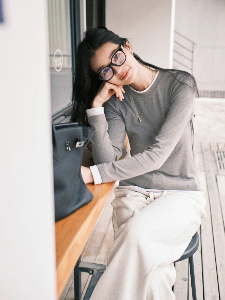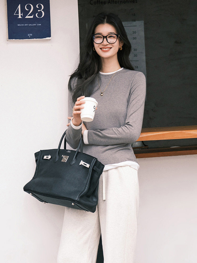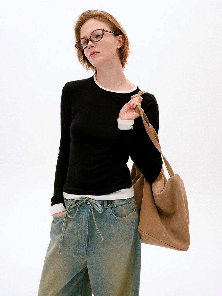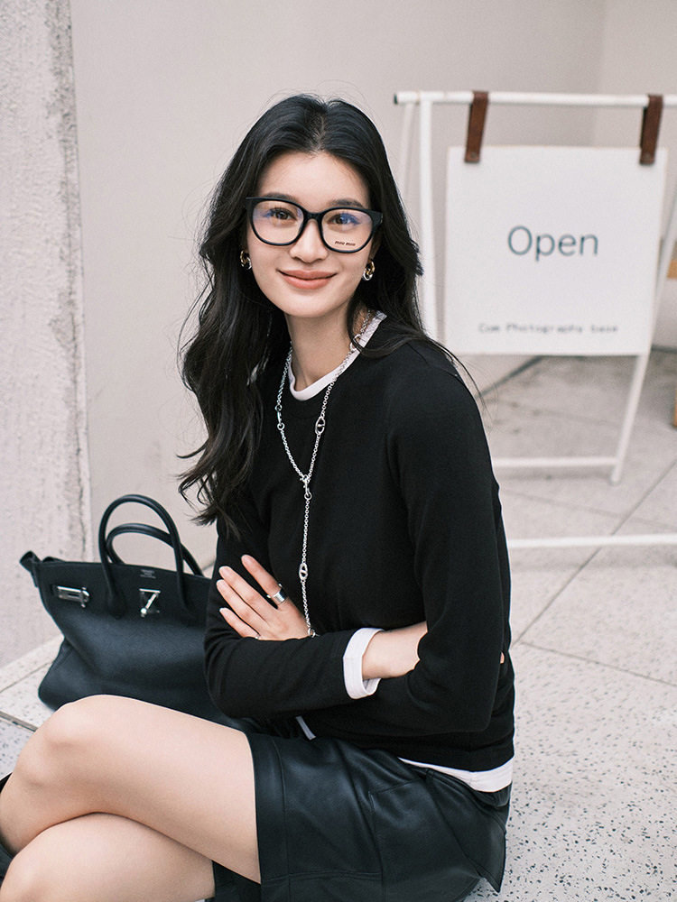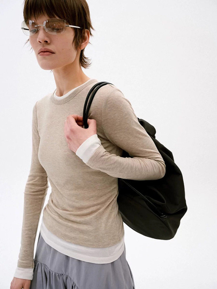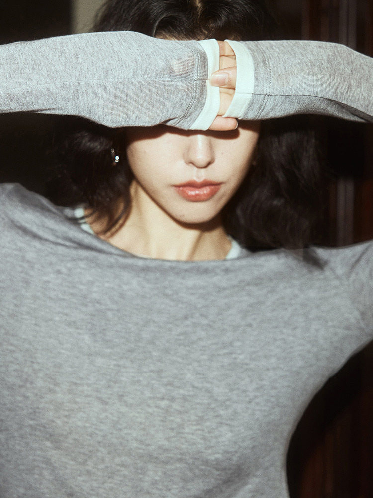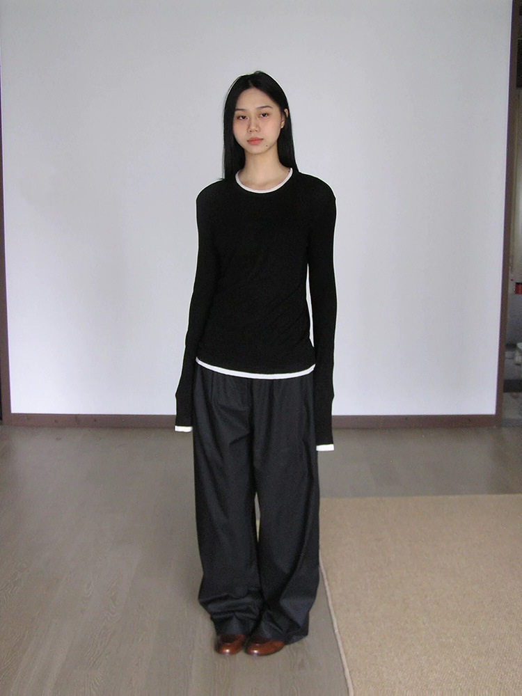 杭州四媛服饰有限公司四媛 简约时尚圆领拼接撞色假两件针织衫长