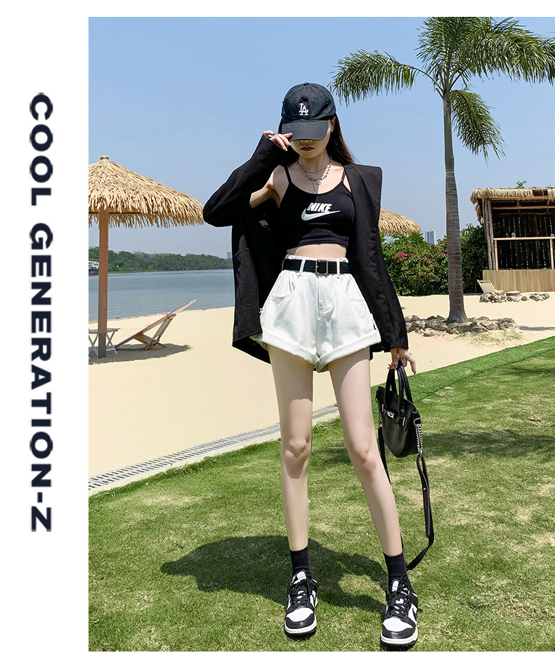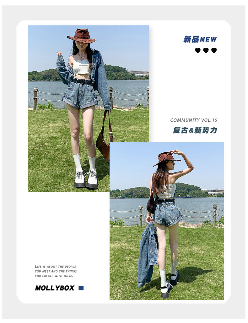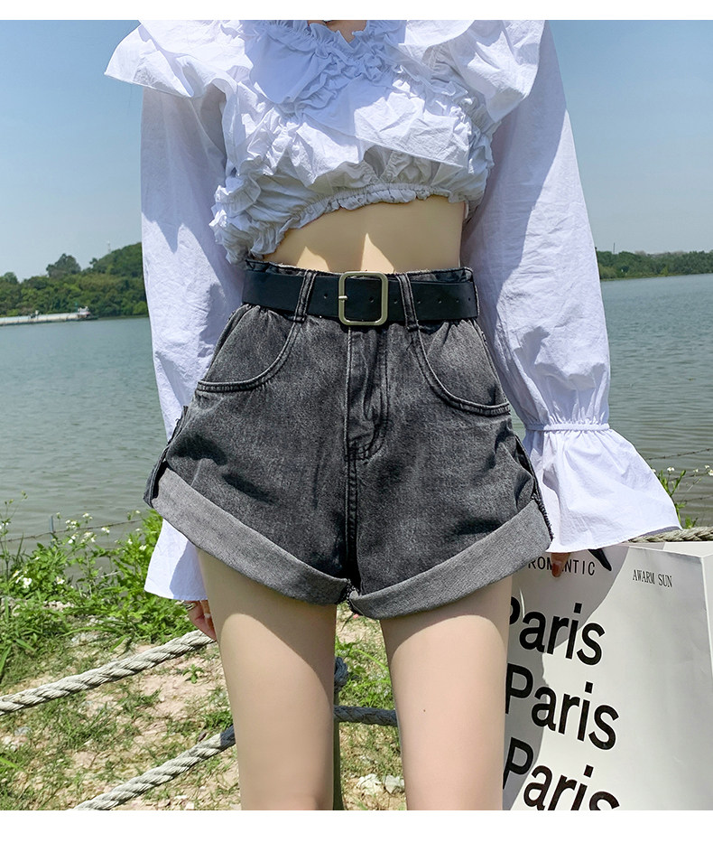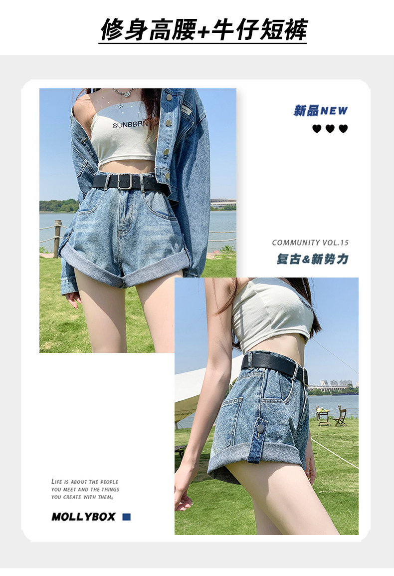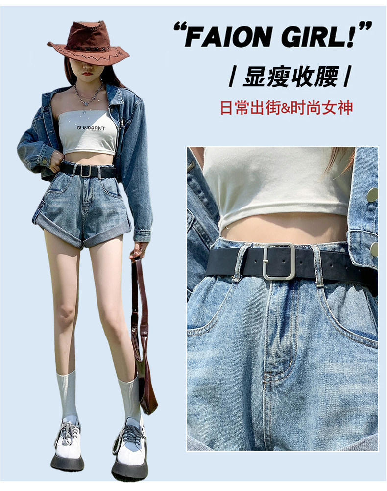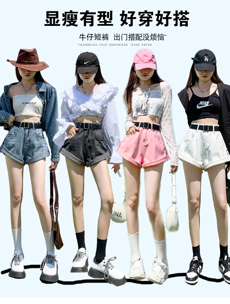 牛仔短裤女高腰2024年夏季新款宽松显瘦复古百搭卷边阔腿a字热裤