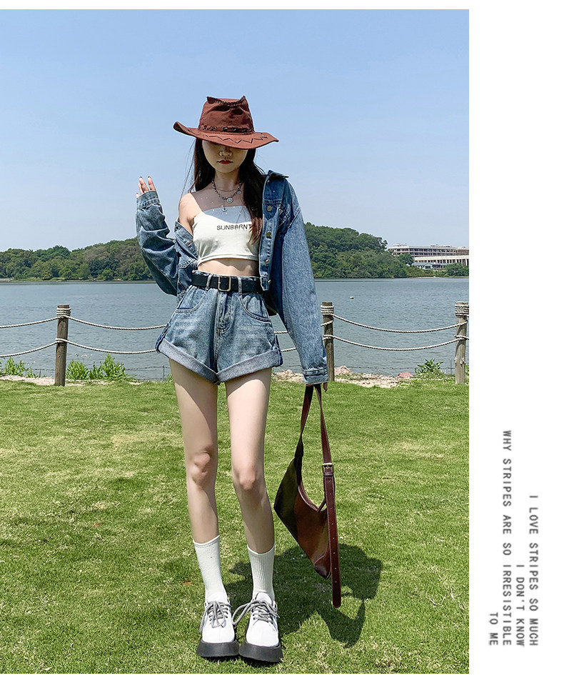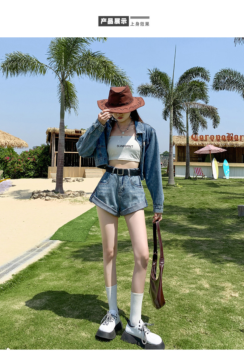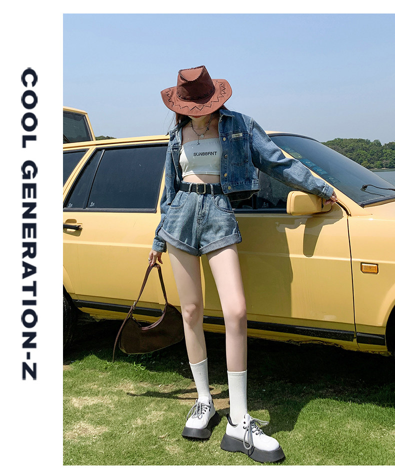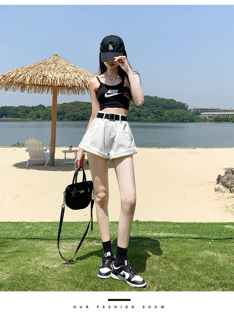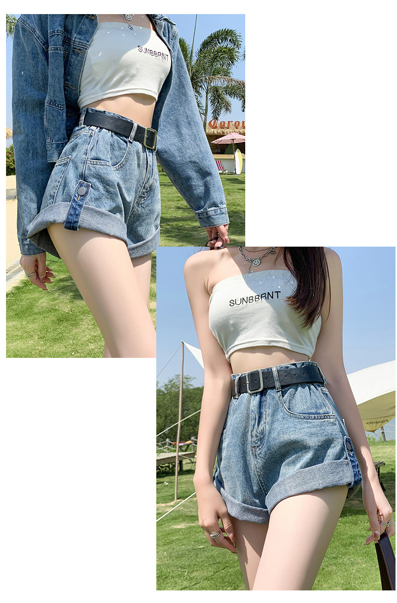 牛仔短裤女高腰2024年夏季新款宽松显瘦复古百搭卷边阔腿a字热裤