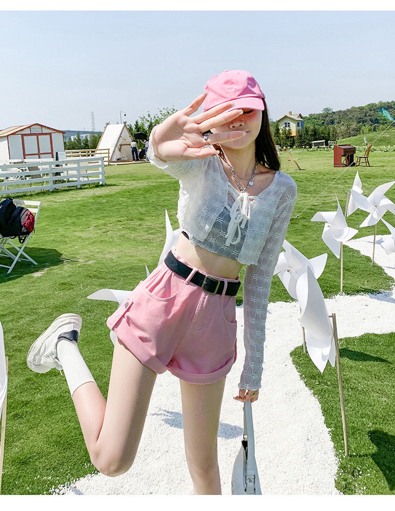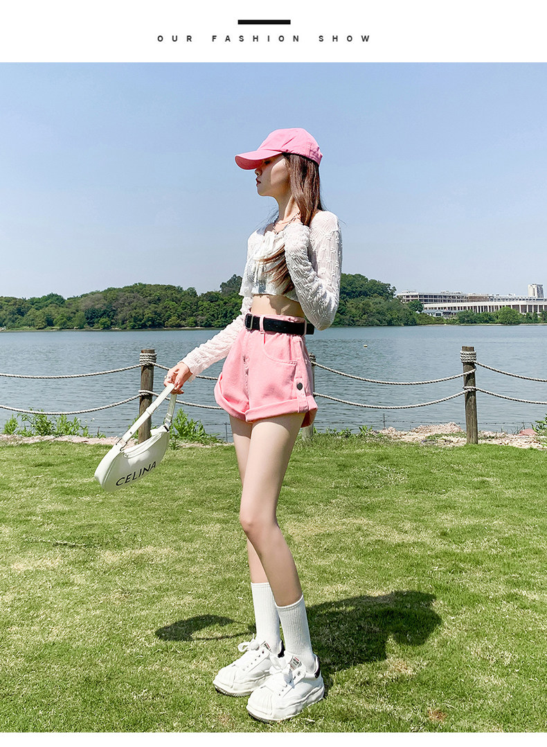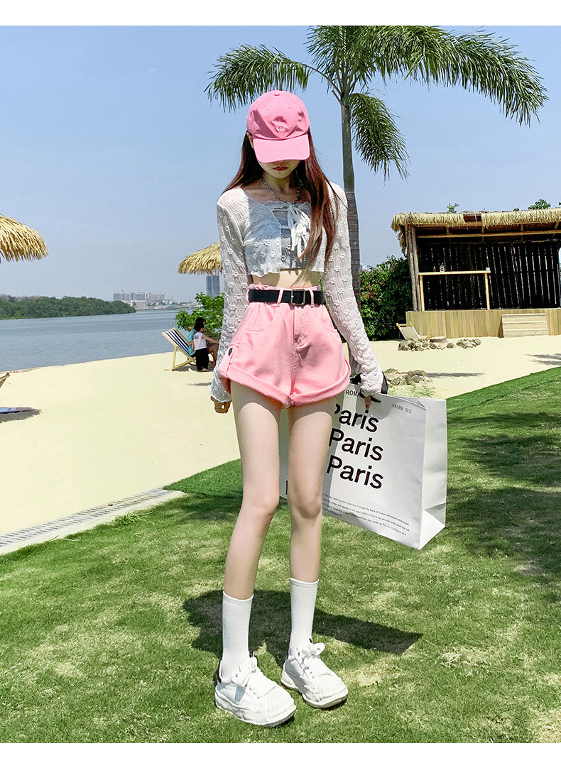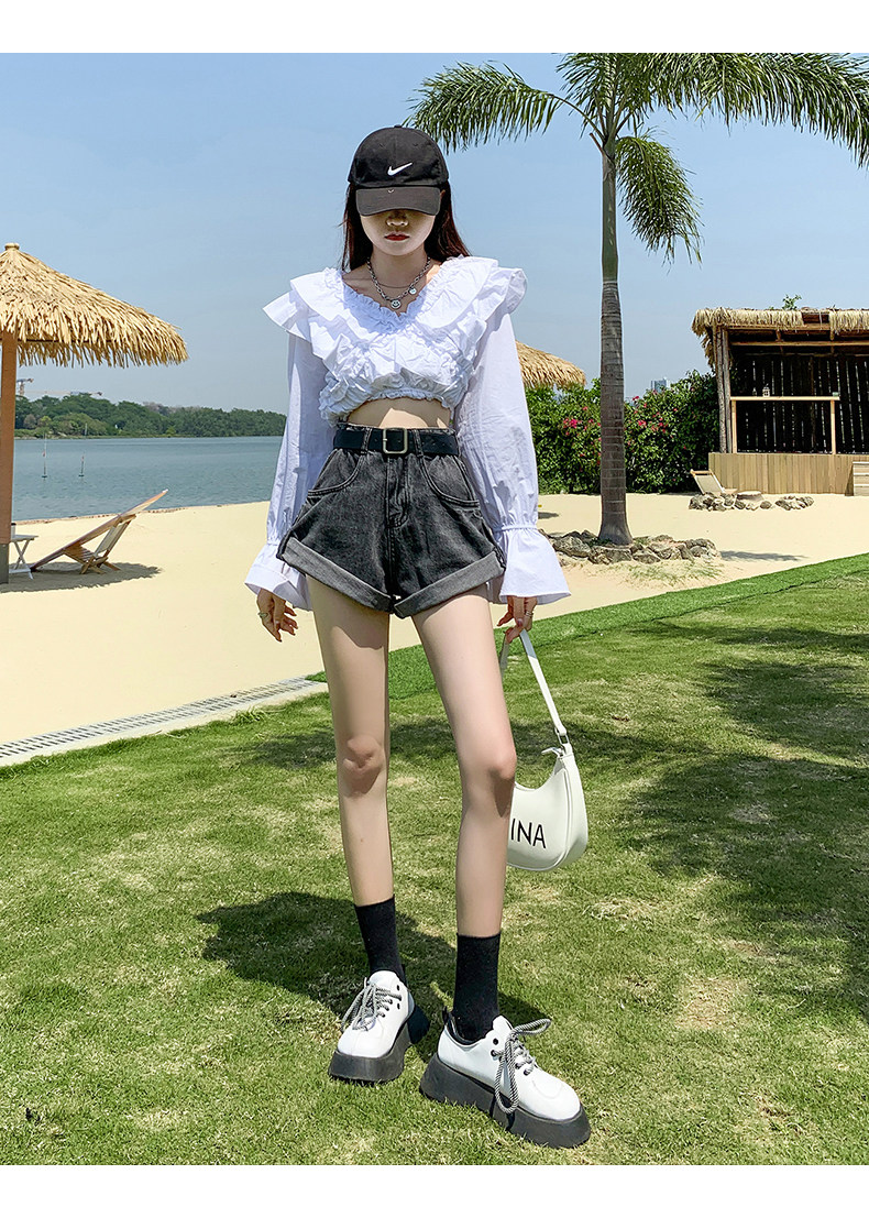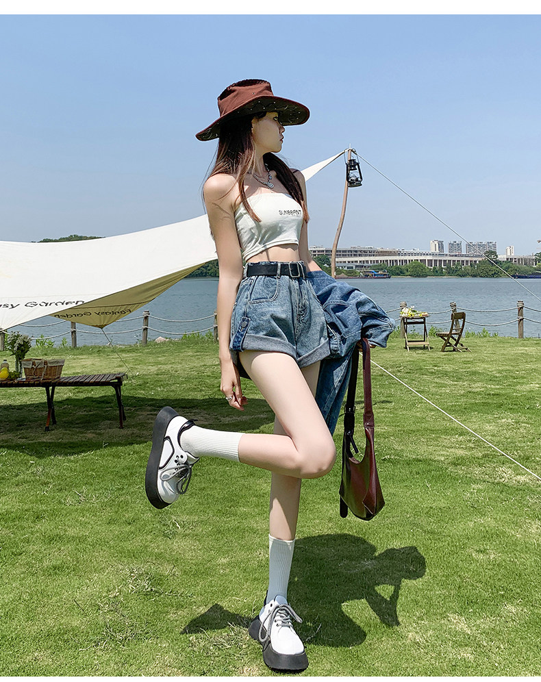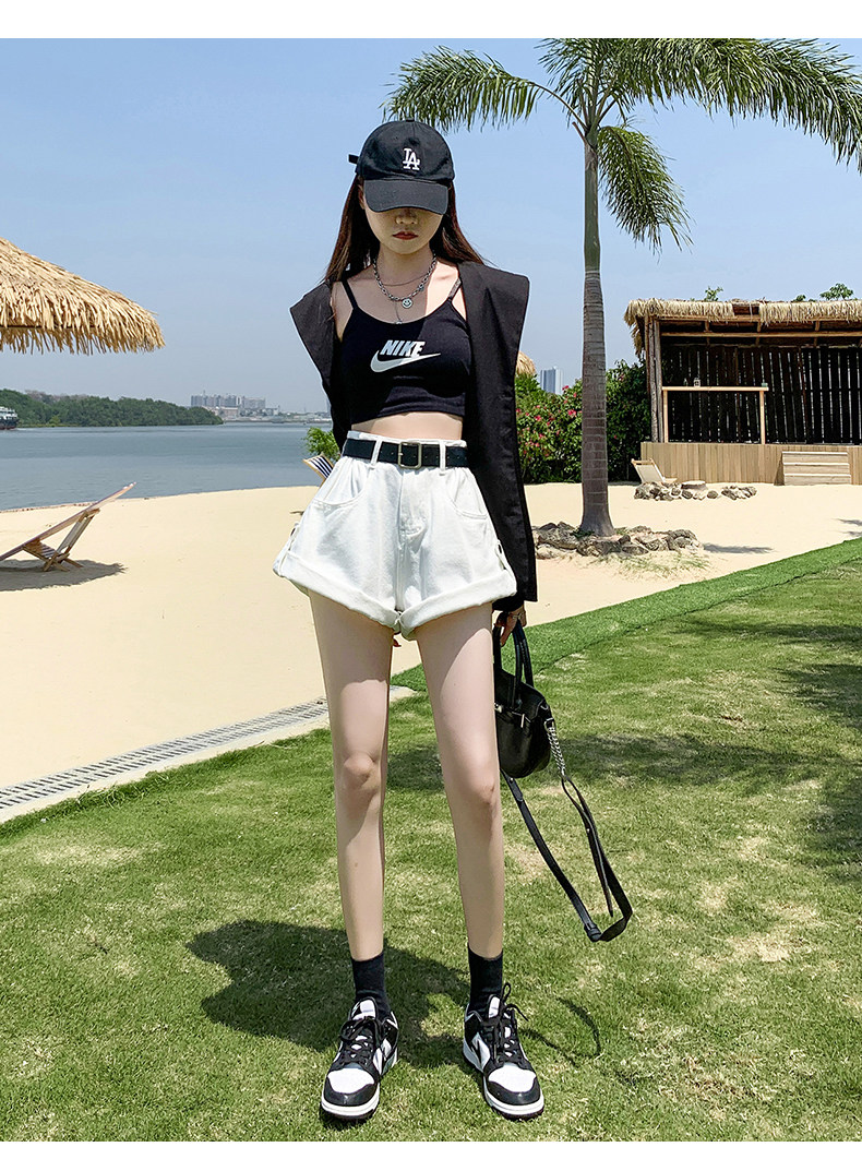 牛仔短裤女高腰2024年夏季新款宽松显瘦复古百搭卷边阔腿a字热裤