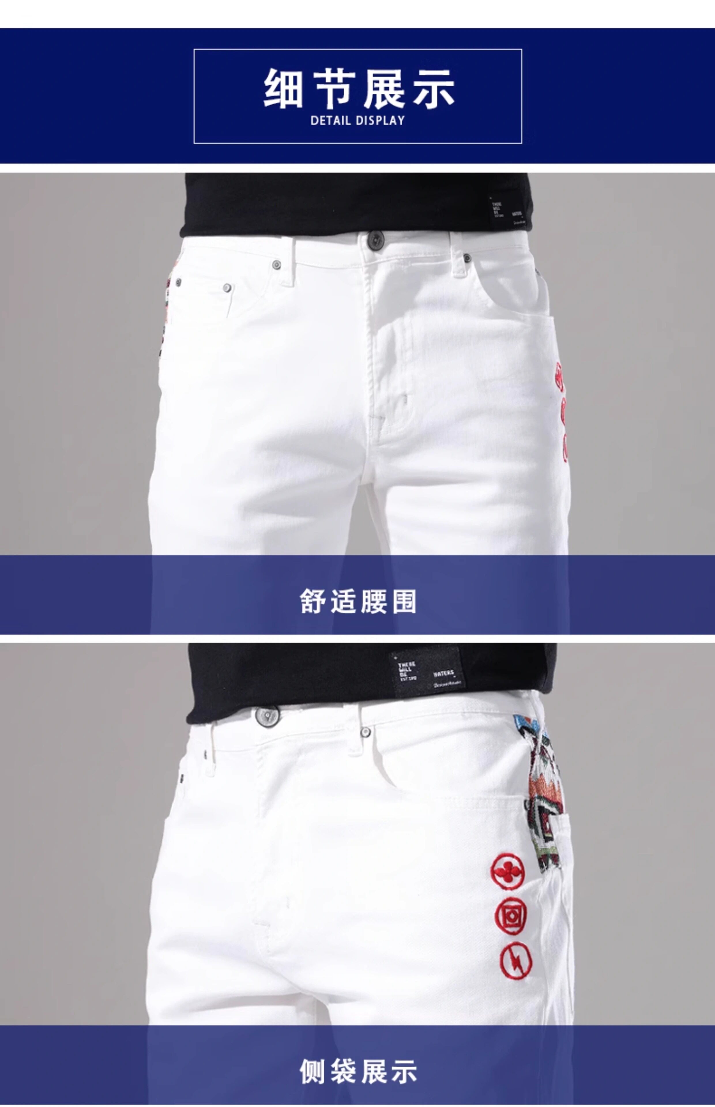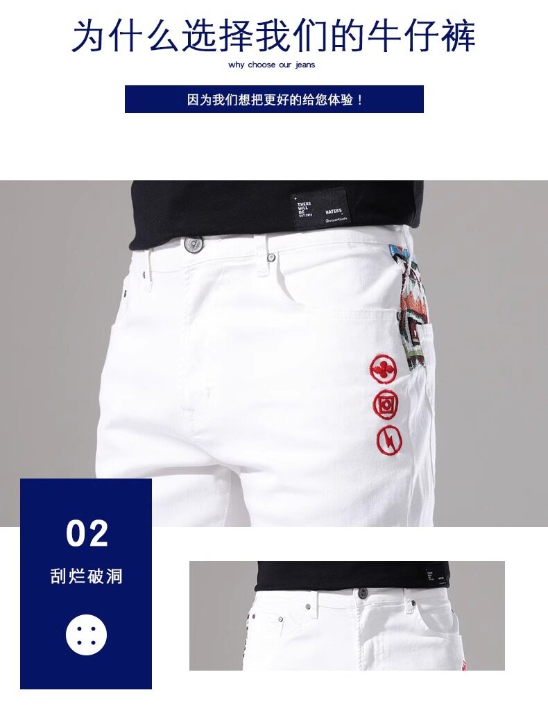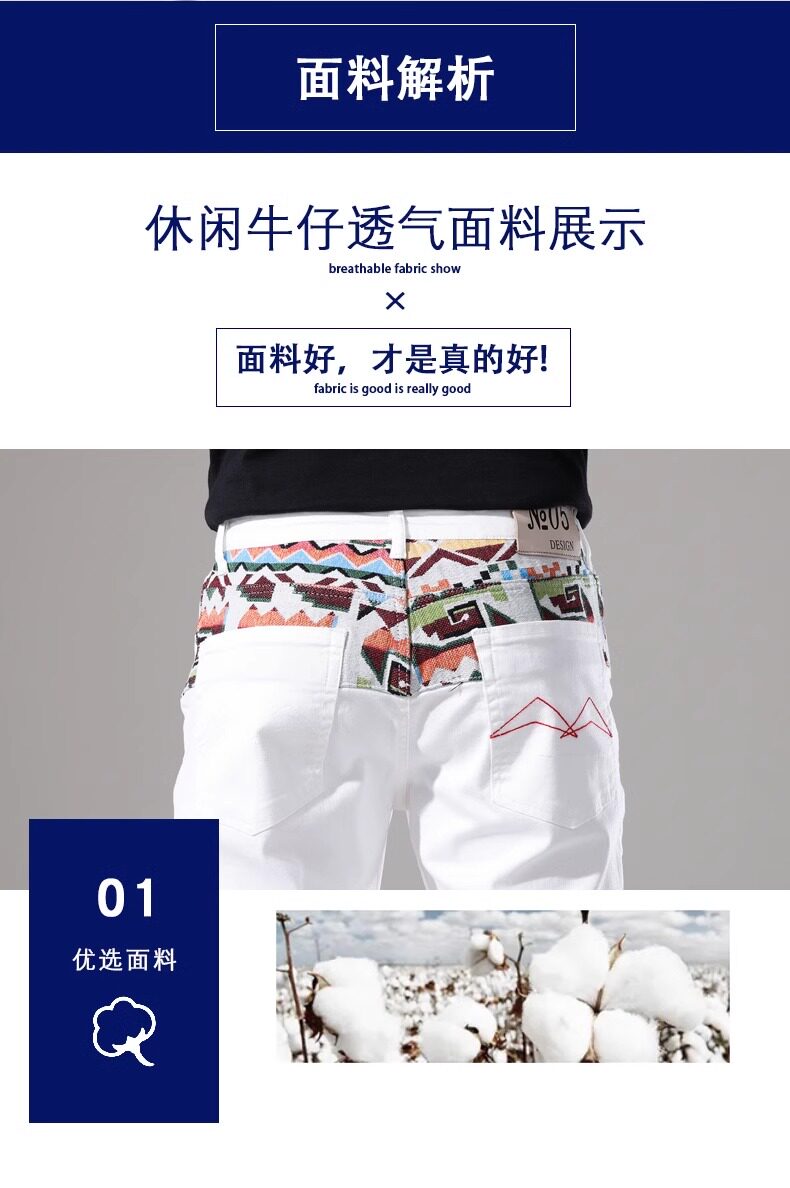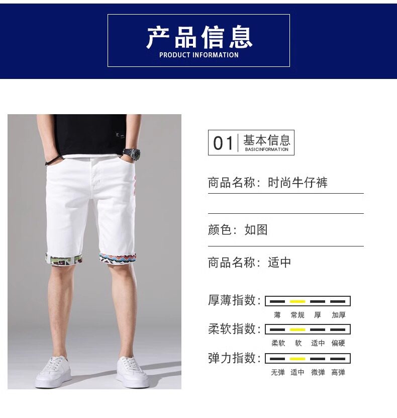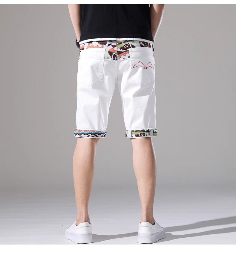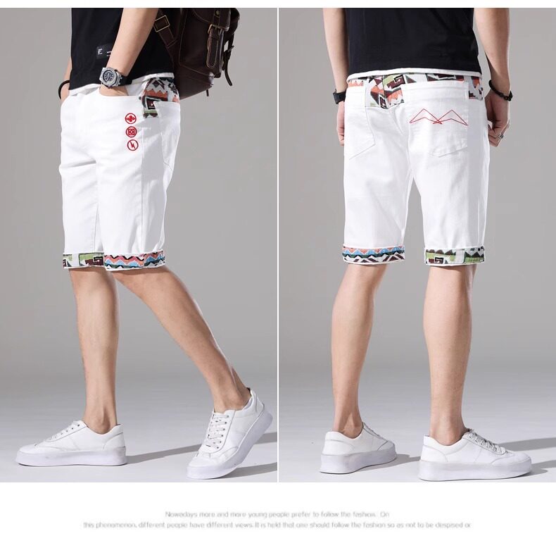 French high-end embroidered white denim shorts men's slim stretch 2024 summer thin medium pants casual five points