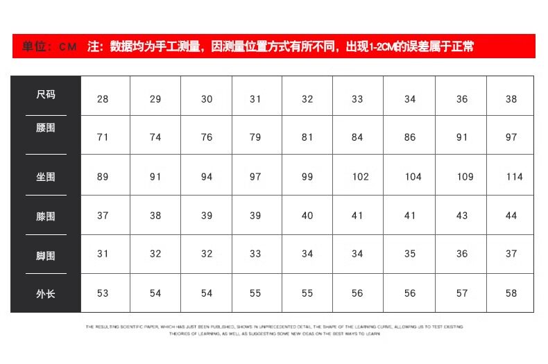 USA(inch) 28-30 30-32 32-34 34-38 38-42