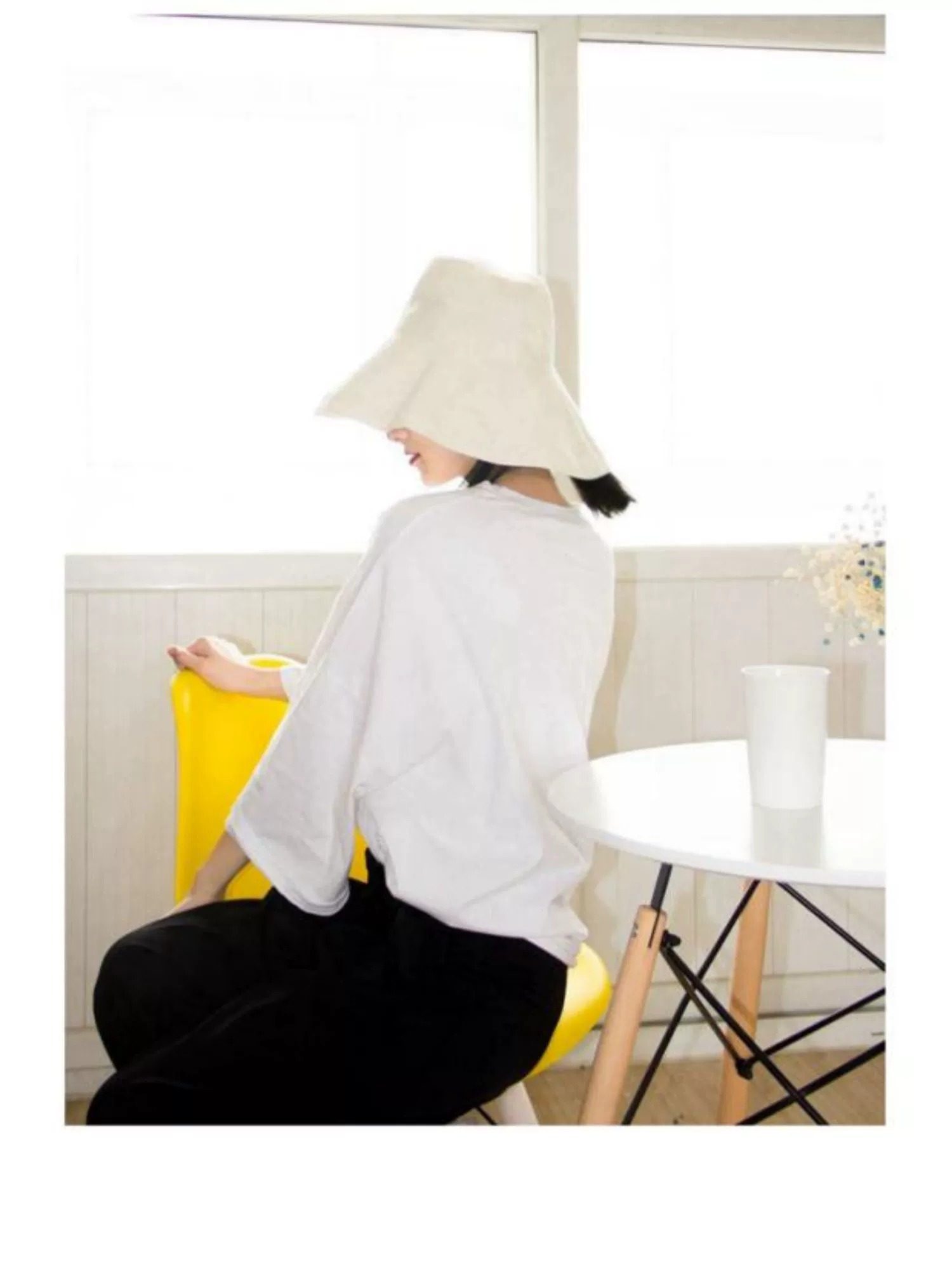 MQVQ fisherman hat women's summer cotton and linen sun protection hat anti-UV large brim face-covering sun hat