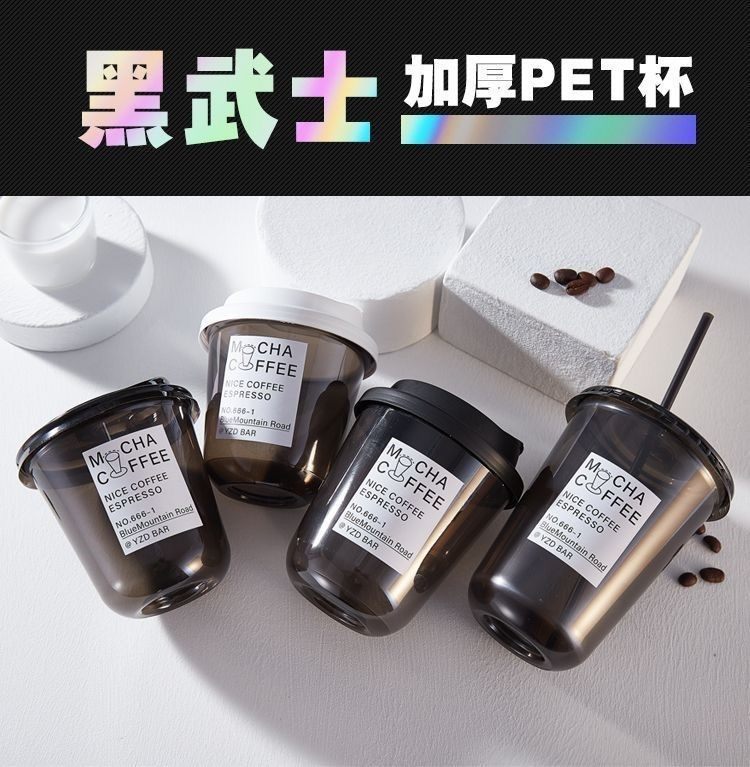 u型网红咖啡杯一次性冷饮杯自制美式咖啡奶茶杯pet加厚饮料食品级