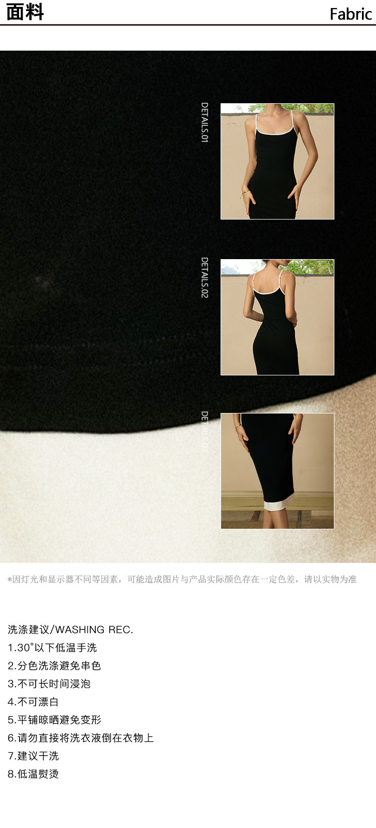 Scent of 90s retro black and white contrasting color slim stretch soft knit midi strap dress