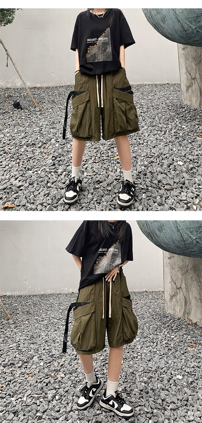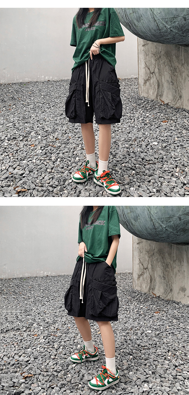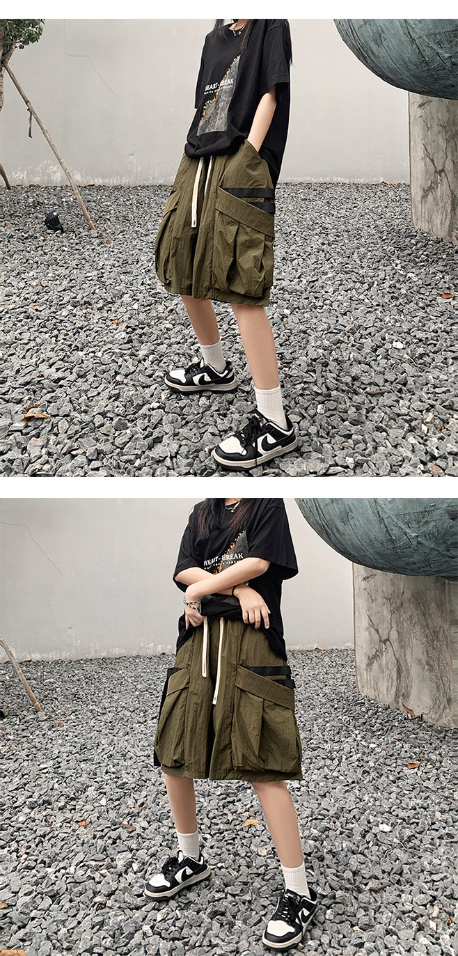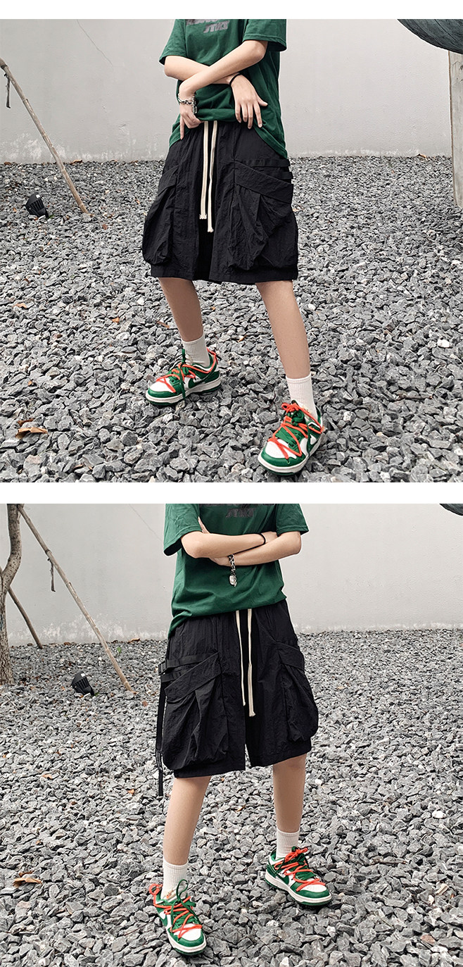 Streamer large pocket design shorts men's European and American trendy brand handsome five-point pants street versatile functional overalls