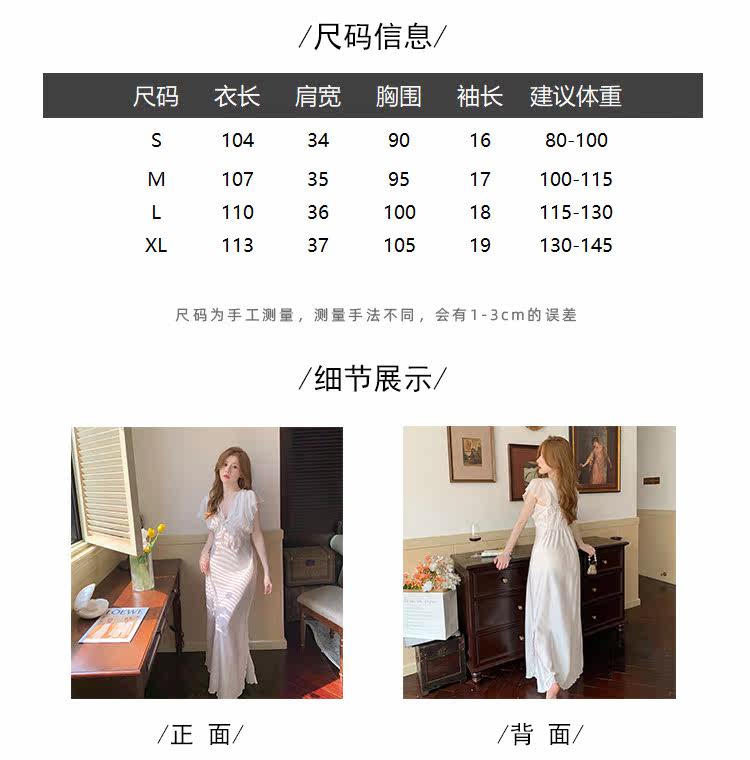 Victoria Ice Silk Pajamas for Women, New Summer V-Neck Pure Desire Sexy Lace French Thin Nightgown Loungewear