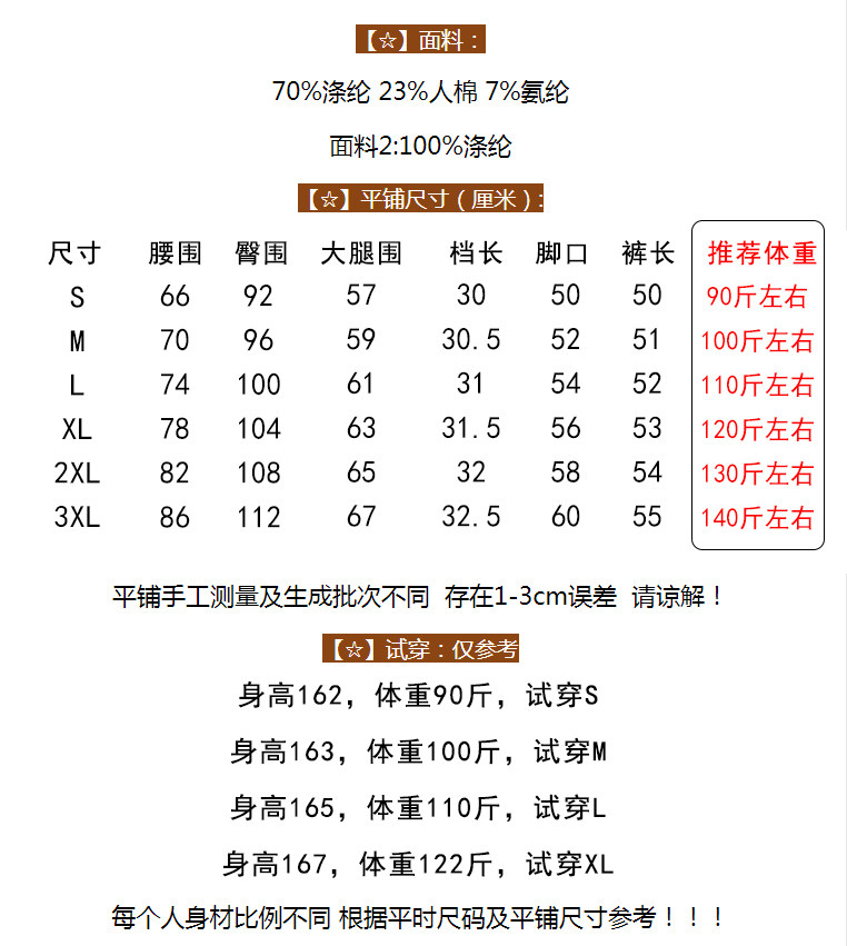 材质成分 聚对苯二甲酸乙二酯(涤纶)70% 棉23% 聚氨酯弹性纤维(氨纶)7%